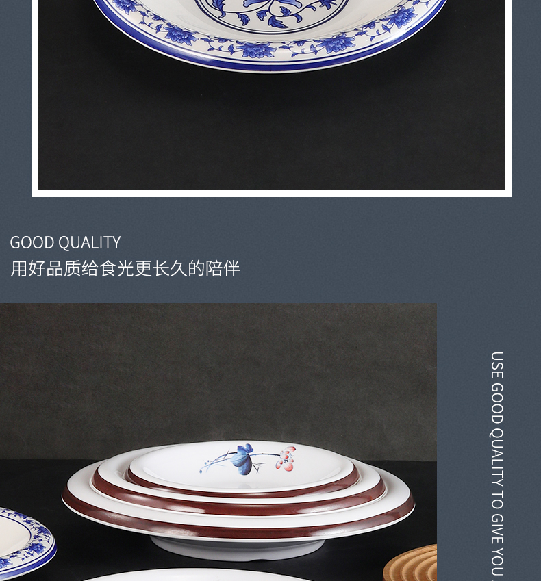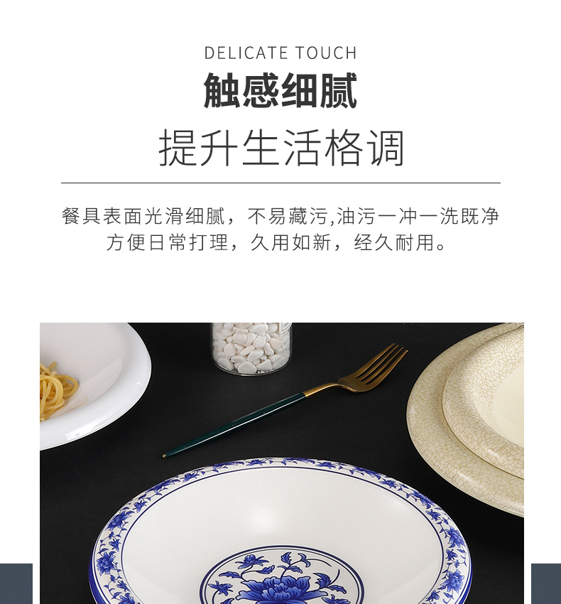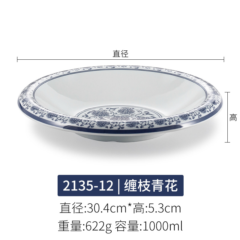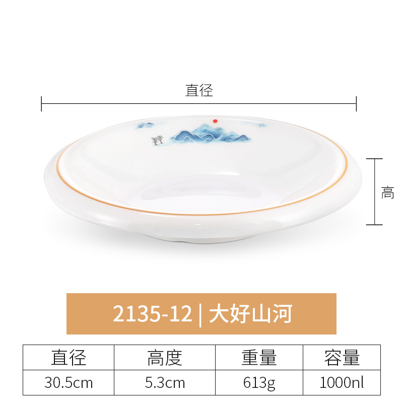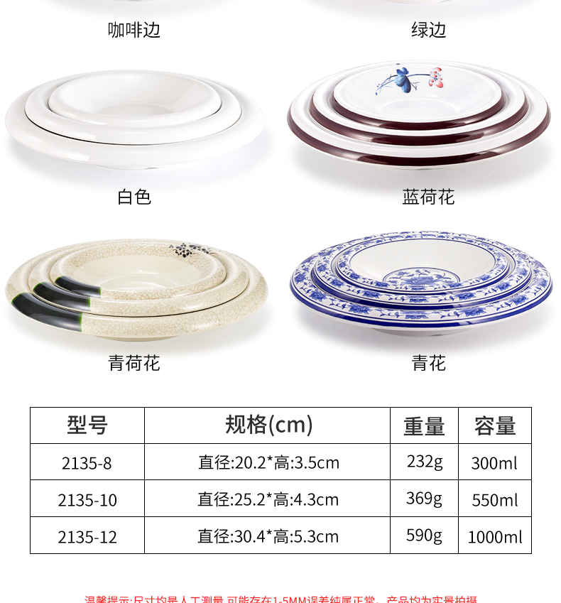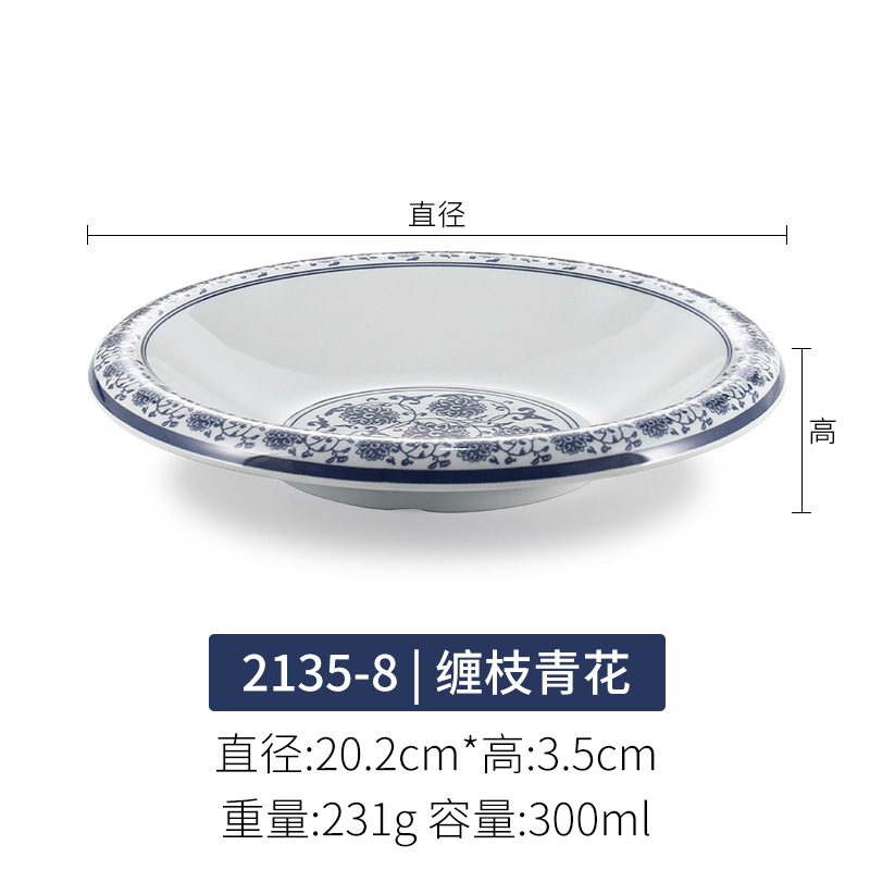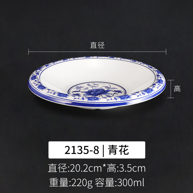 Меламиновая тарелка, коммерческая имитация фарфора, круглая суповая тарелка с обратным горлышком, глубокая тарелка, тарелка для холодных блюд, тарелка для салата, тарелка для ресторана в отеле