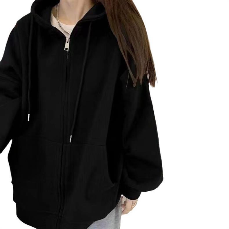Внешняя торговля, трансграничная ленивая стильная темно-серая бархатная толстовка с капюшоном для женщин, осенне-зимняя корейская уличная куртка-кардиган на молнии