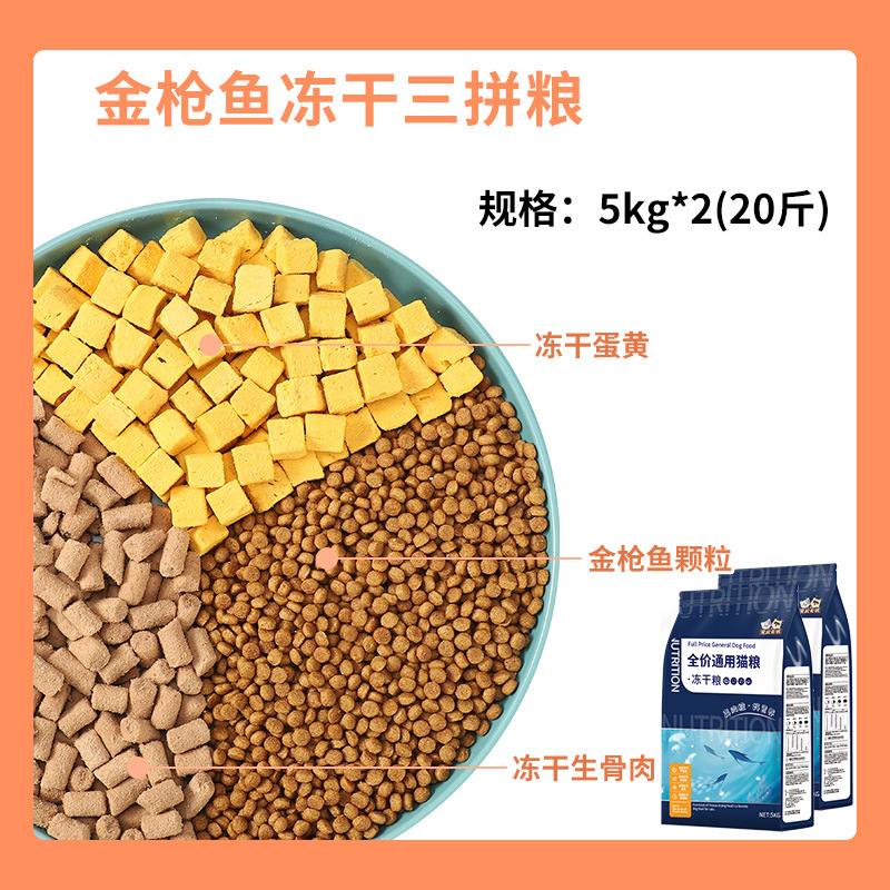 [Выгодная модель] Тунец в гранулах, двойной корм для кошек, 10kg упаковок; [Наберите вес и волосы щеки] Сублимированное сырое мясо + гранулы тунца двойной корм для кошек 10kg упаковок; [Рекомендация менеджера магазина] Сушеное мясо и кости + капсулы с курицей + капсулы с яичным желтком + капсулы с тунцом, двойной корм для кошек, 10kg упаковок