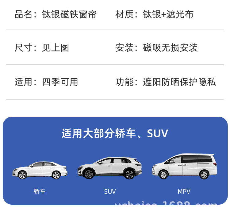 品名:钛银炫彩膜磁吸汽车窗帘(1片装)