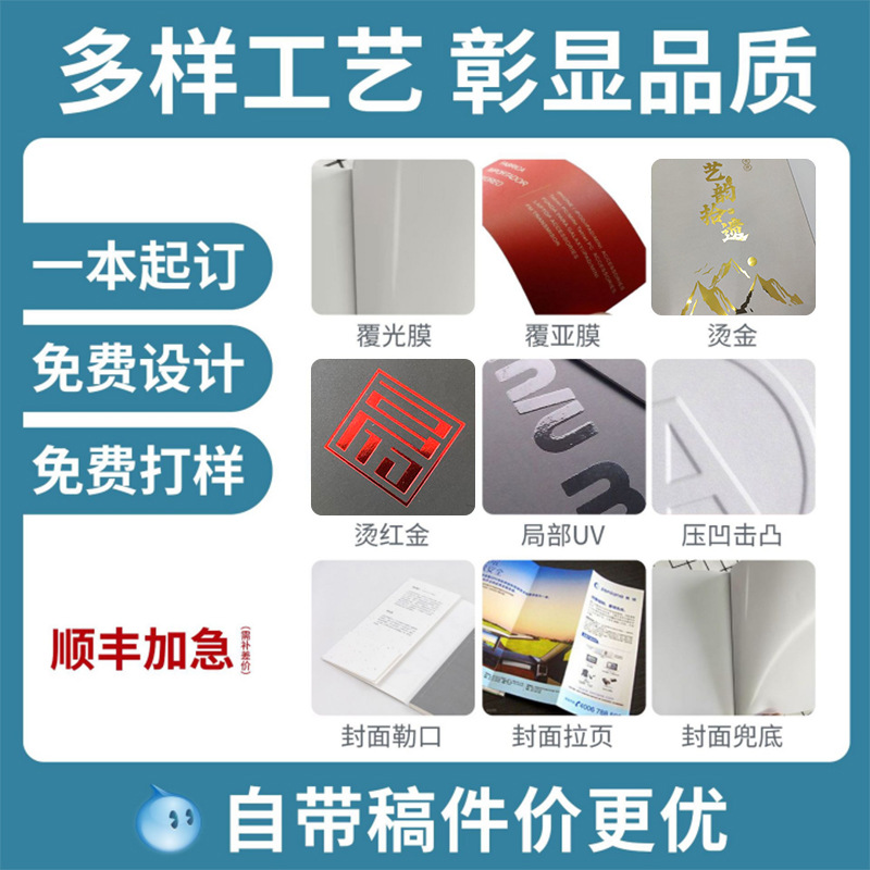 Офсетная печать, горячее тиснение, тиснение, ламинация.