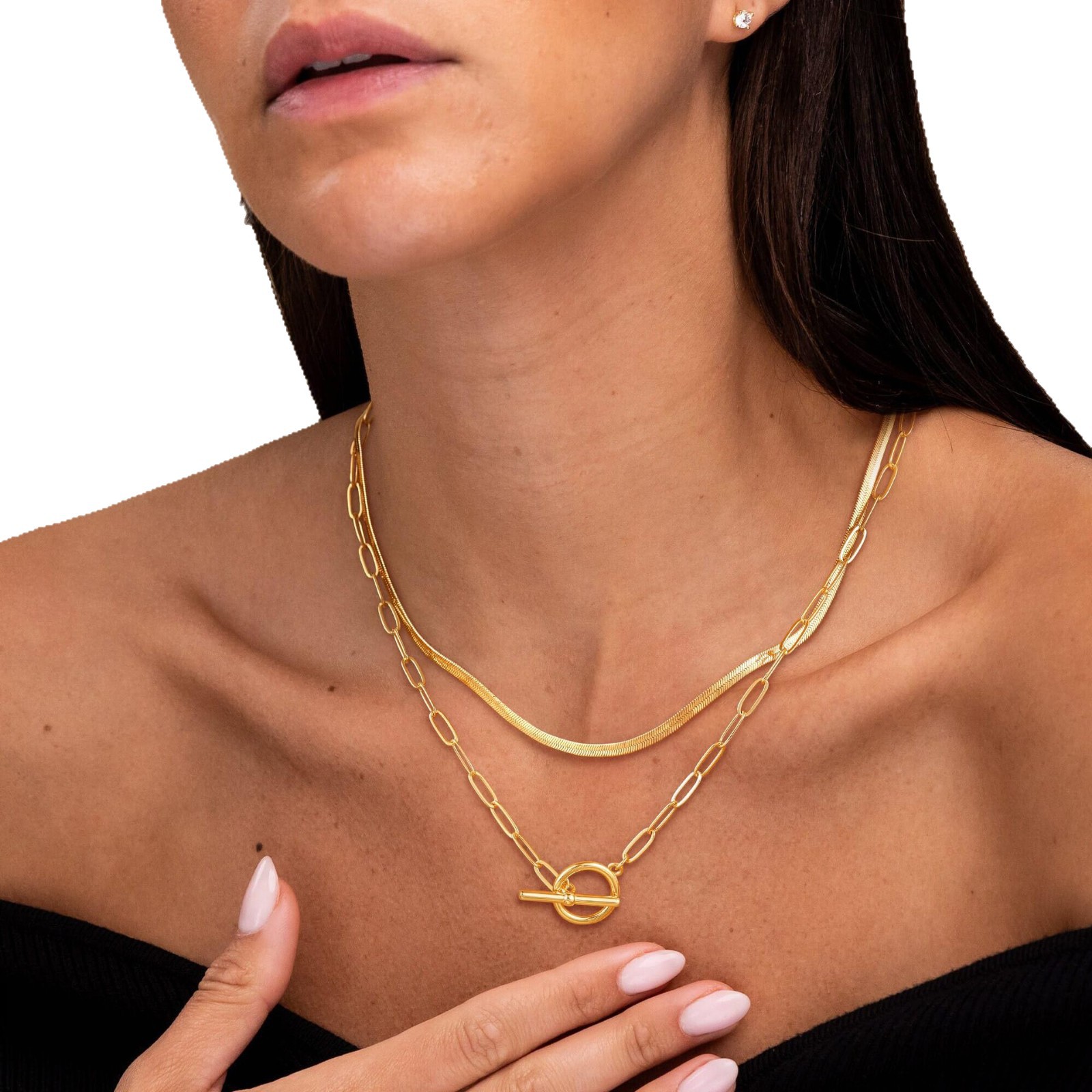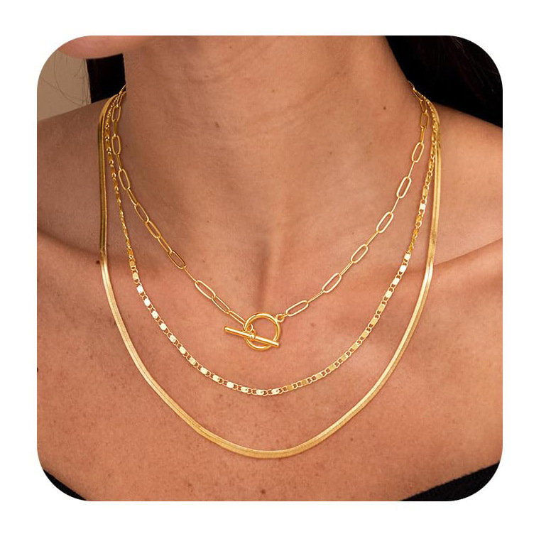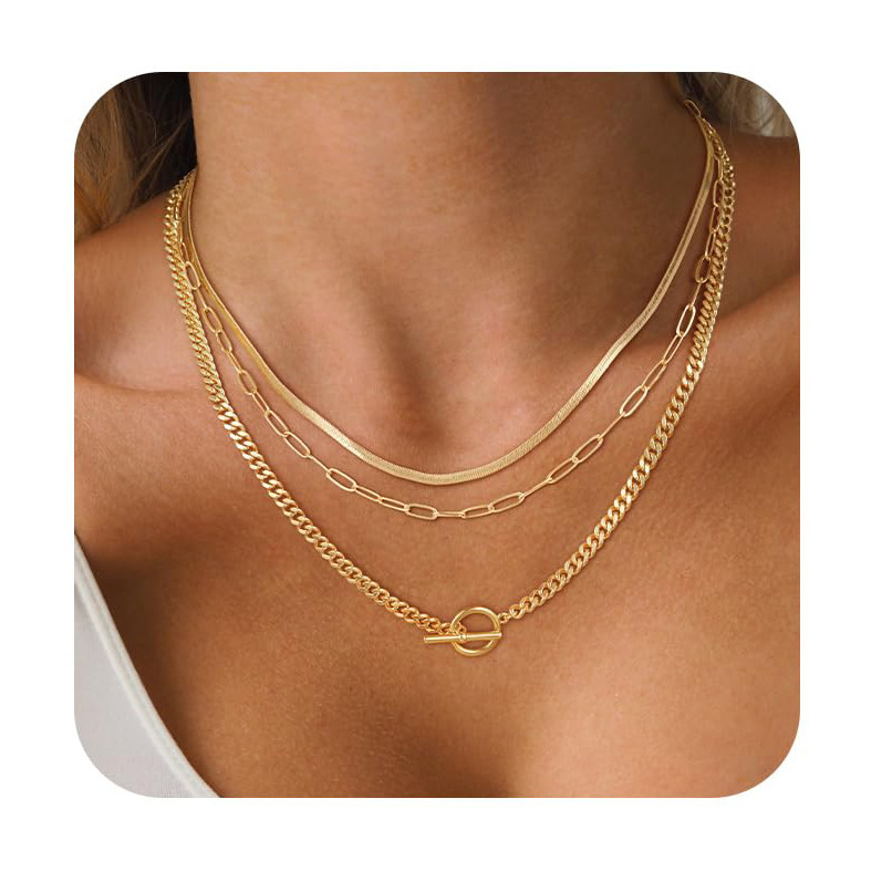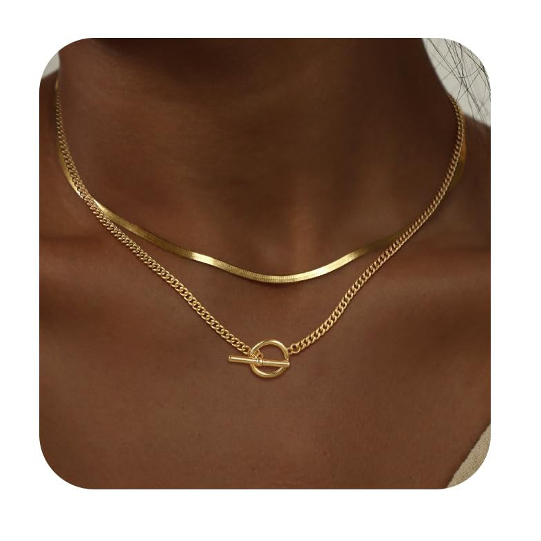 Европейская и американская трансграничная мода OT-пряжка, цепочка на ключицу, кубинская цепочка, скрепка для бумаги, цепочка из змеиной кости, волшебная цепочка, многослойное ожерелье для женщин