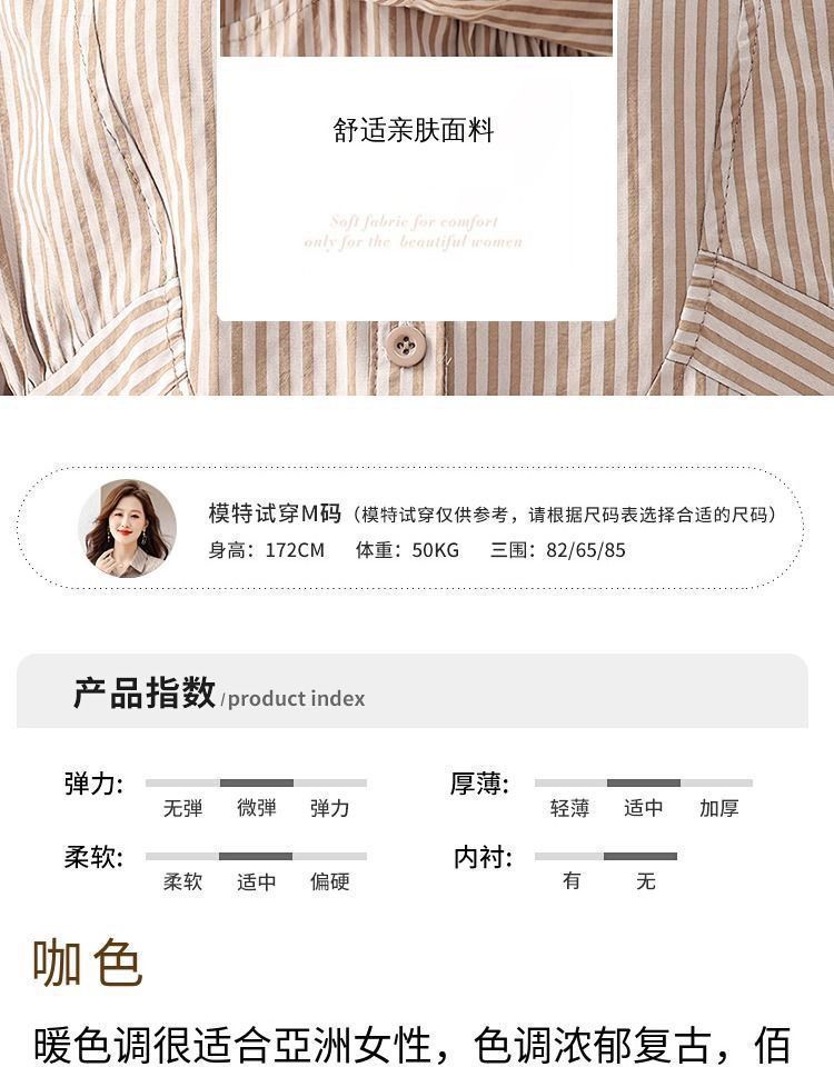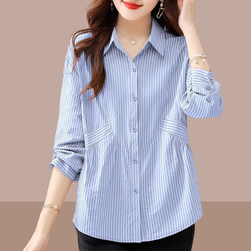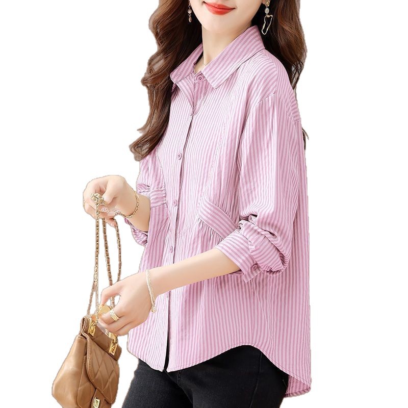 女士衬衫长袖春秋新款设计感小众上衣时尚洋气遮肚子显瘦条纹衬衣