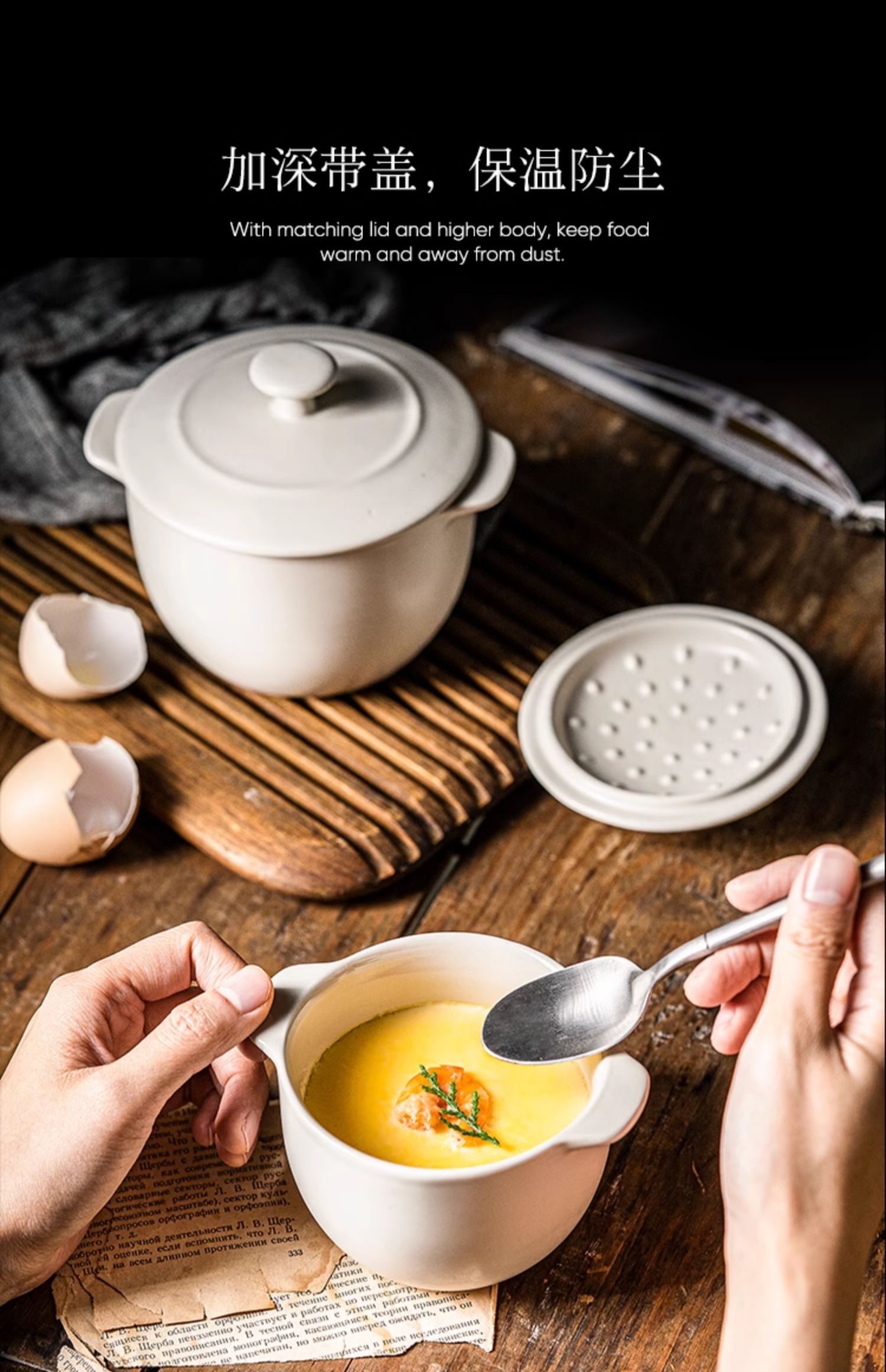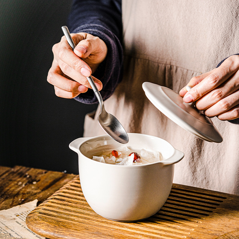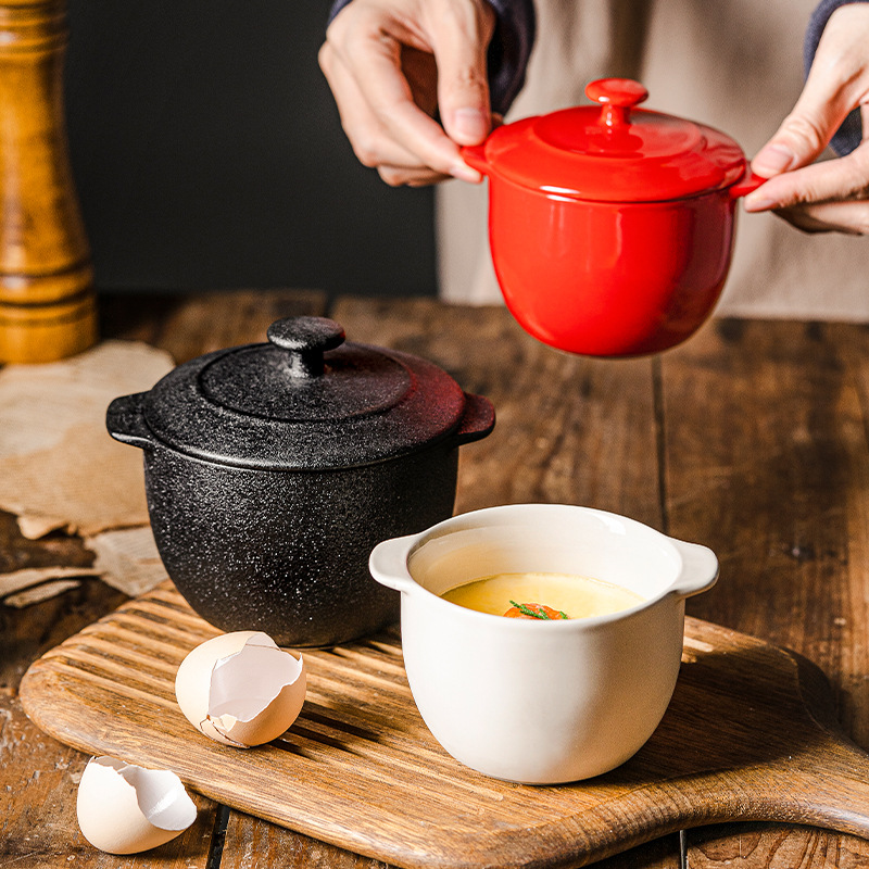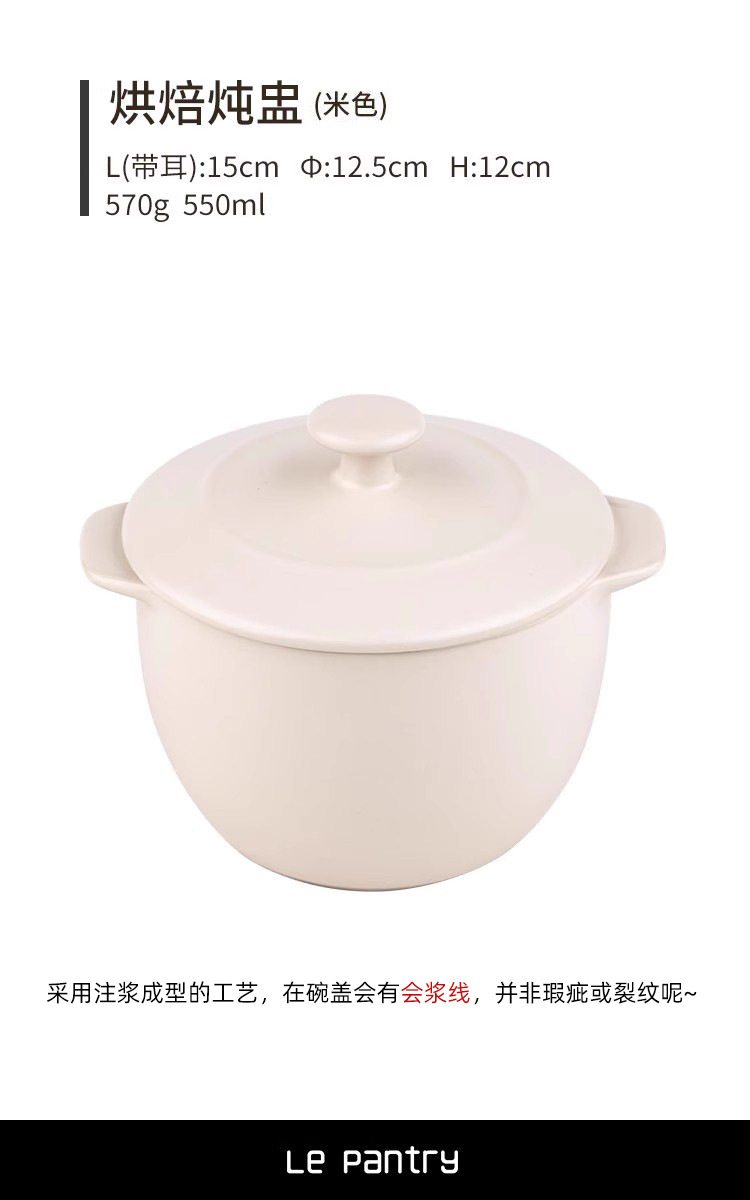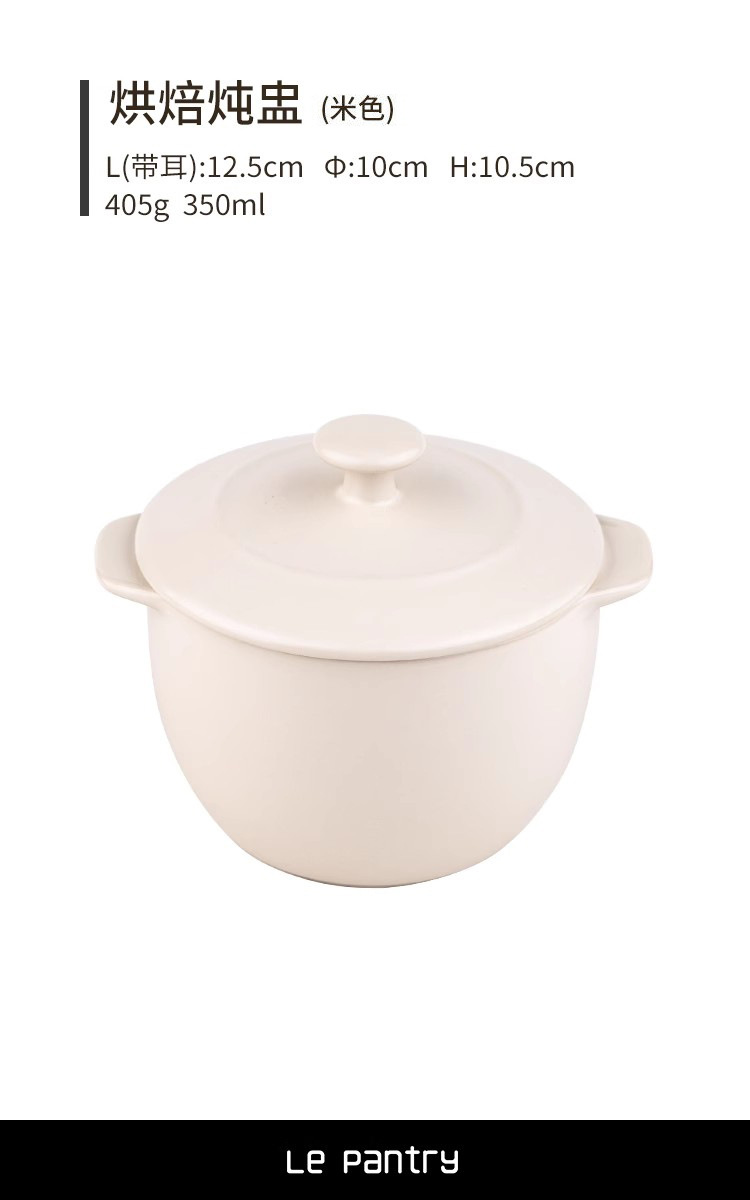 LePantry双耳小炖盅陶瓷烤碗蒸蛋碗带盖加深甜品蒸鸡蛋羹汤碗
