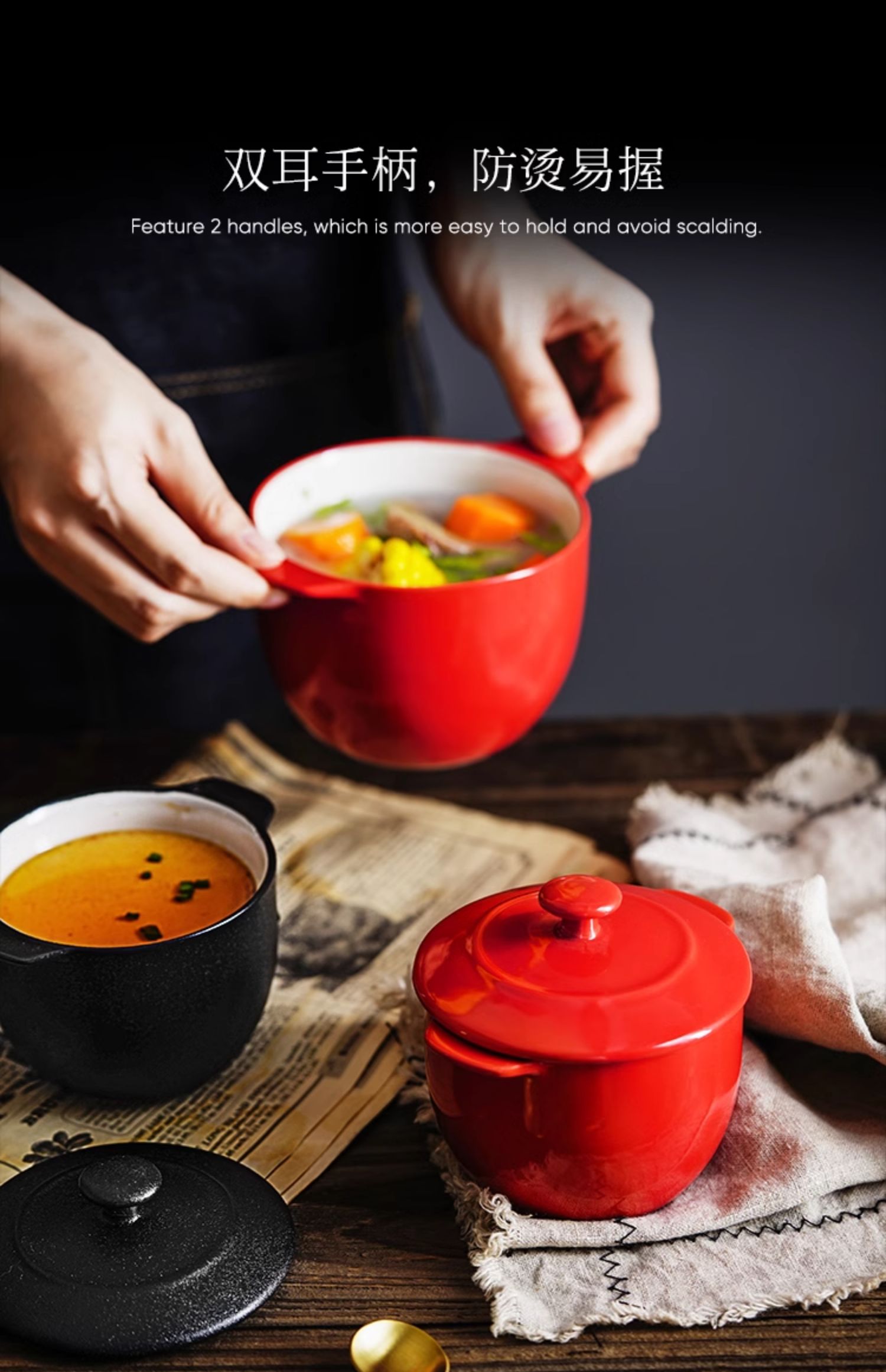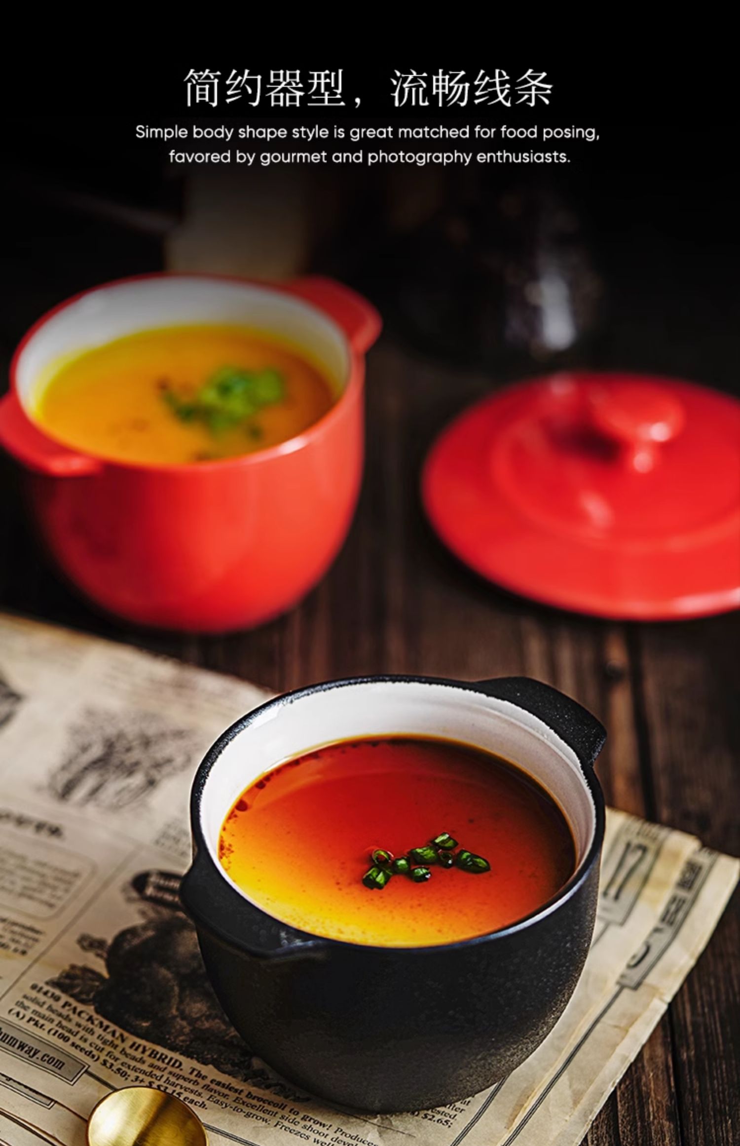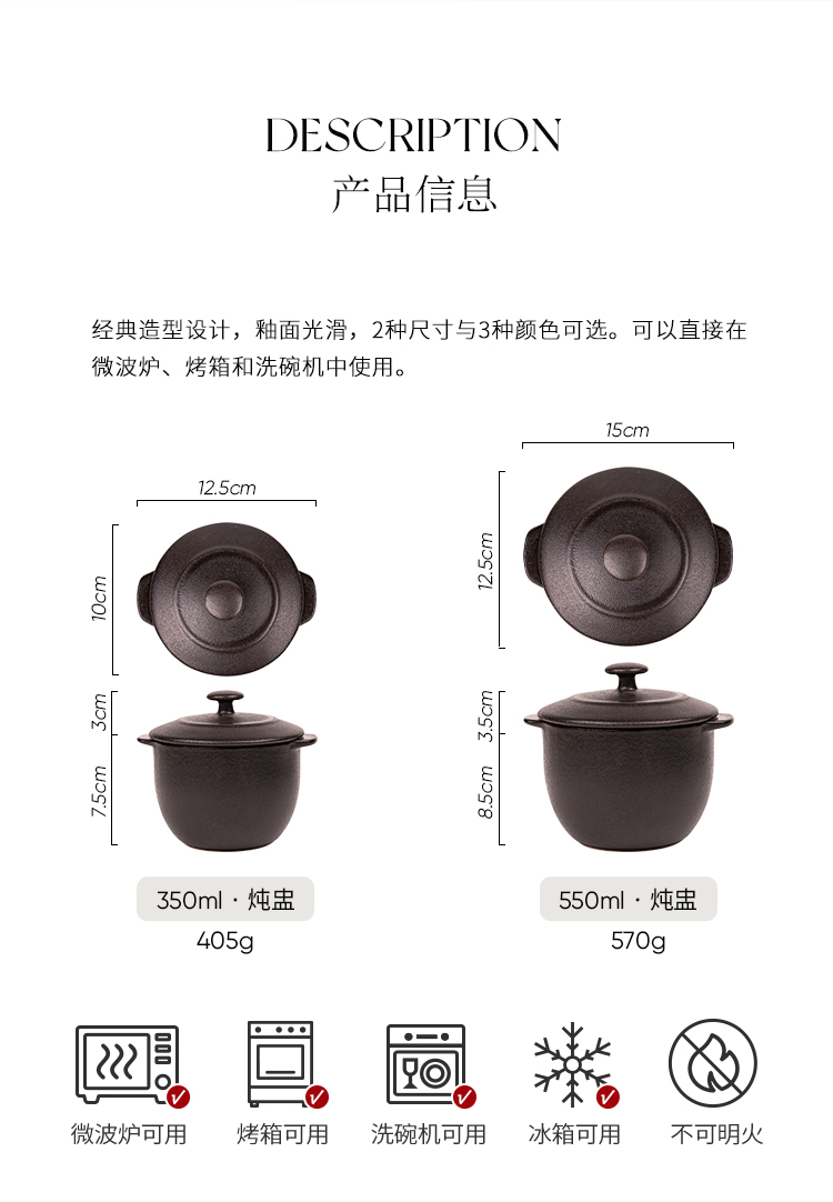 小号炖盅-米色 350ml; 大号炖盅-米色 550ml; 大号炖盅-黑色 550ml; 小号炖盅-红色 350ml; 炖盅-铸铁黑 350ml; 炖盅-米色 350ml