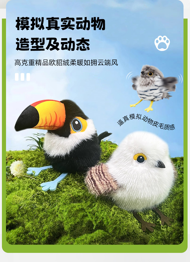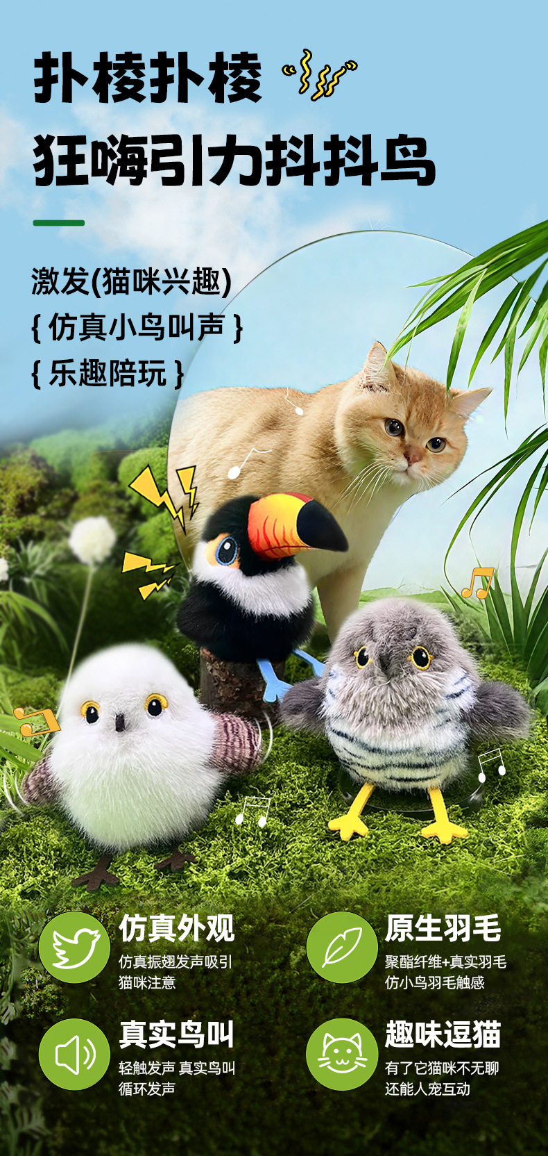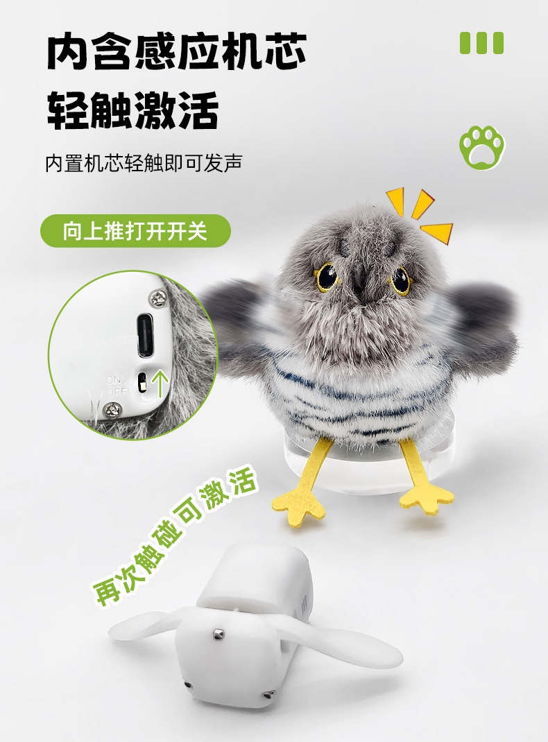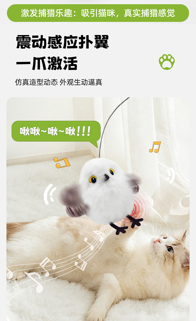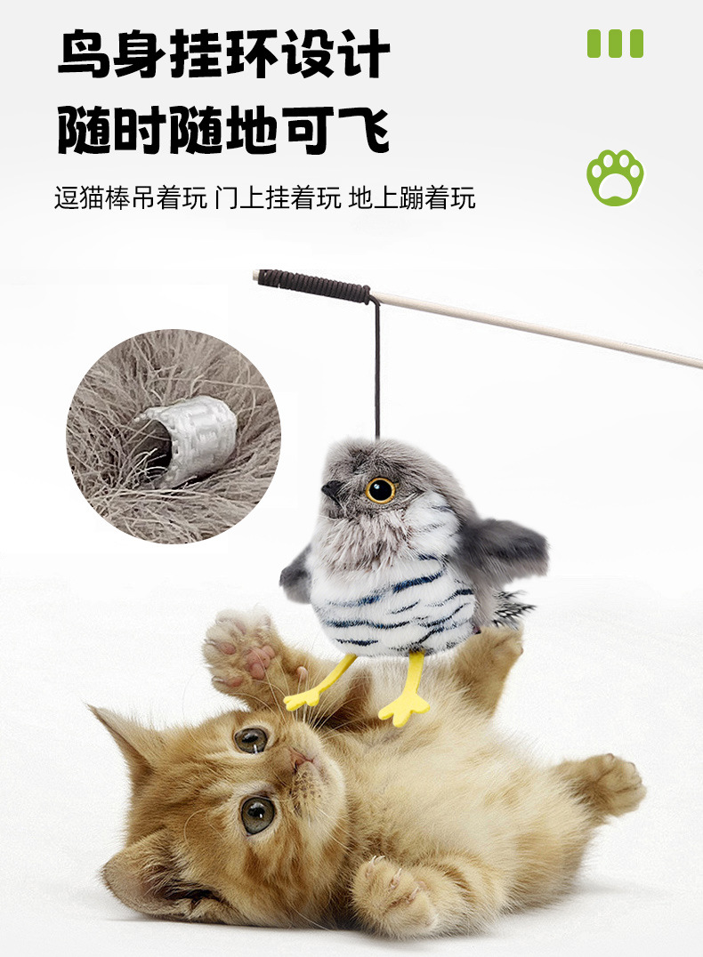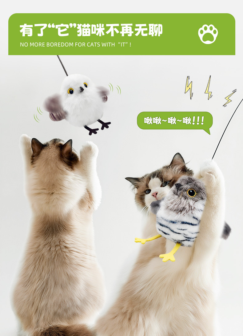 Электрическая игрушка для кошек Pet Gravity Shake Bird, имитация звука птицы, автоматическая палочка-дразнилка для кошек, машущая маленькая толстая заводская пищалка