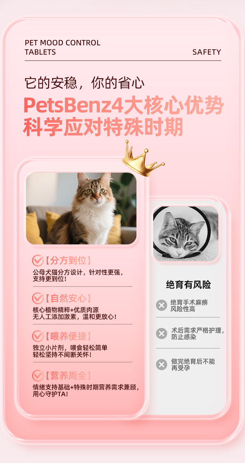 PetsBenz таблетки против оestrus для домашних животных 50 таблеток в коробке для котов-самцов и котов-самок, таблетки против оestrus для собак-самцов и собак-самок для регулирования настроения и против оestrus