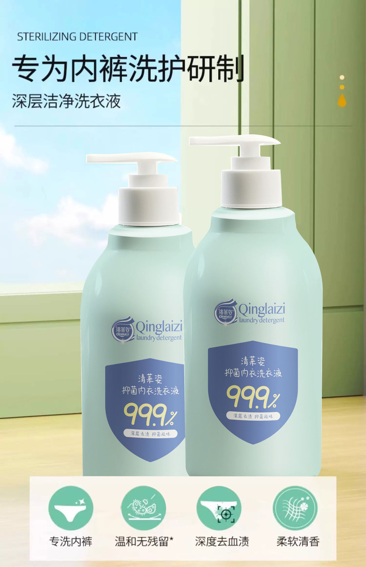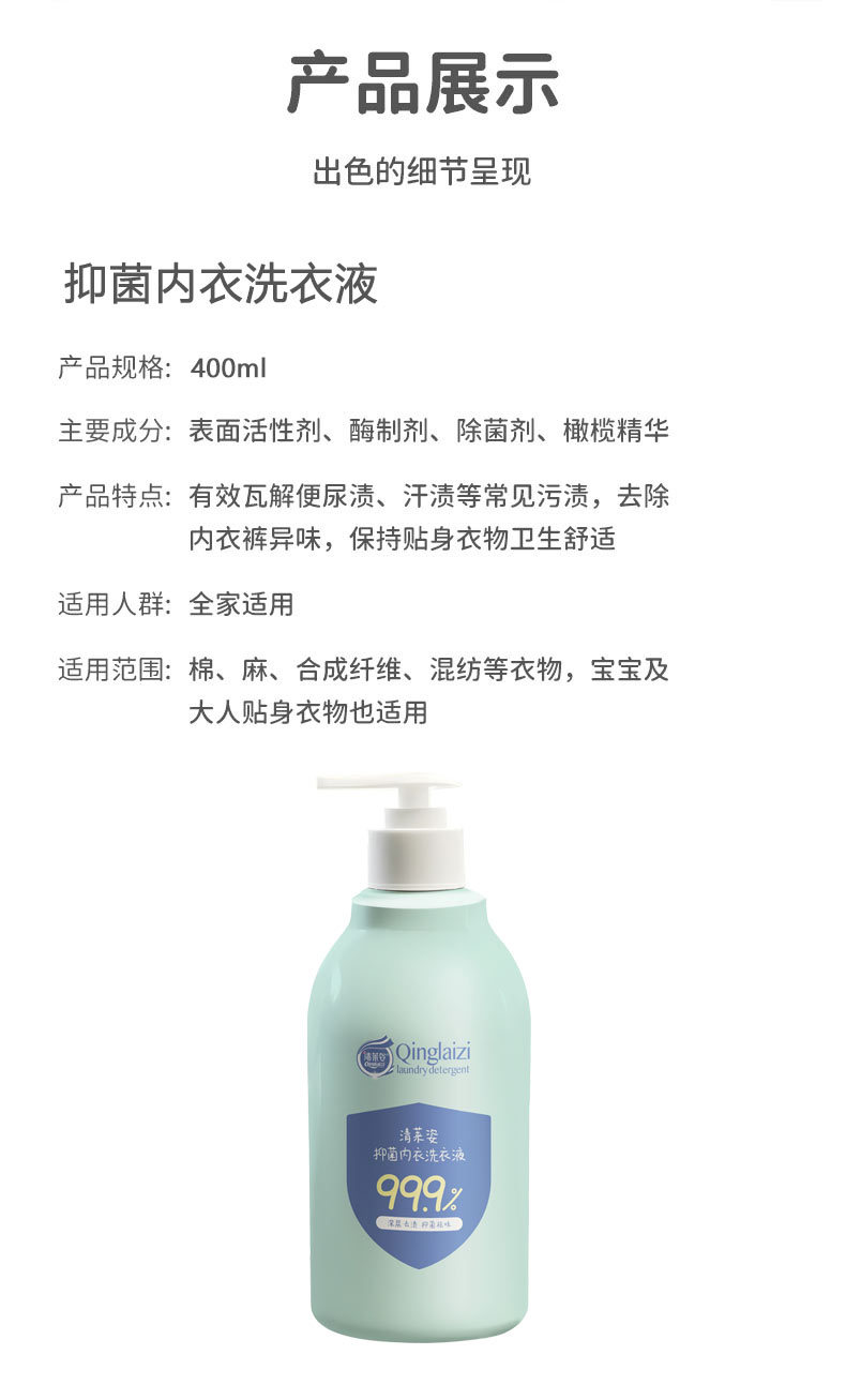 Стиральный порошок для нижнего белья Qinglai Zi для стерилизации и антибактериального удаления пятен крови, чистка нижнего белья унисекс и удаление клещей с удалением запаха.