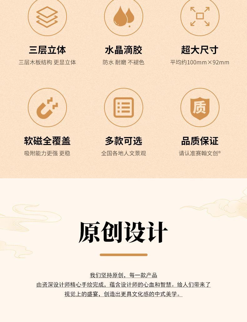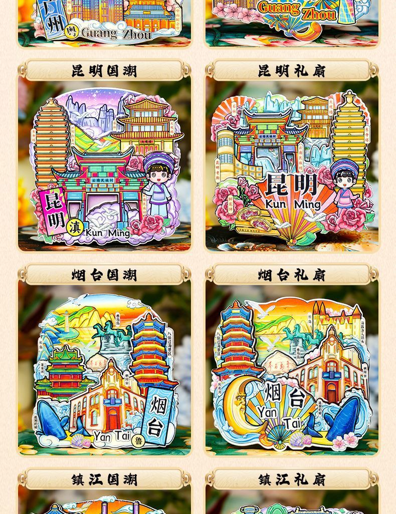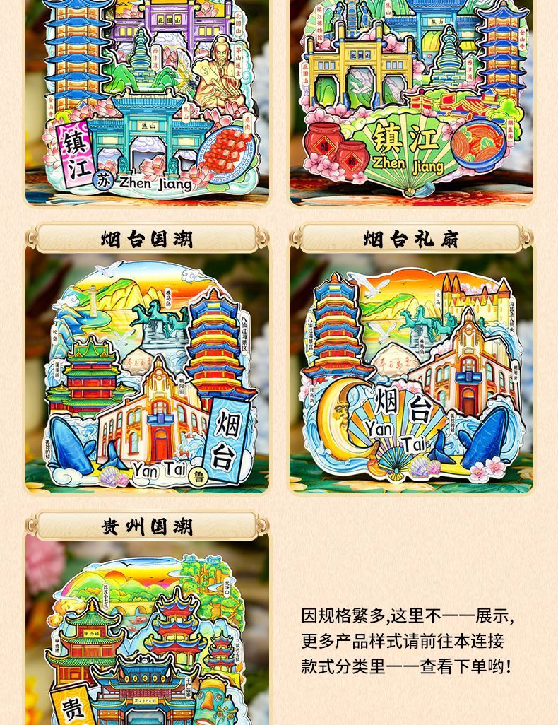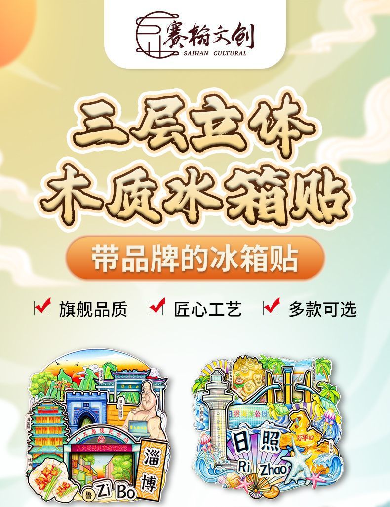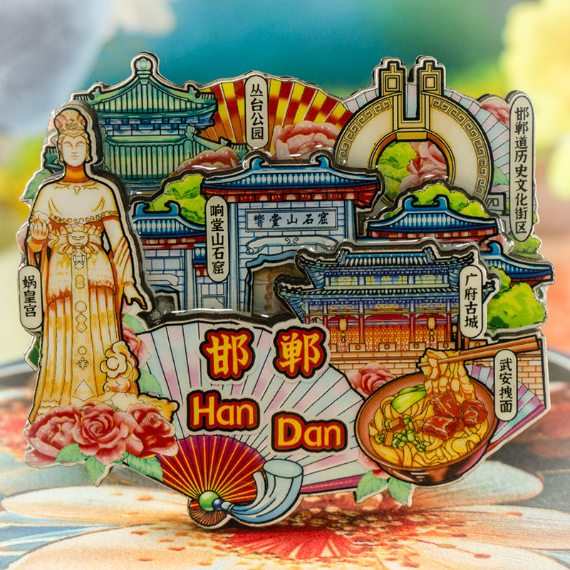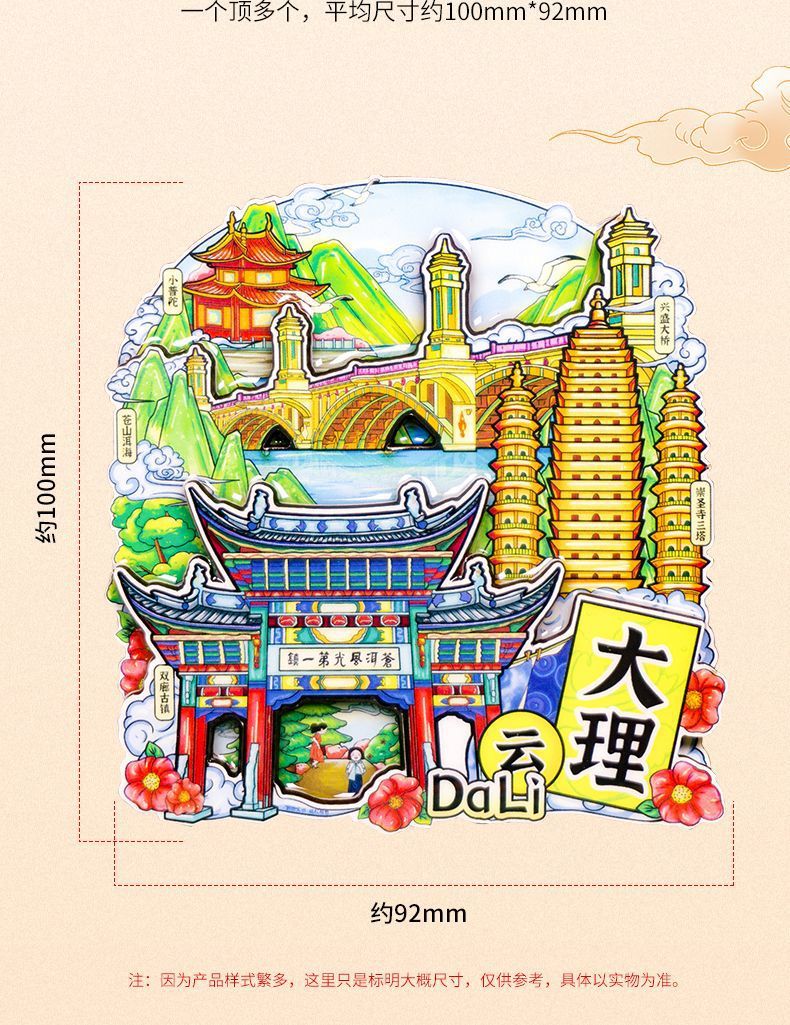 [Хандан] Национальный тренд городской магнит на холодильник 3D стерео деревянный клей дорожный сувенир культурный и творческий подарок