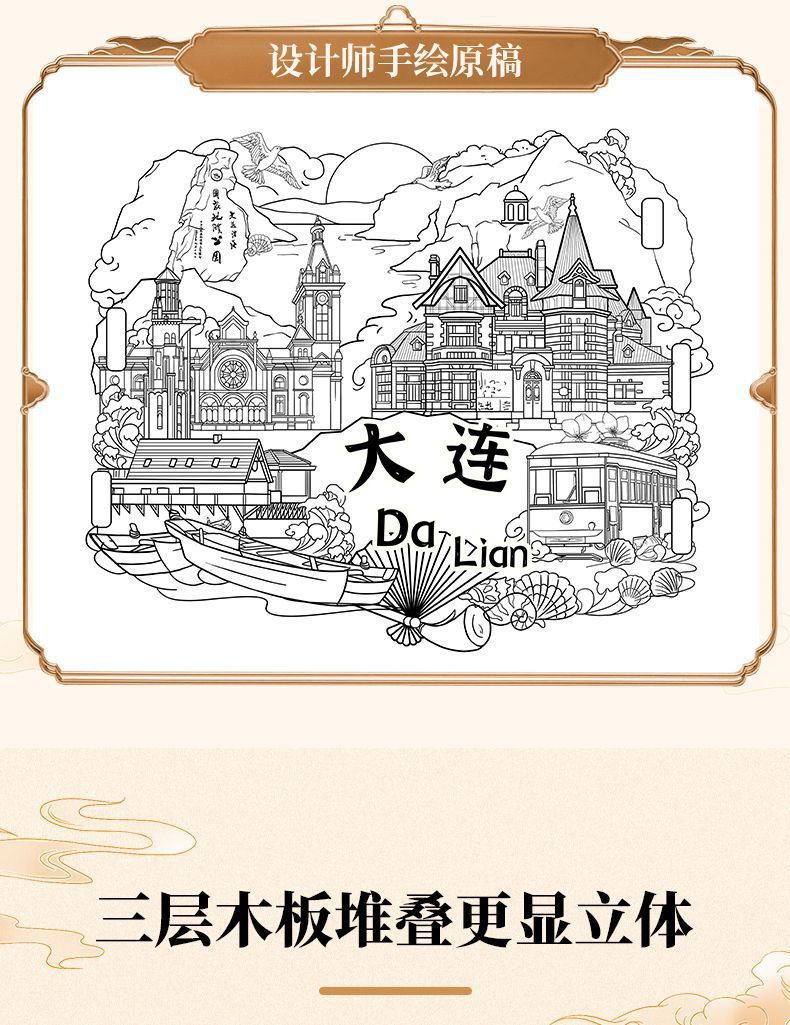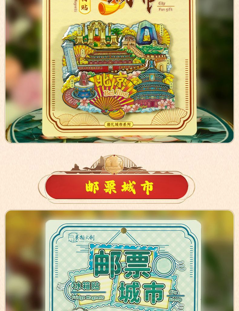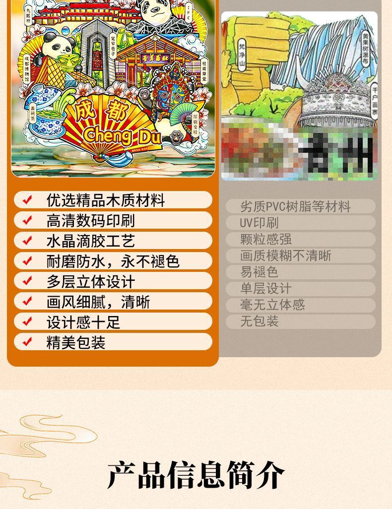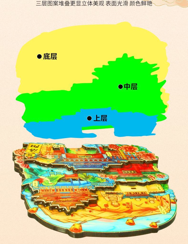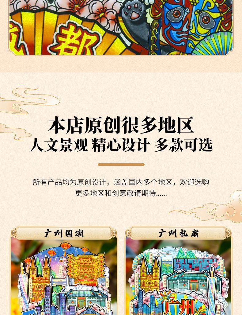 [Хандан] Национальный тренд городской магнит на холодильник 3D стерео деревянный клей дорожный сувенир культурный и творческий подарок