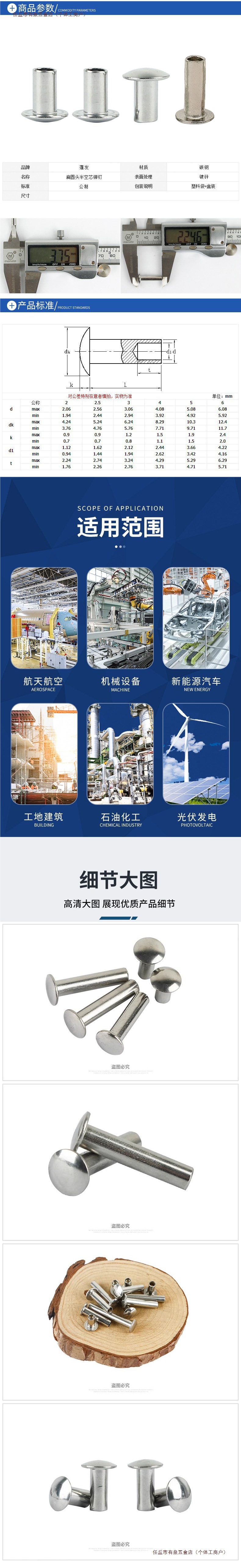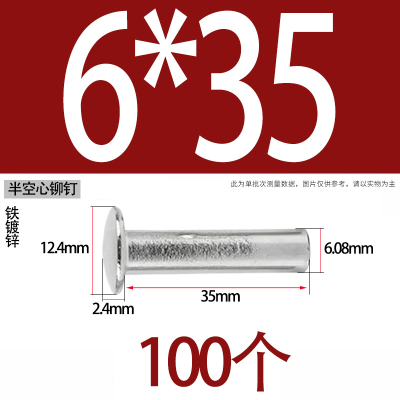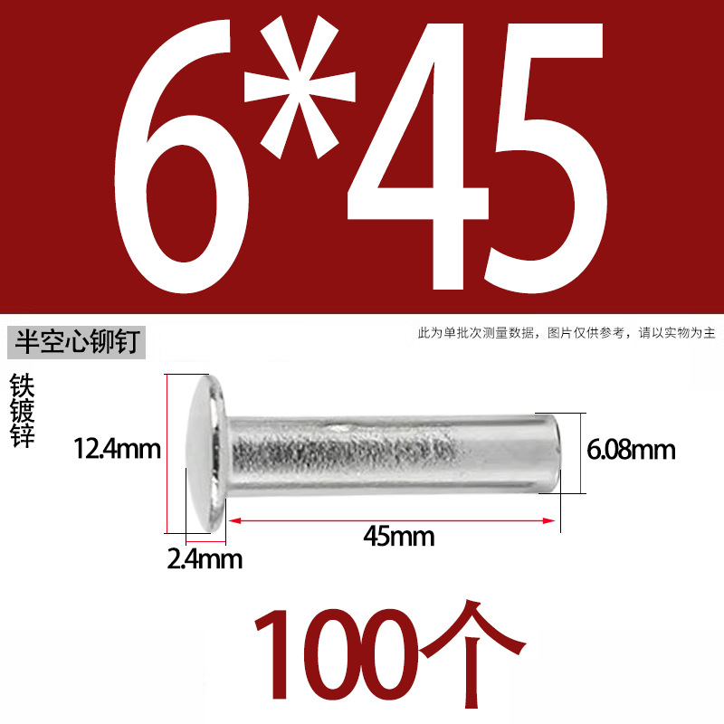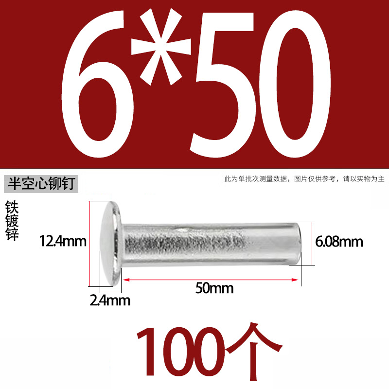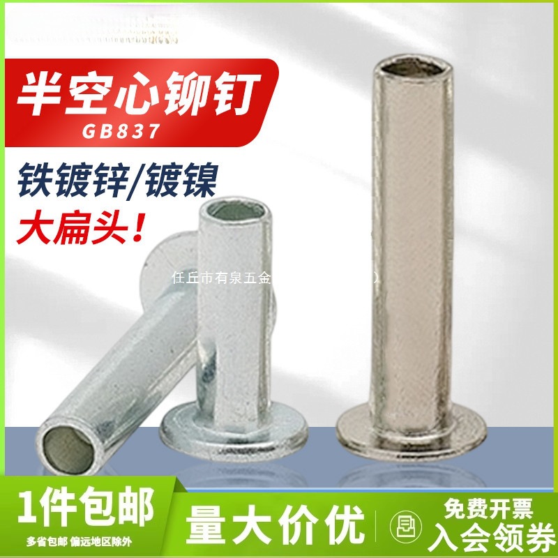 Железные оцинкованные полуполые заклепки GB873, большие железные заклепки с плоской головкой, никелированные полые заклепки, полуполые заклепки, кованые