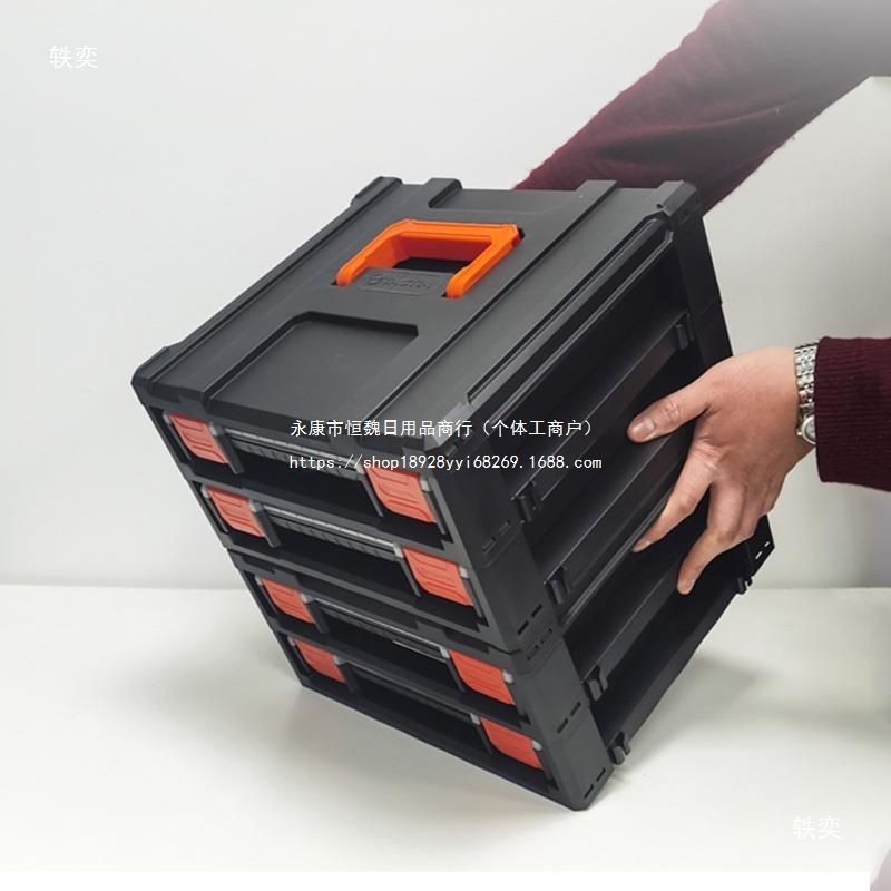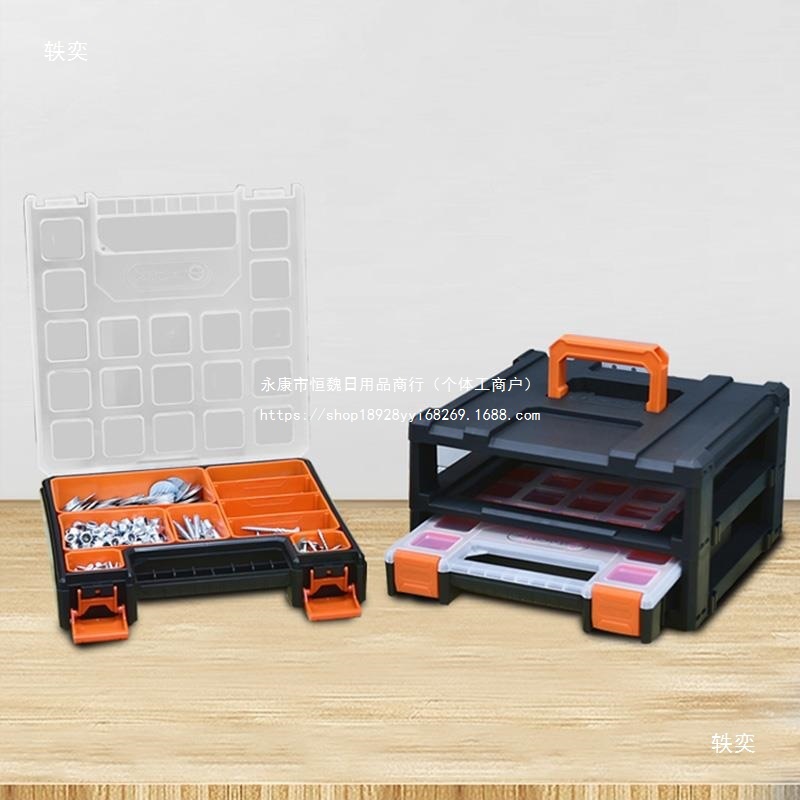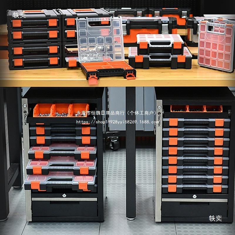 Коробка для классификационных деталей с 9 отделениями/320150; Чемодан ящик-встроенный 2-х секционный ящик/320180; Ящик для сумок с выдвижным ящиком/2 шт. штабелируемые; 【1】