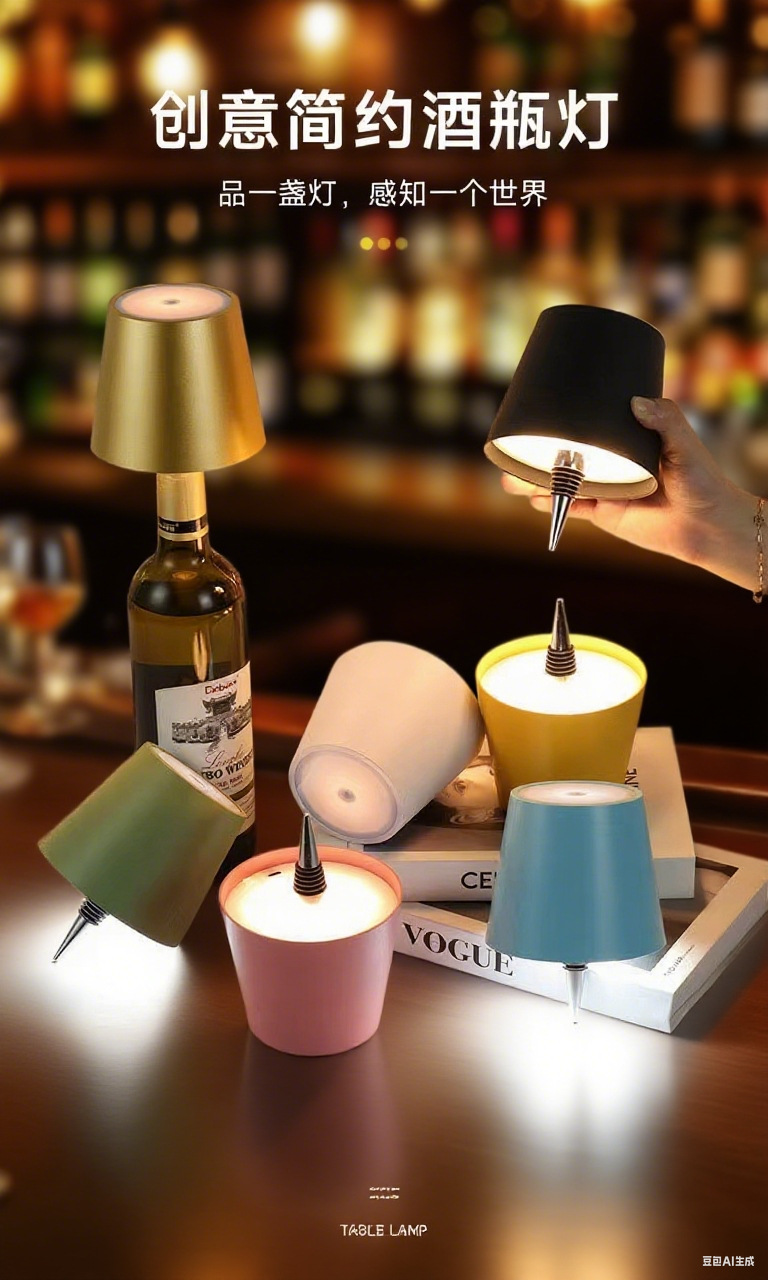 Настольная лампа для ресторана в скандинавском стиле, в форме бутылки вина, с креативным дизайном, встроенной подсветкой, съемной зарядкой и RGB-подсветкой.
