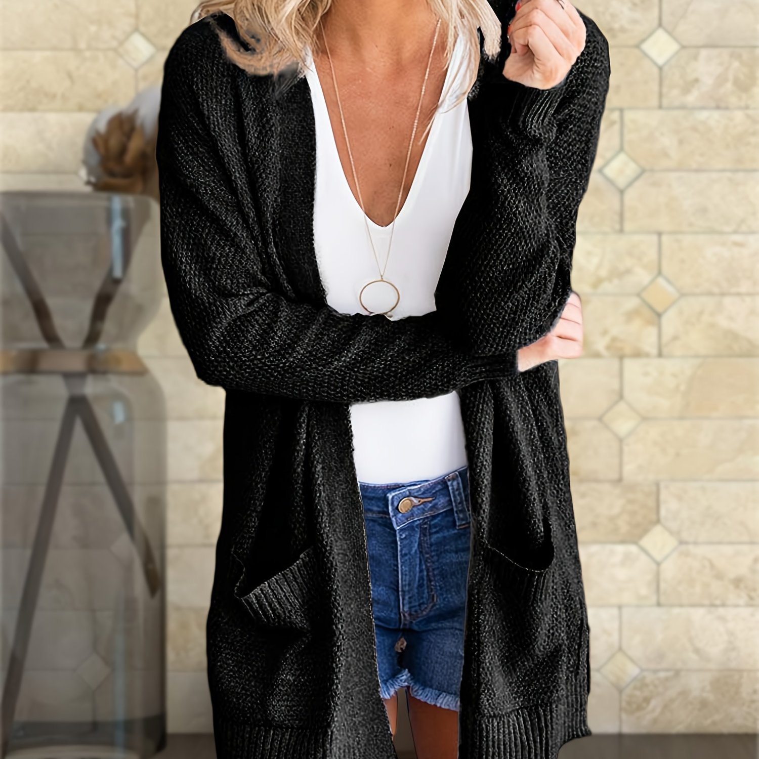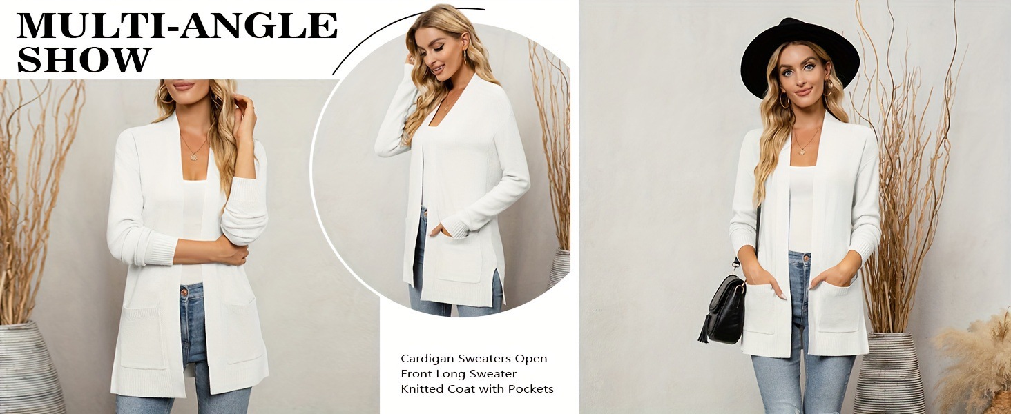 Длинные вязаные кардиганы с открытой передней частью для женщин, дропшиппинг