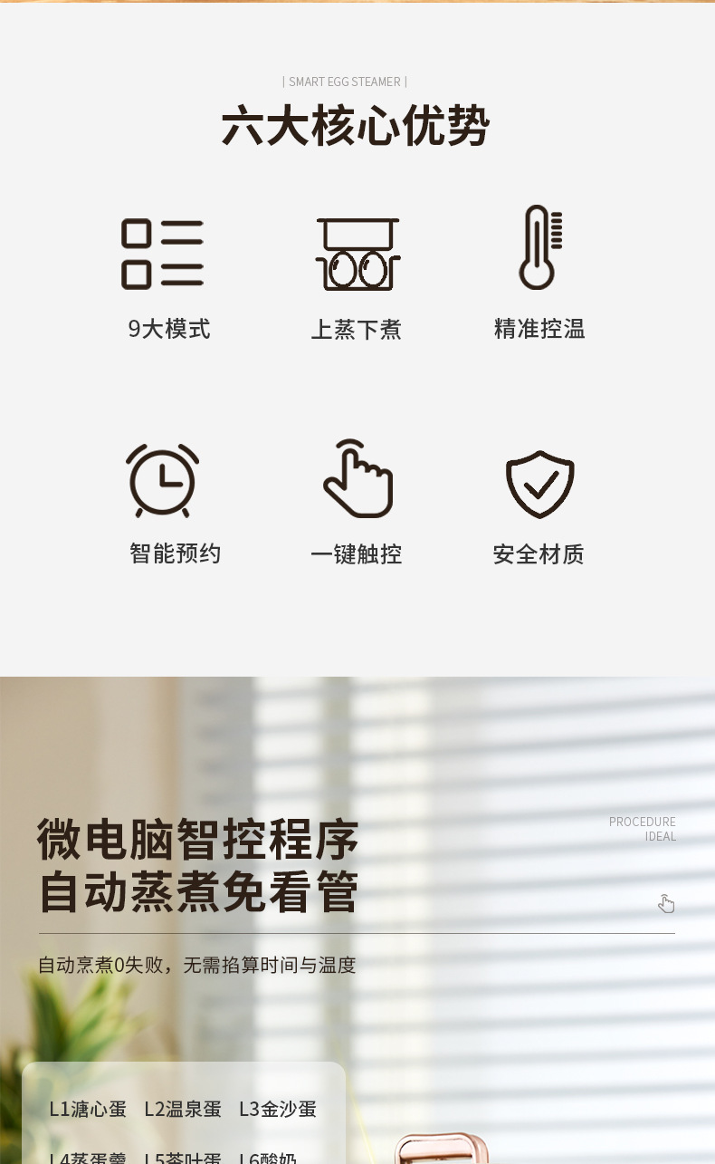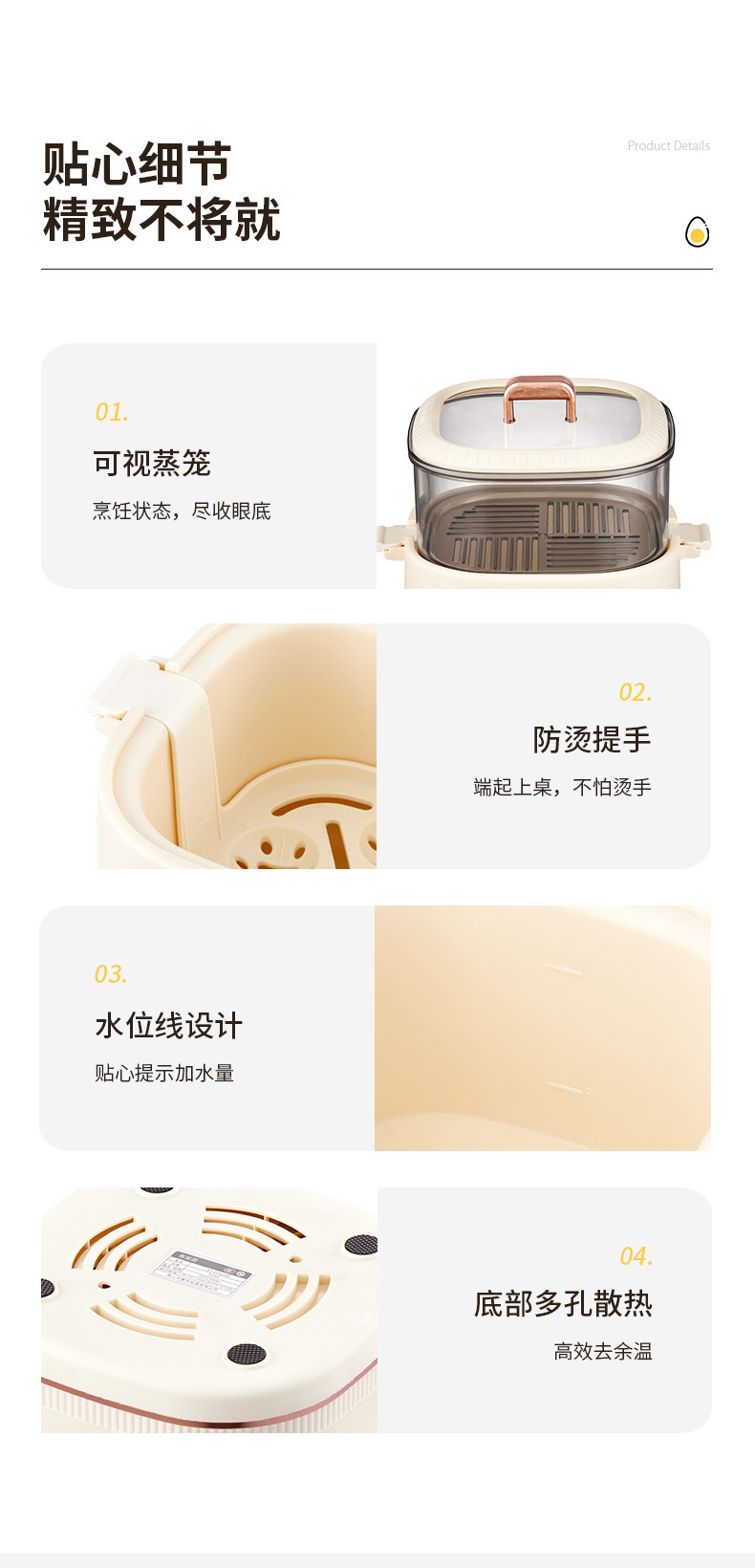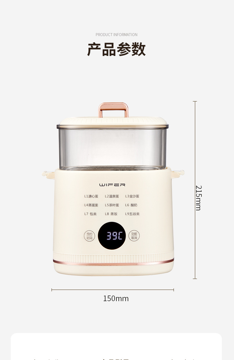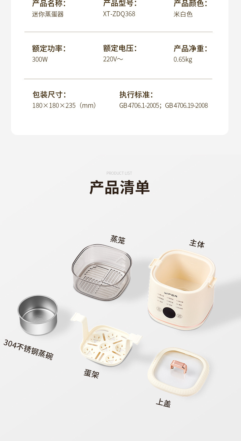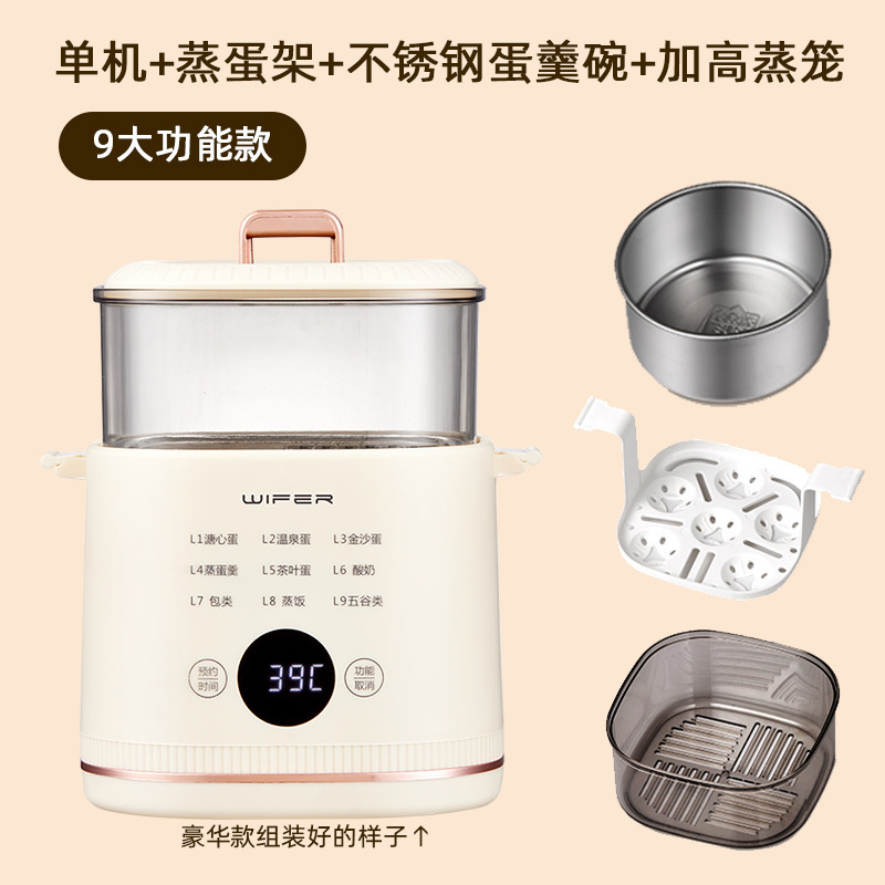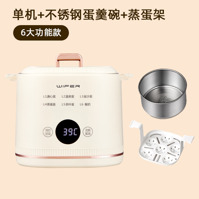 6 основных функций яйцеварки входят в стандартную комплектацию [хост + решетка для приготовления яиц на пару]; 6 основных функций яйцеварки [хозяин + подставка для яиц на пару + миска для заварного крема]; 9 основных функций яйцеварки высокой конфигурации [хост + подставка для яиц на пару + чаша для заварного крема + высокая пароварка]