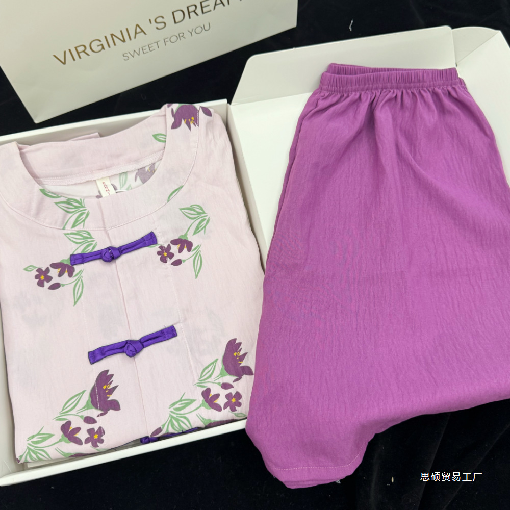 Новые китайские пижамы для женщин, стильные и удобные, элегантный комплект с принтом: рубашка и шорты, домашняя одежда, верхняя одежда 2025 года