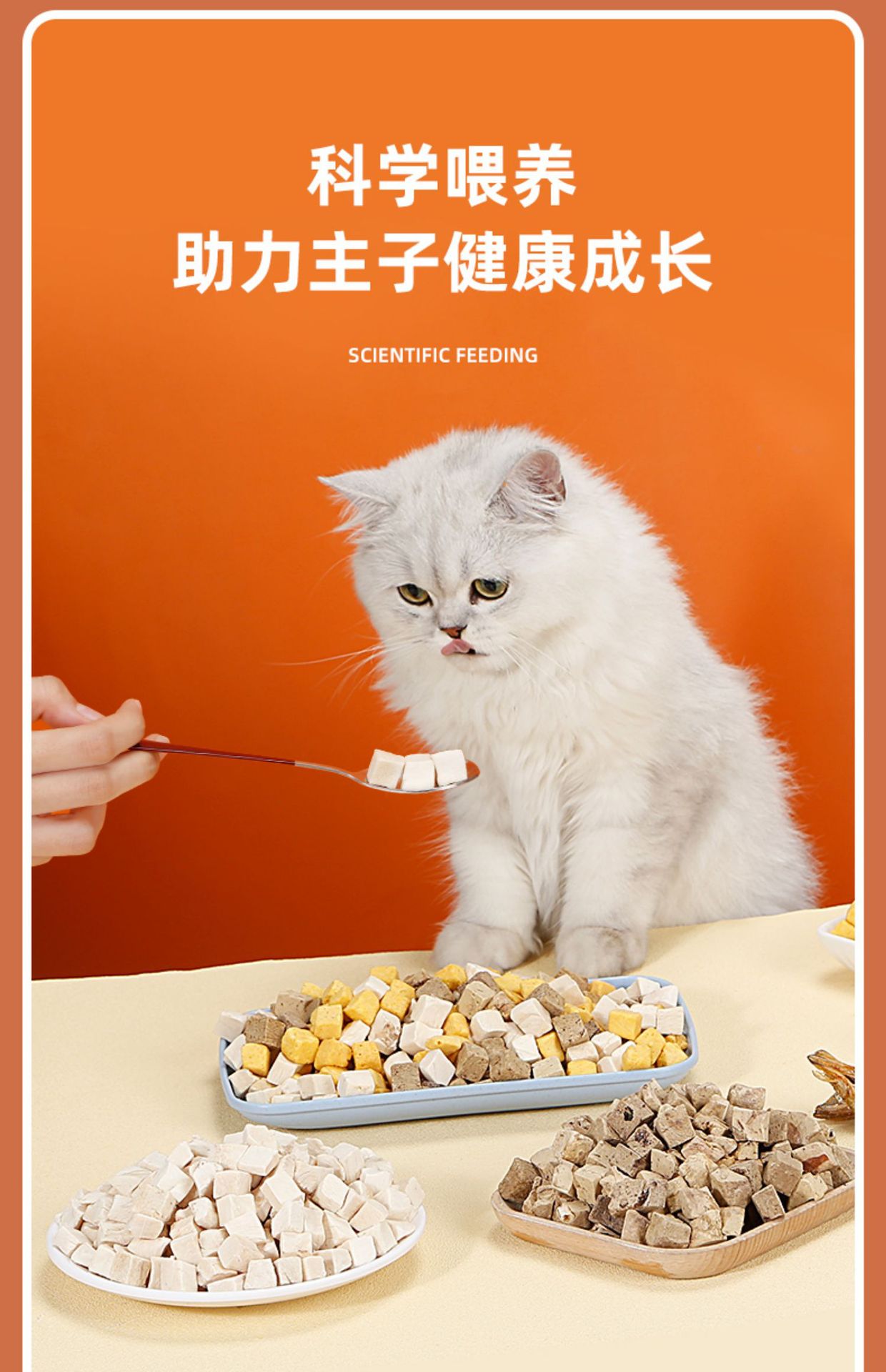 Лиофилизированные кошачьи закуски, куриные гранулы, куриная грудка, лиофилизированные кошачьи закуски, перепелиная рыба, сушеные питательные лиофилизированные мясные гранулы для кошек.