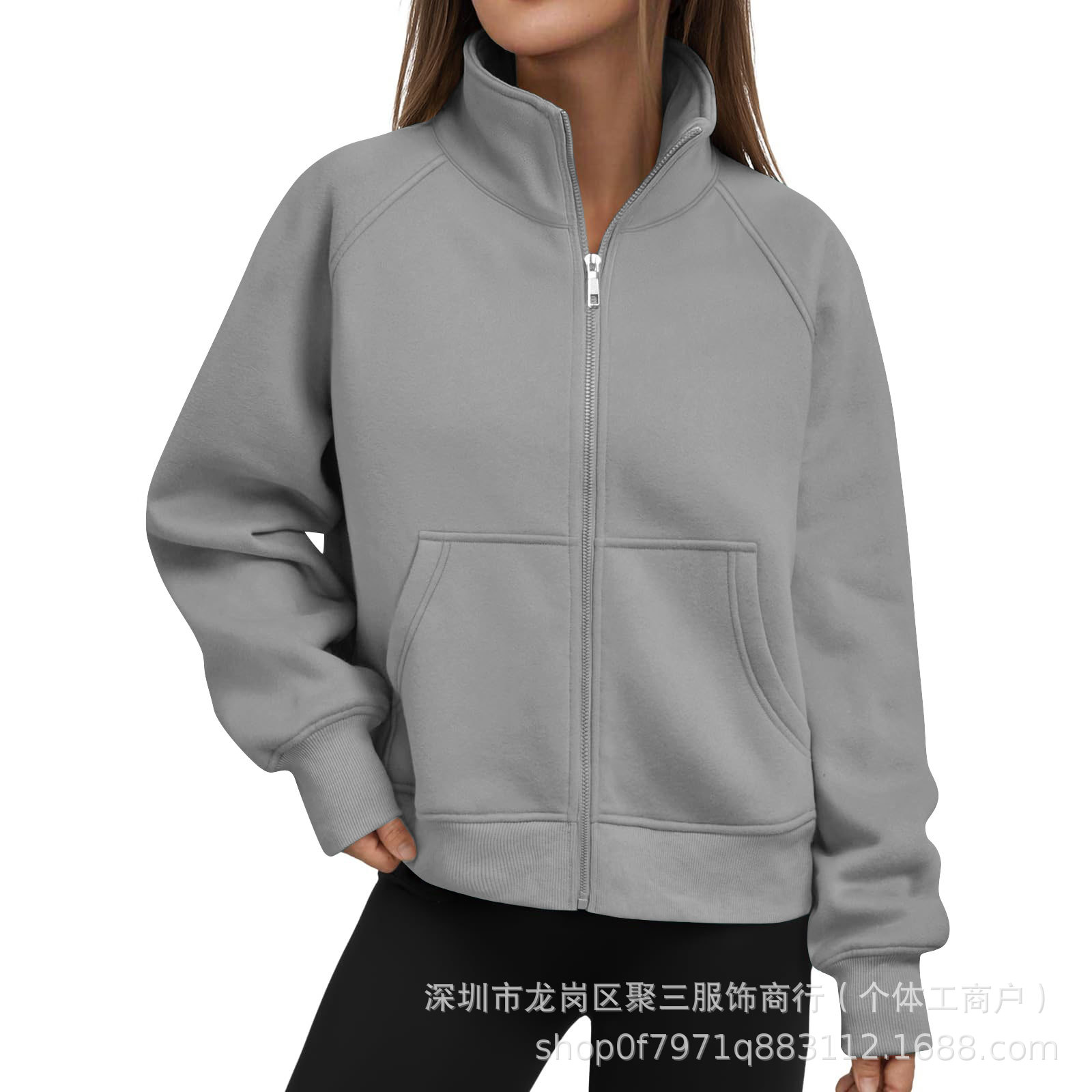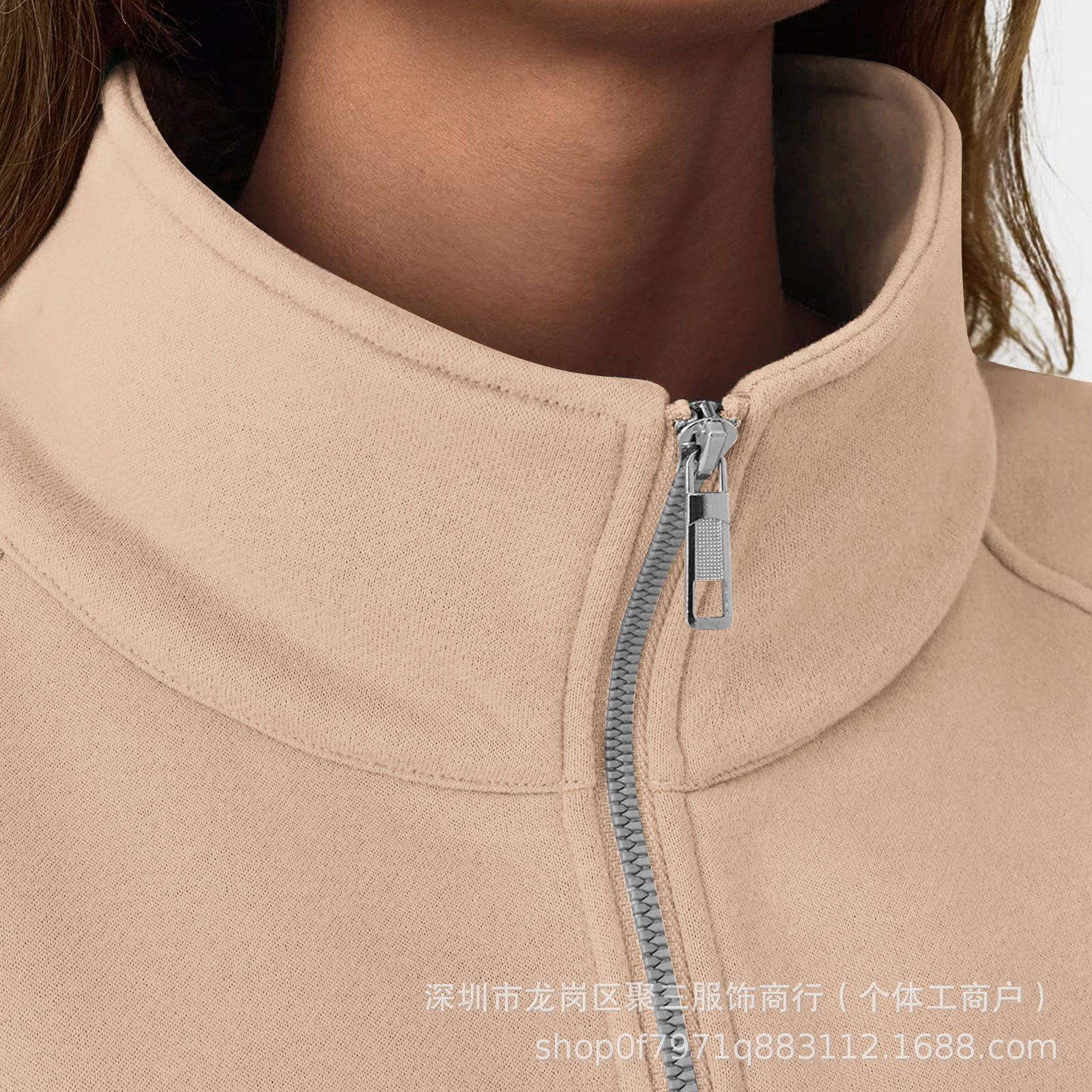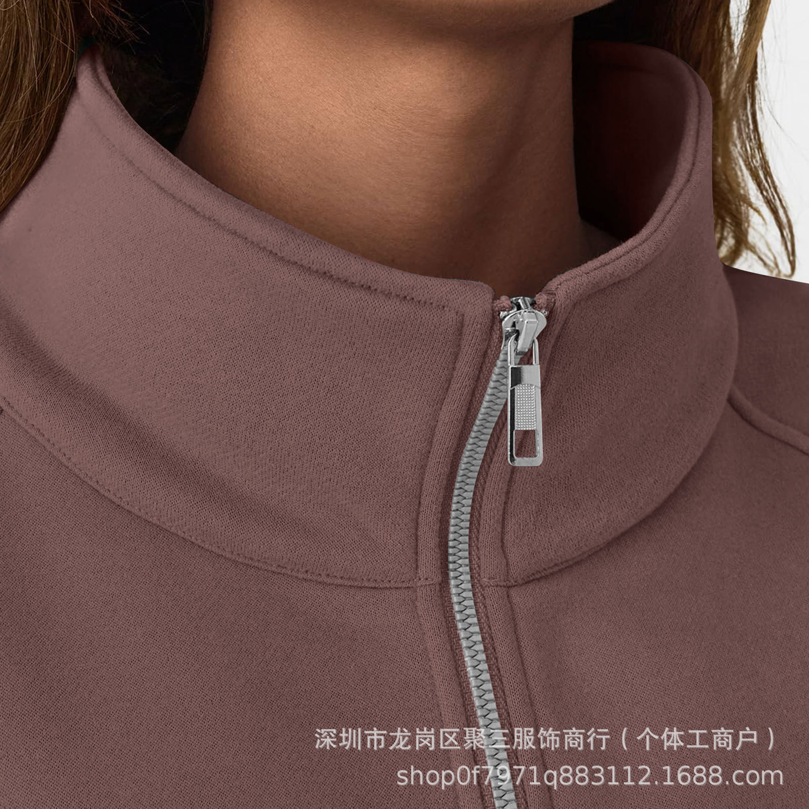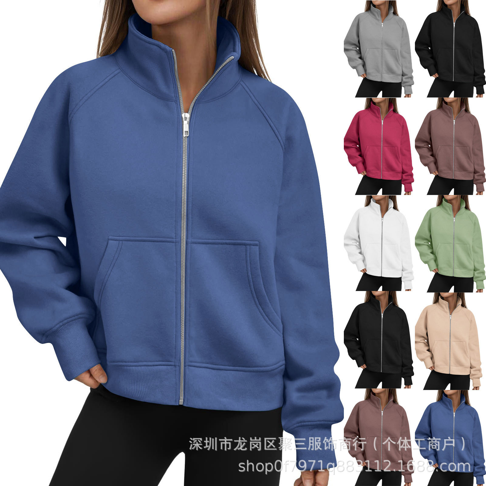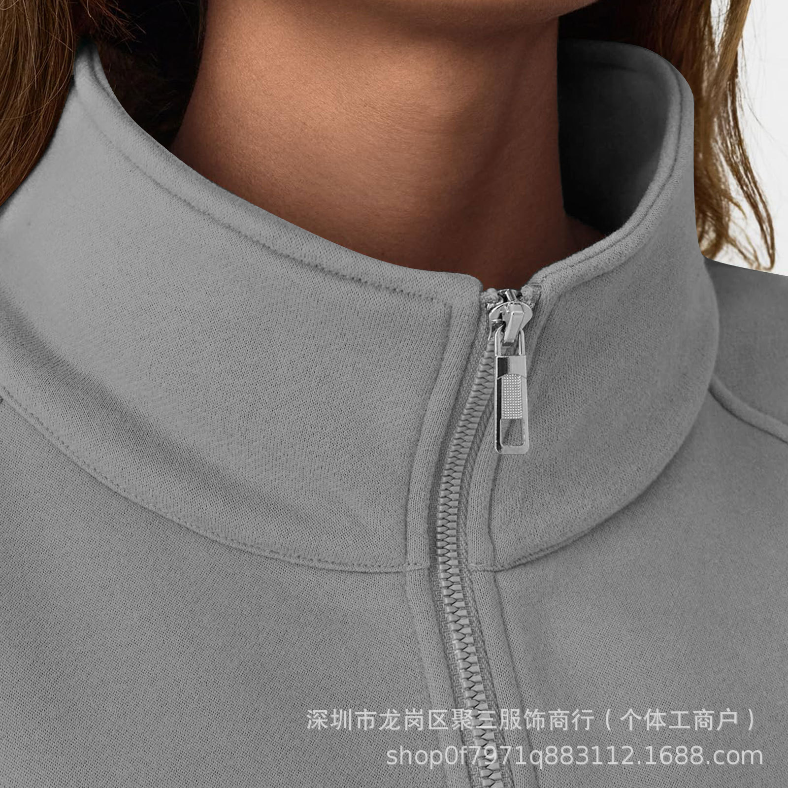 2025速卖通欧美外贸跨境女装亚马逊爆款长拉链短款立领拇指孔加绒