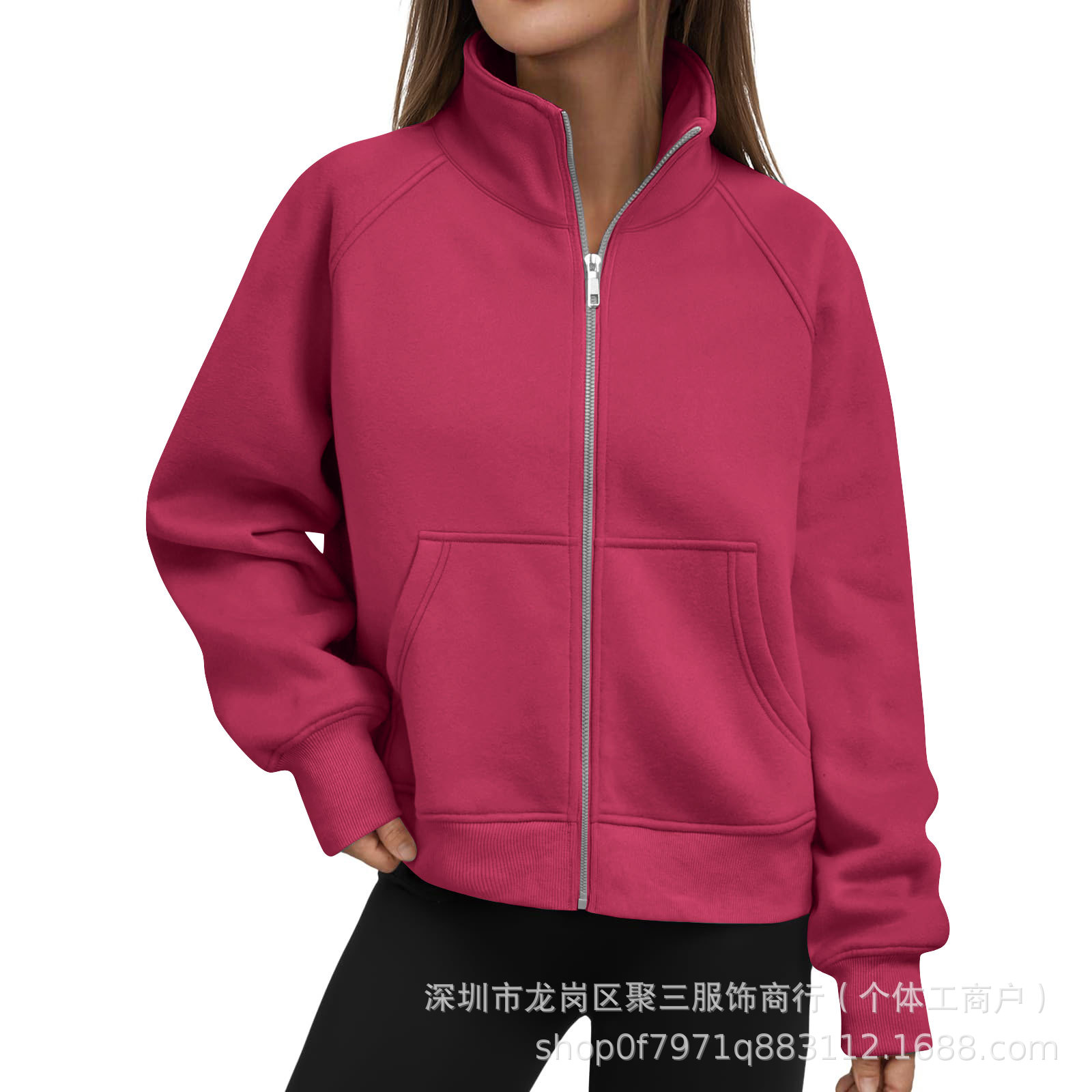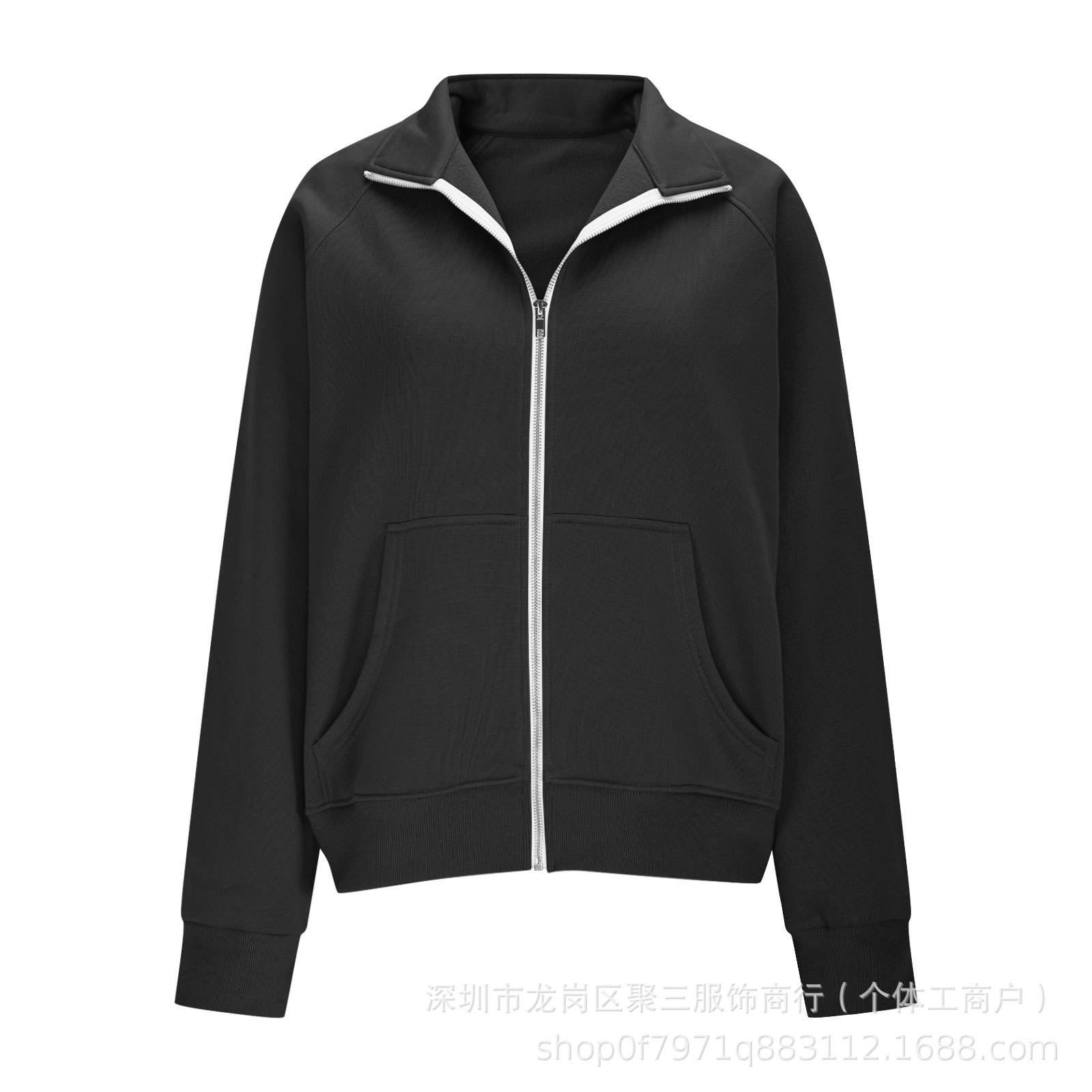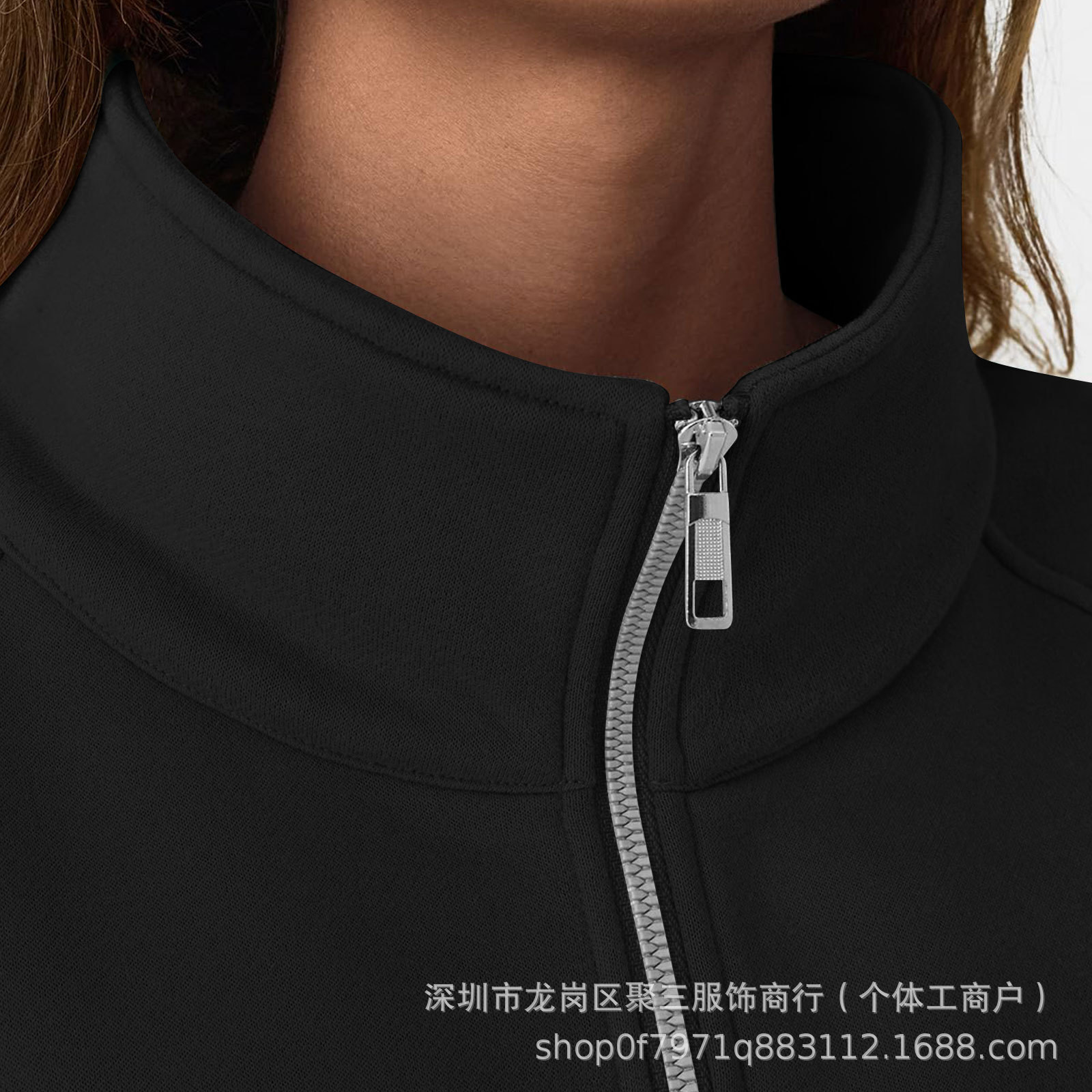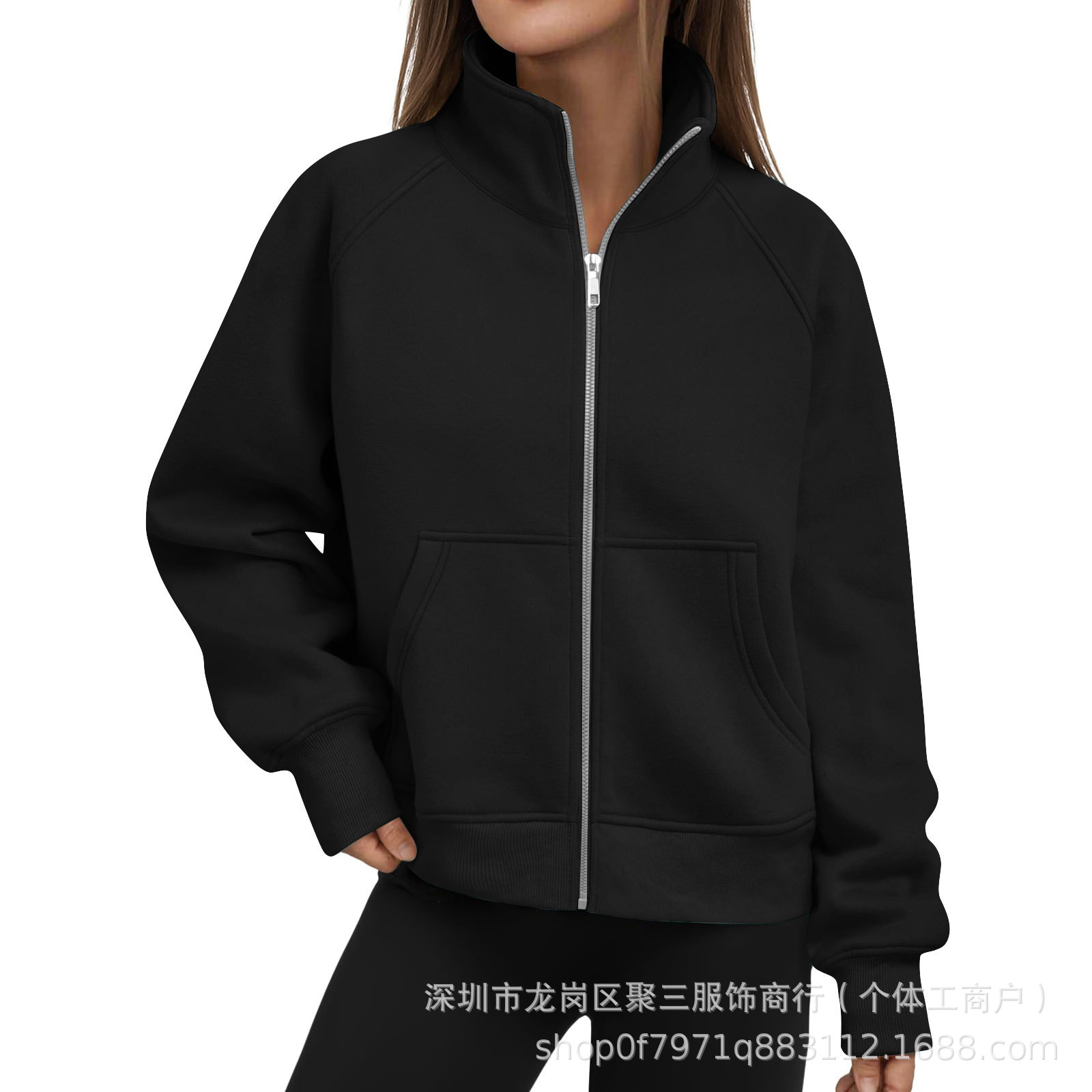 2025速卖通欧美外贸跨境女装亚马逊爆款长拉链短款立领拇指孔加绒