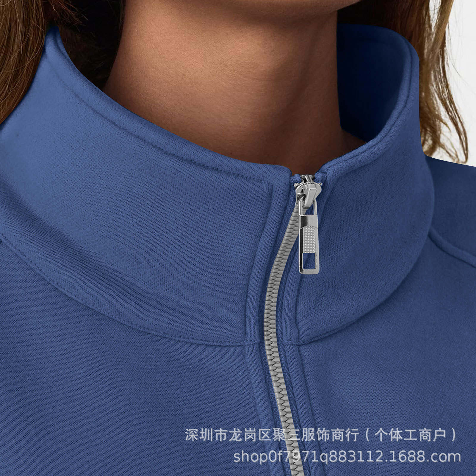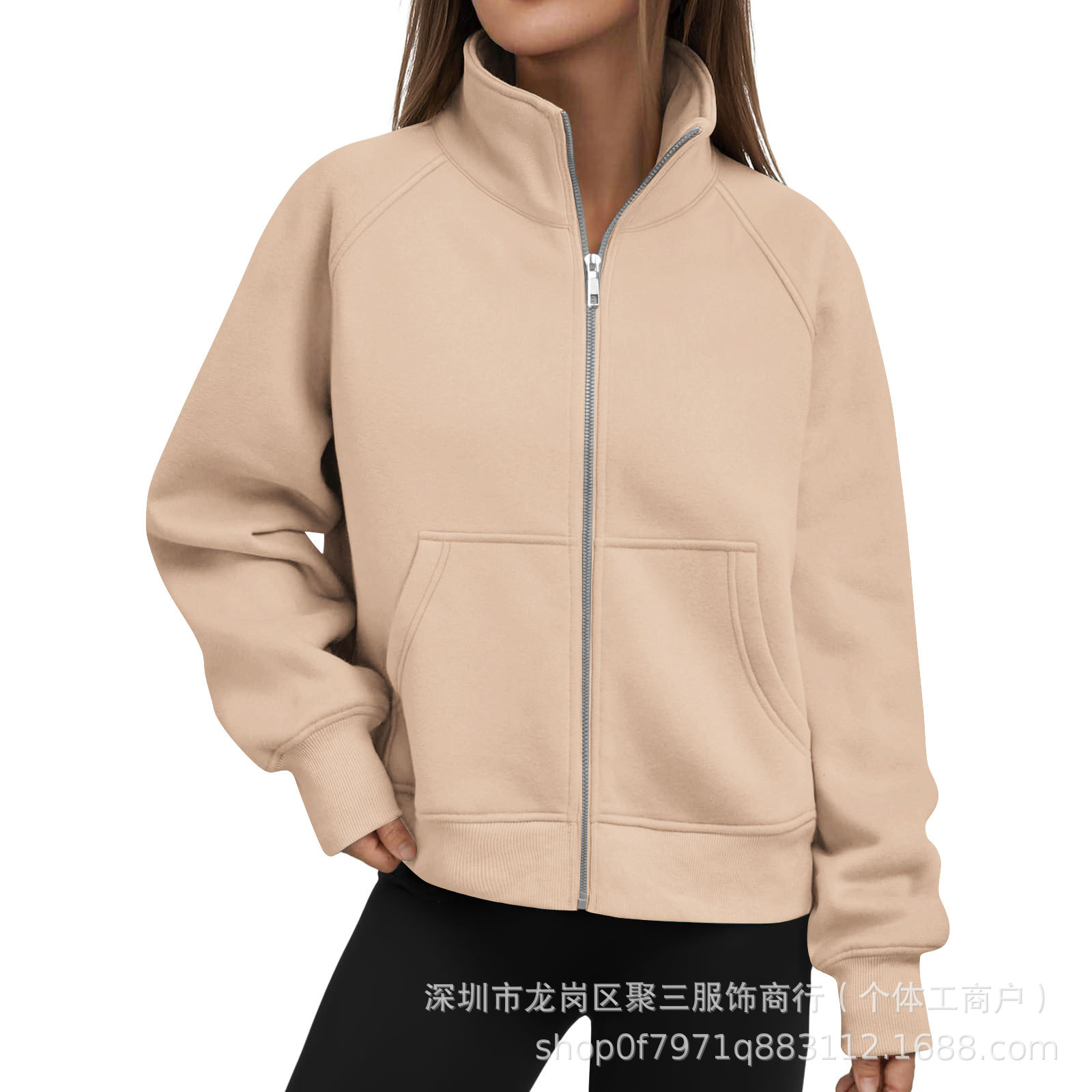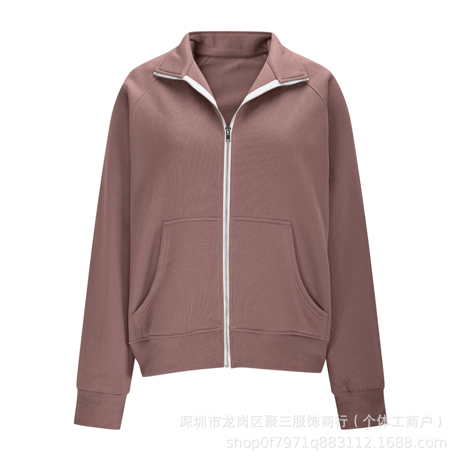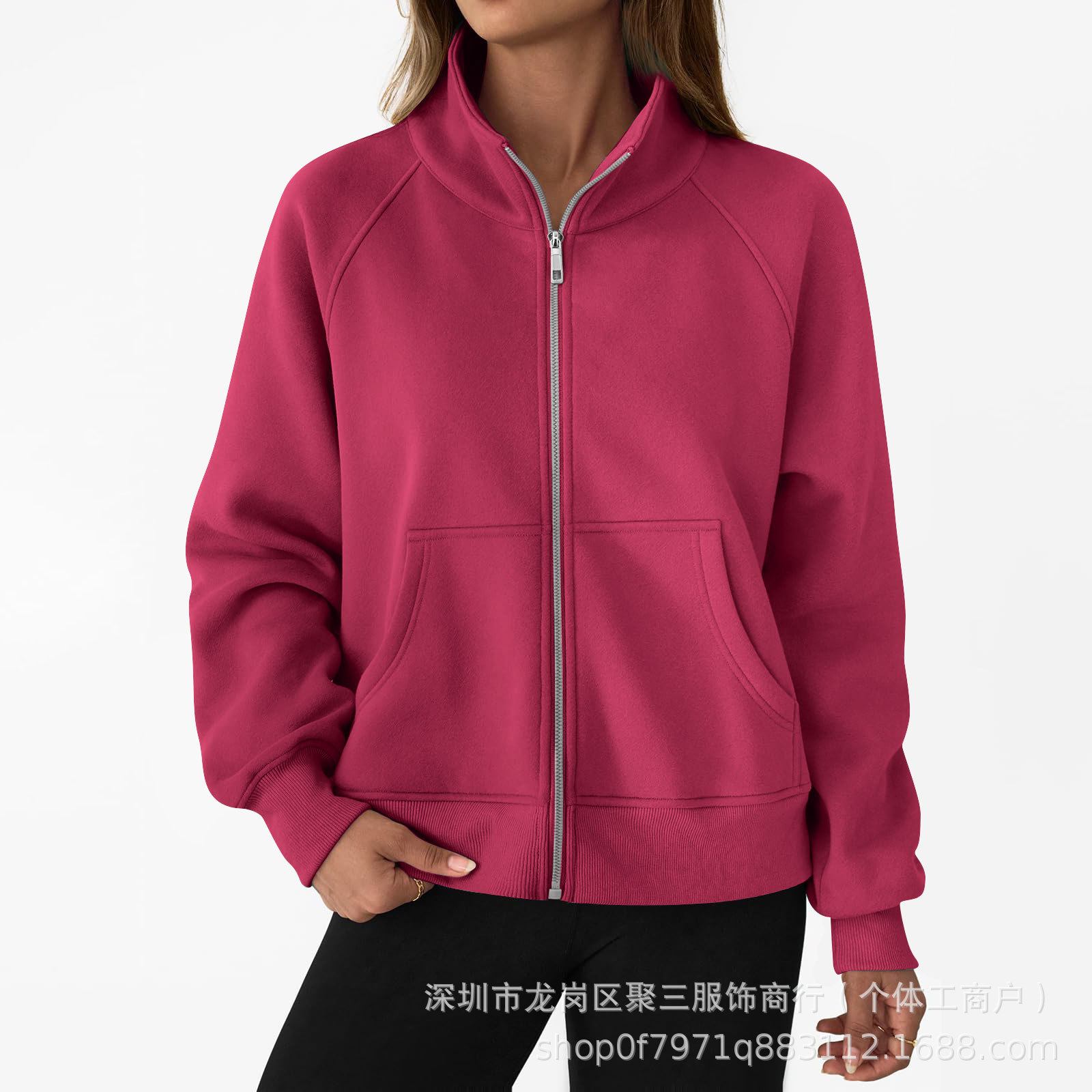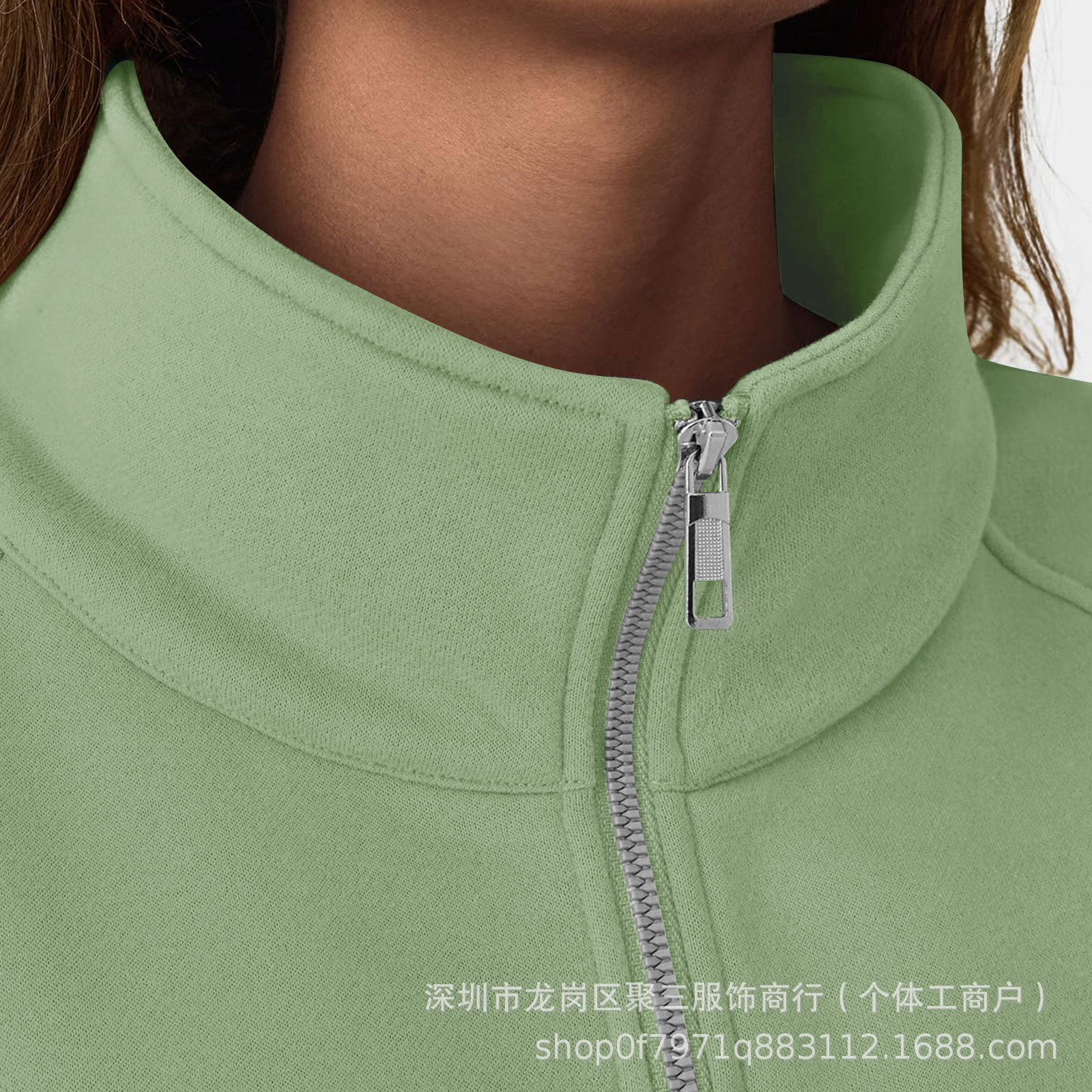 2025速卖通欧美外贸跨境女装亚马逊爆款长拉链短款立领拇指孔加绒