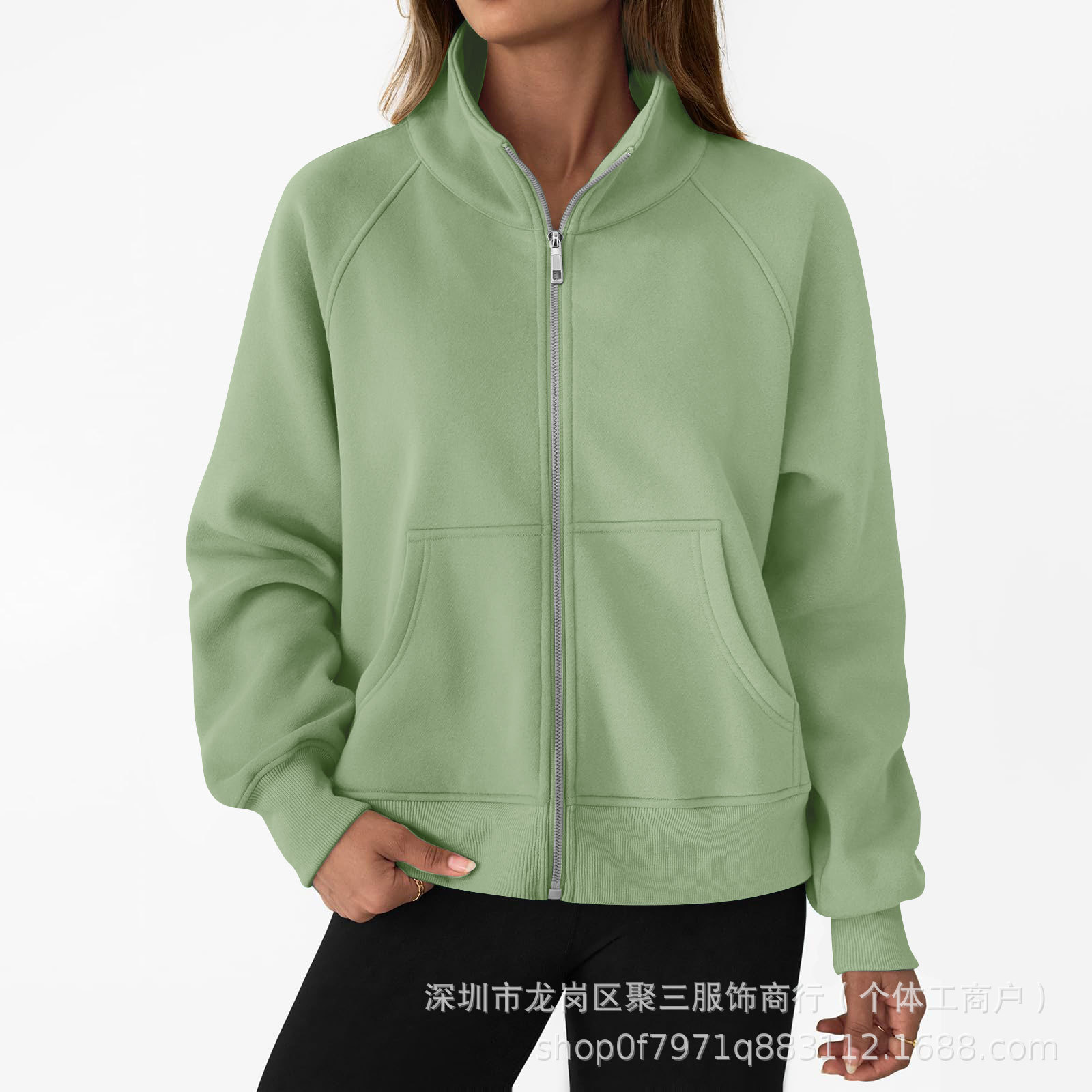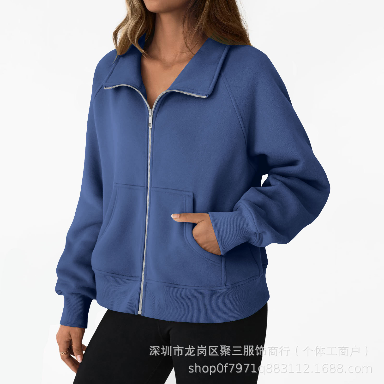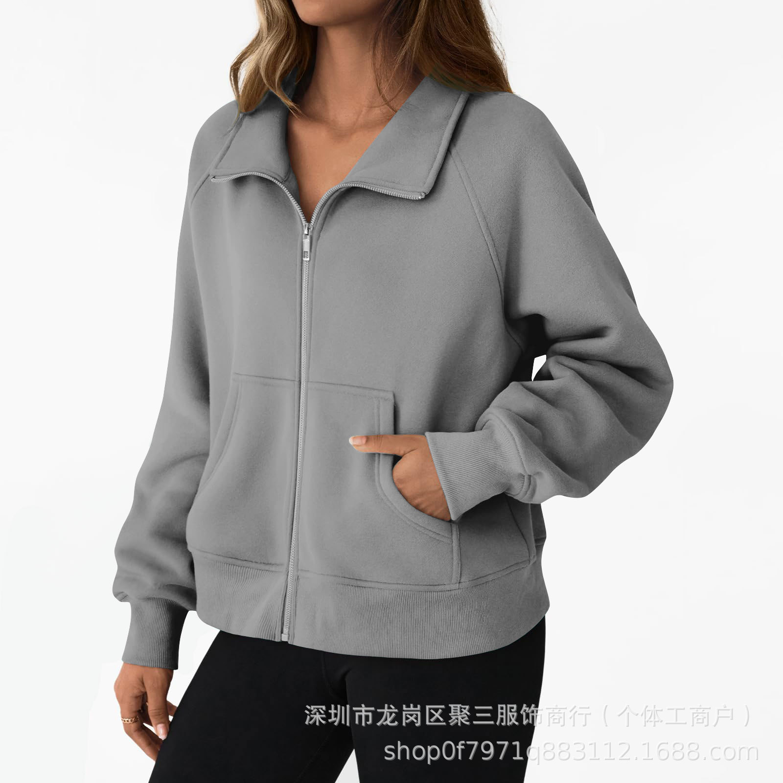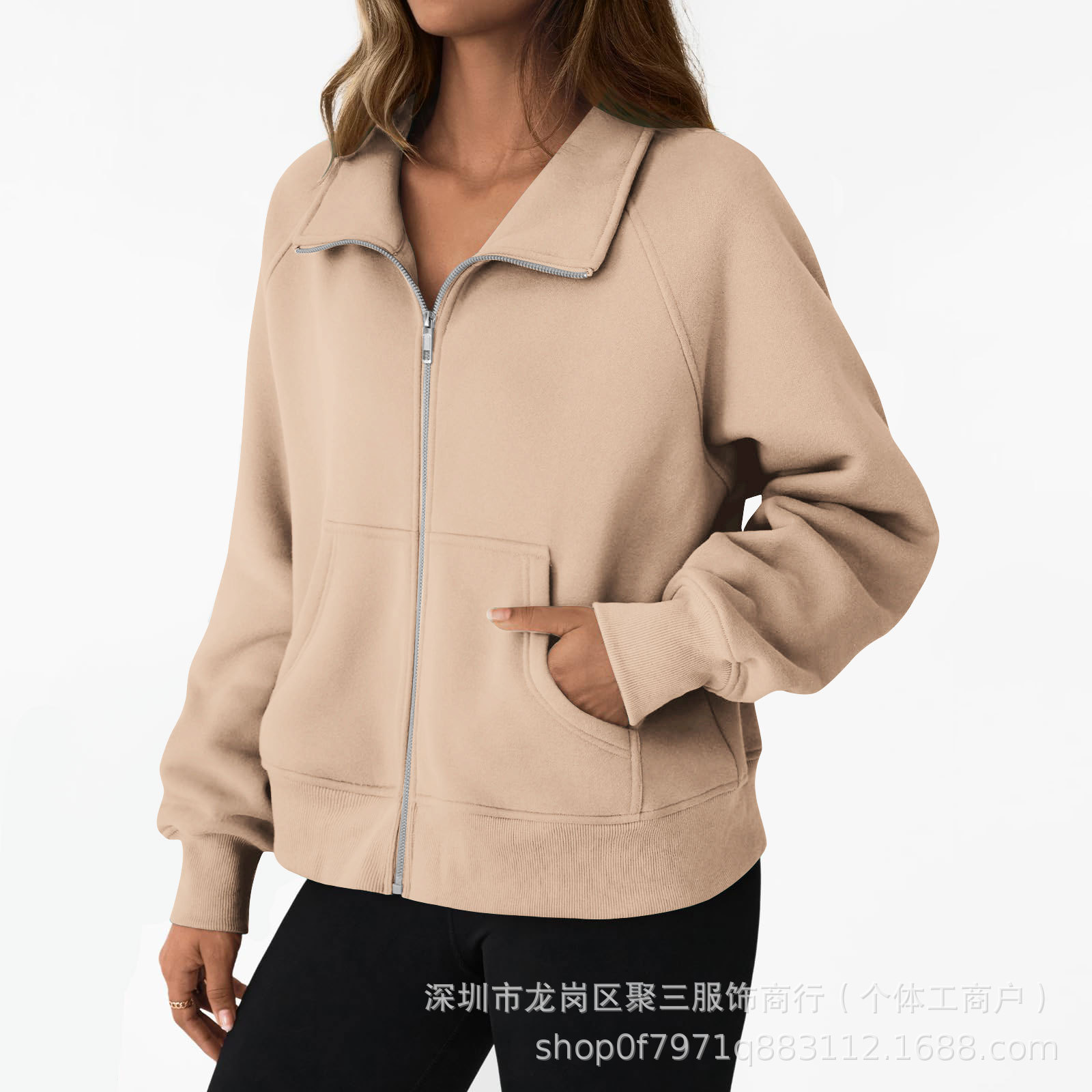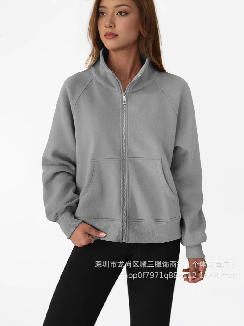 2025速卖通欧美外贸跨境女装亚马逊爆款长拉链短款立领拇指孔加绒