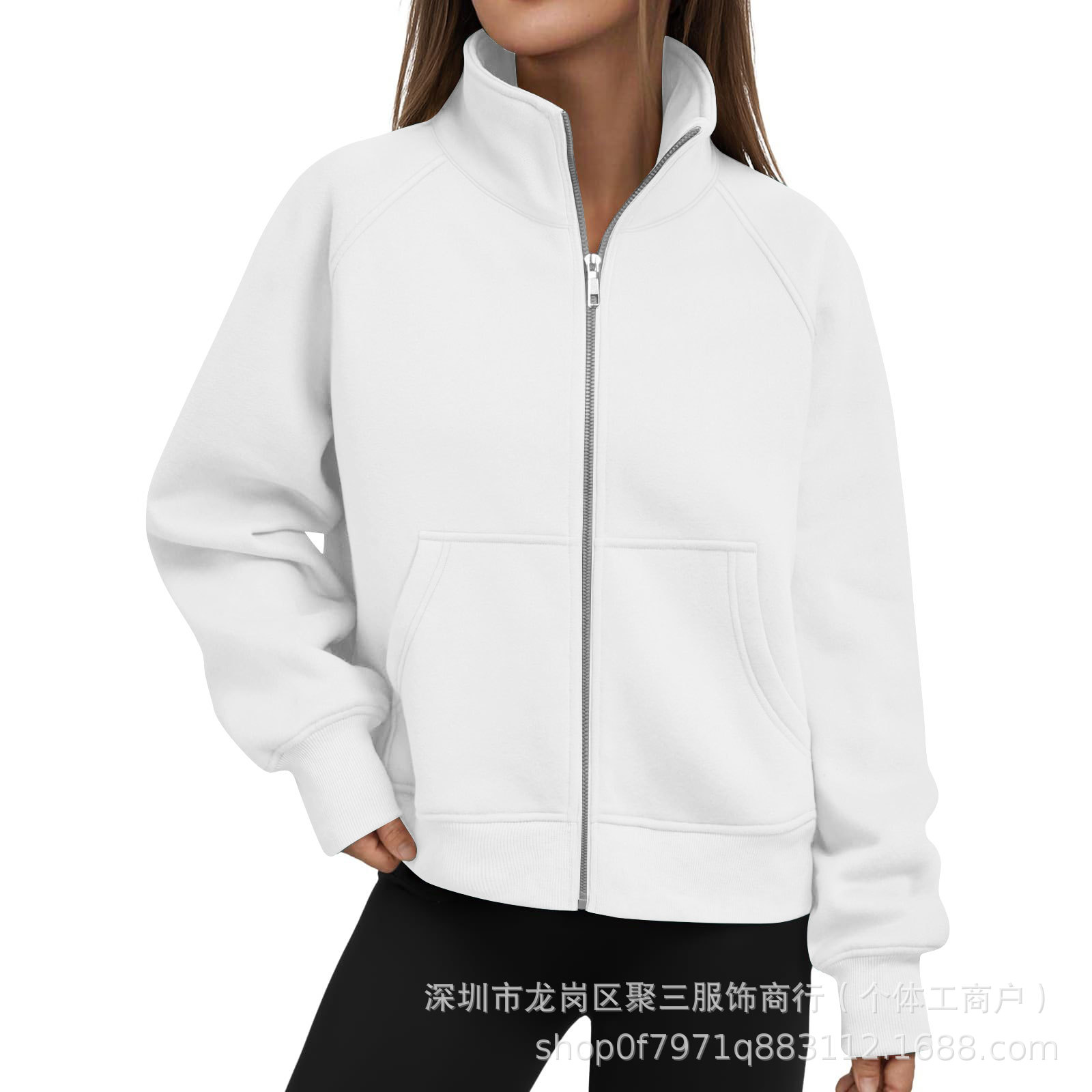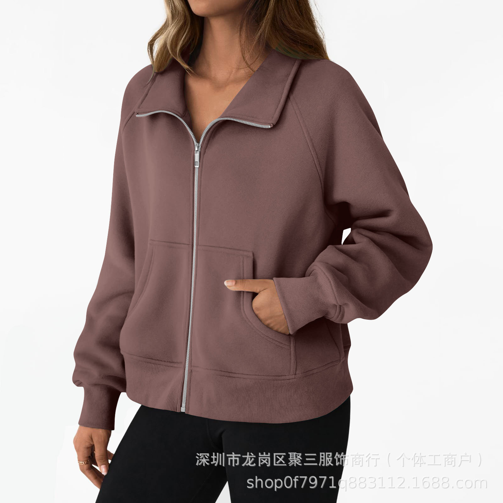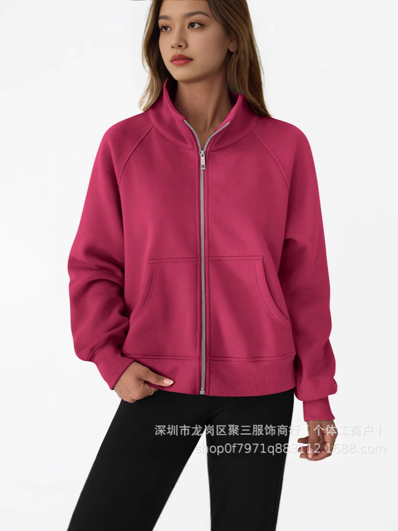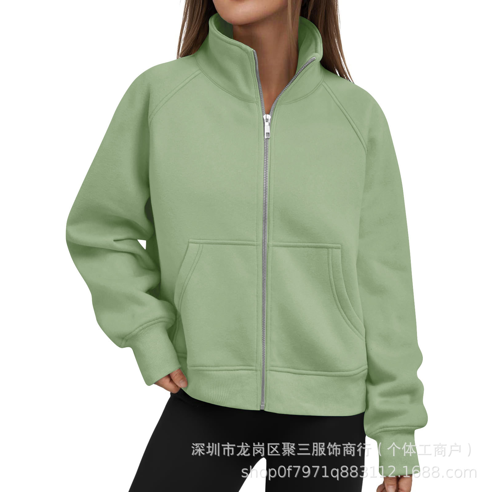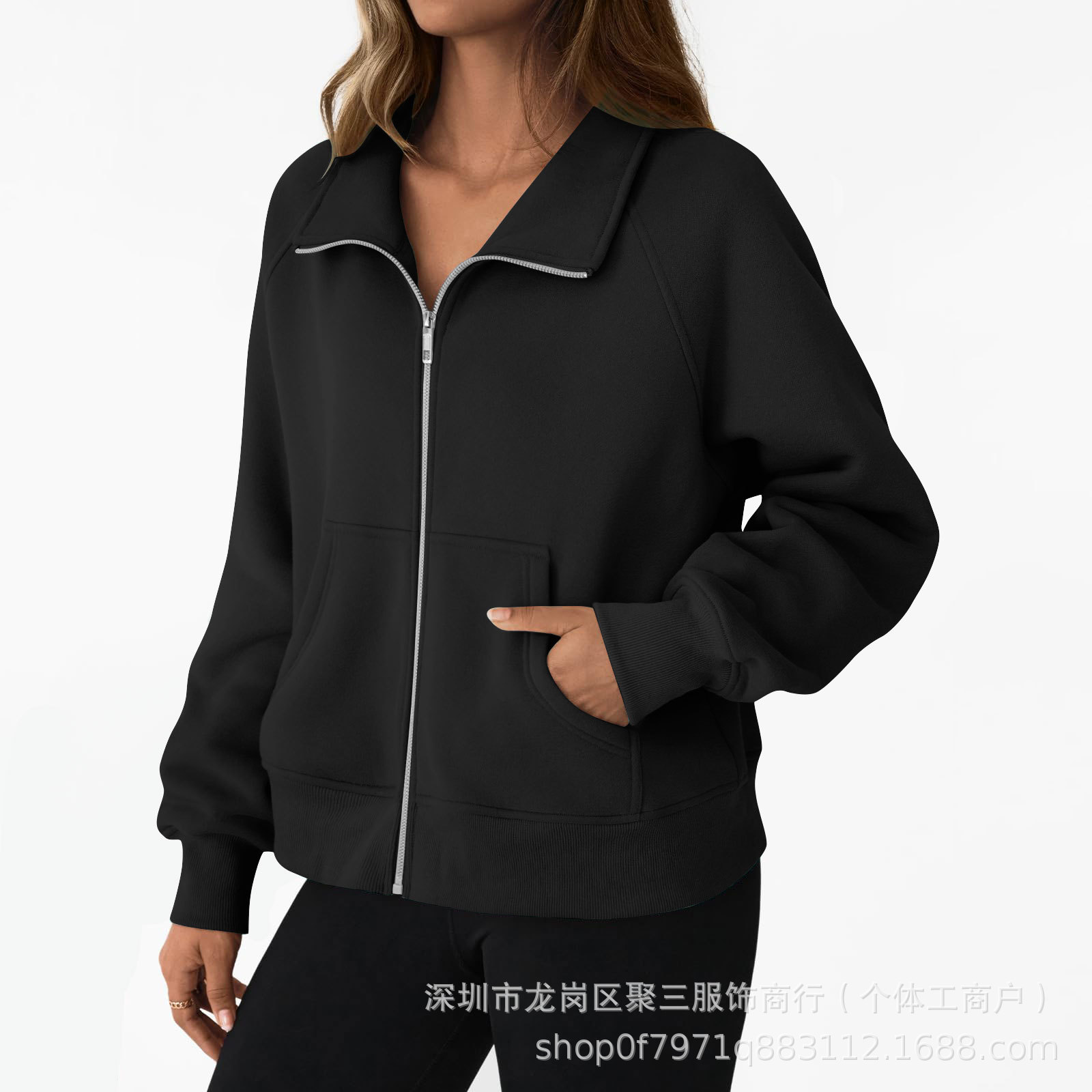 2025速卖通欧美外贸跨境女装亚马逊爆款长拉链短款立领拇指孔加绒