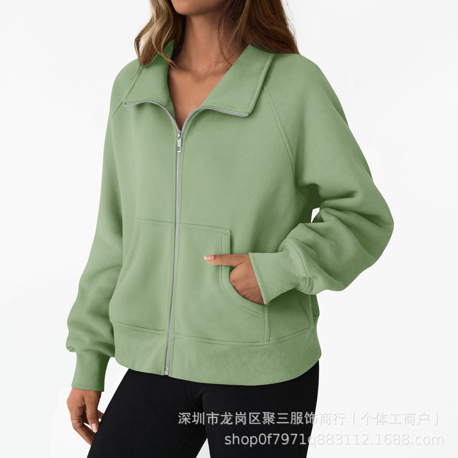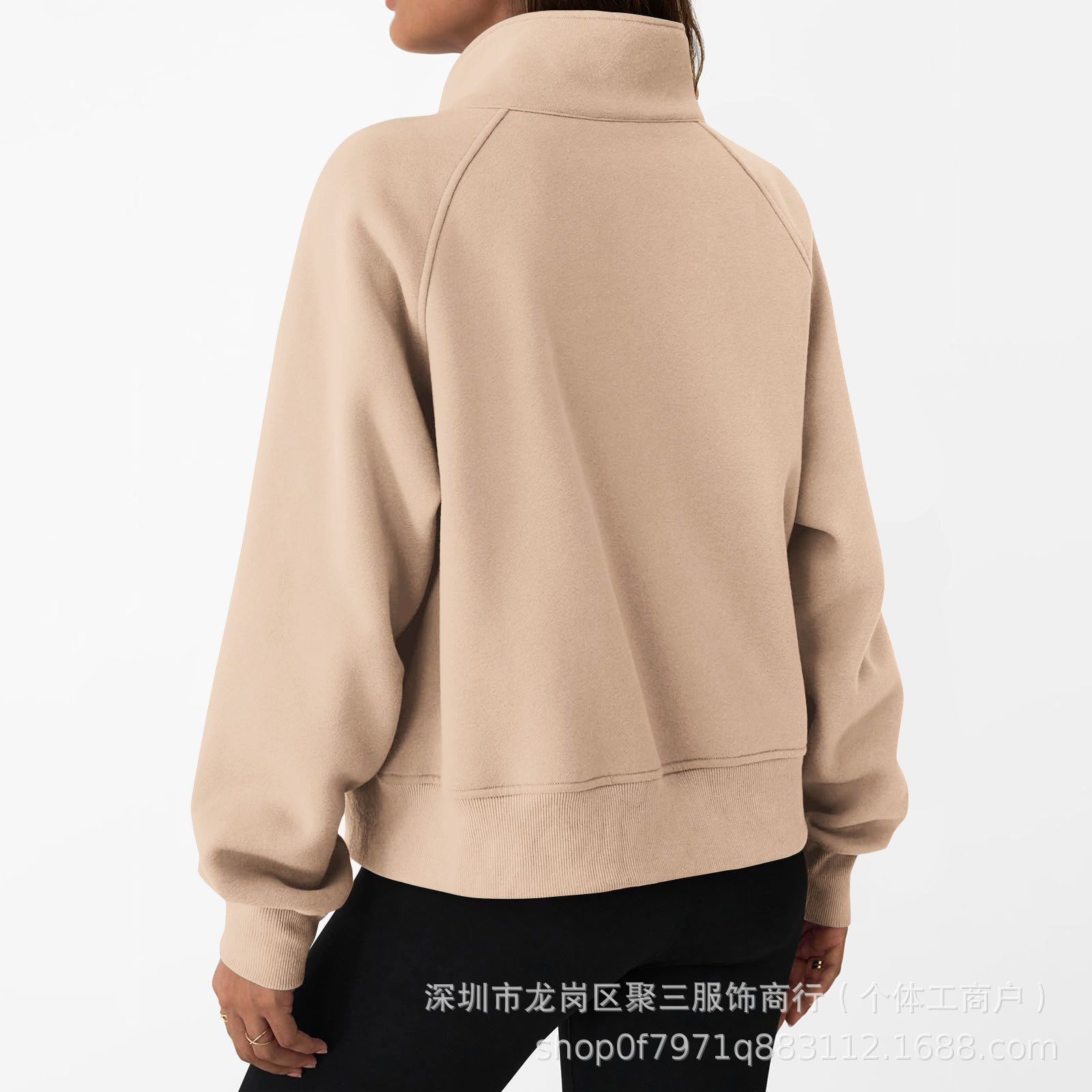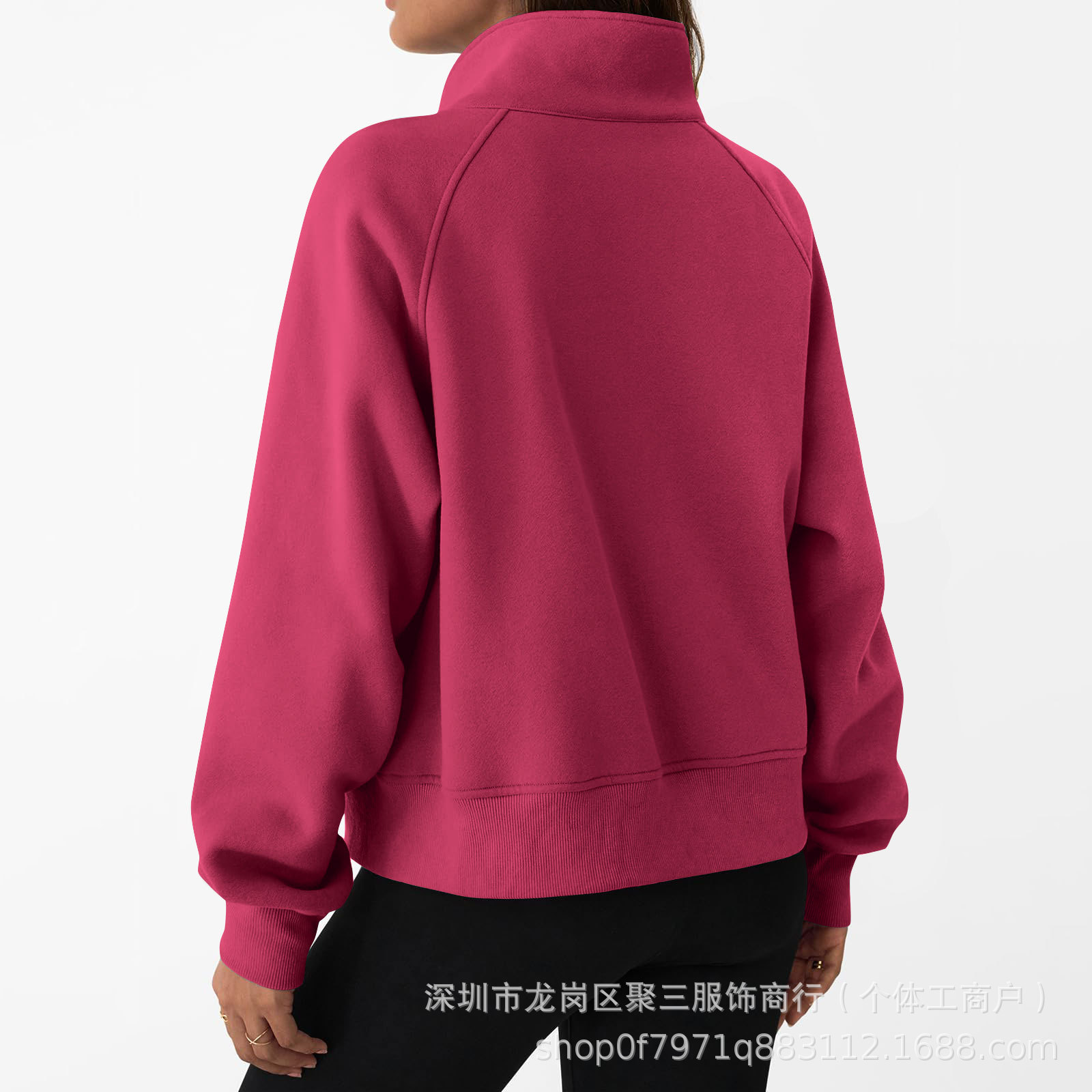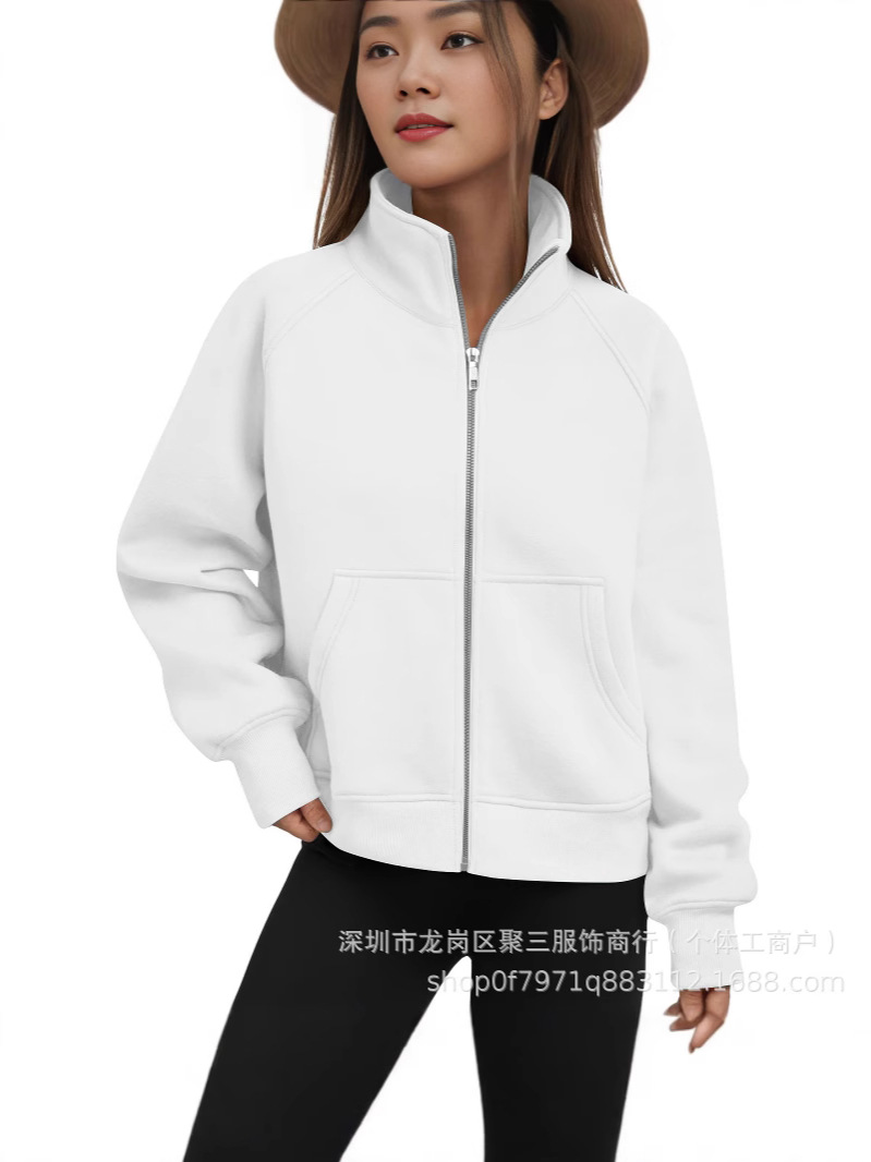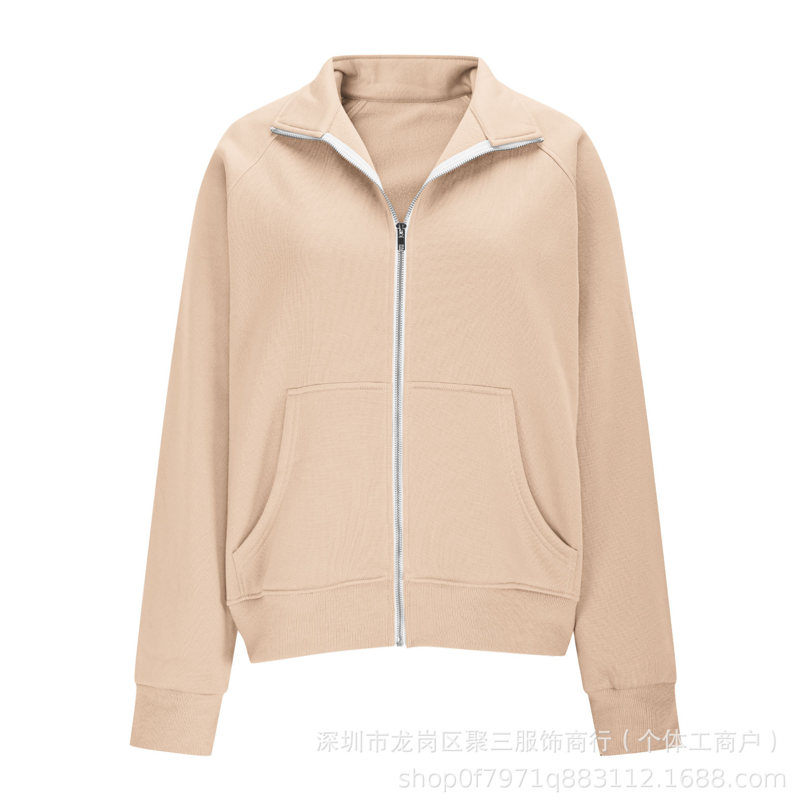 2025速卖通欧美外贸跨境女装亚马逊爆款长拉链短款立领拇指孔加绒