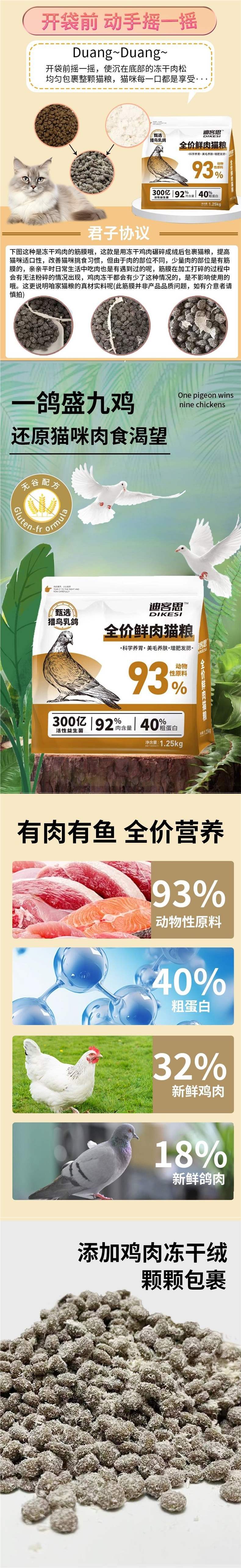 Формула голубя с 40% белком, пятизерновой королевской и шестизерновой пищей.; Формула из 40% белка голубиного мяса, беззерновое свежее мясо, двойное зерно; (40% белка) мясная голубиная формула, беззерновая корма для кошек с свежим мясом