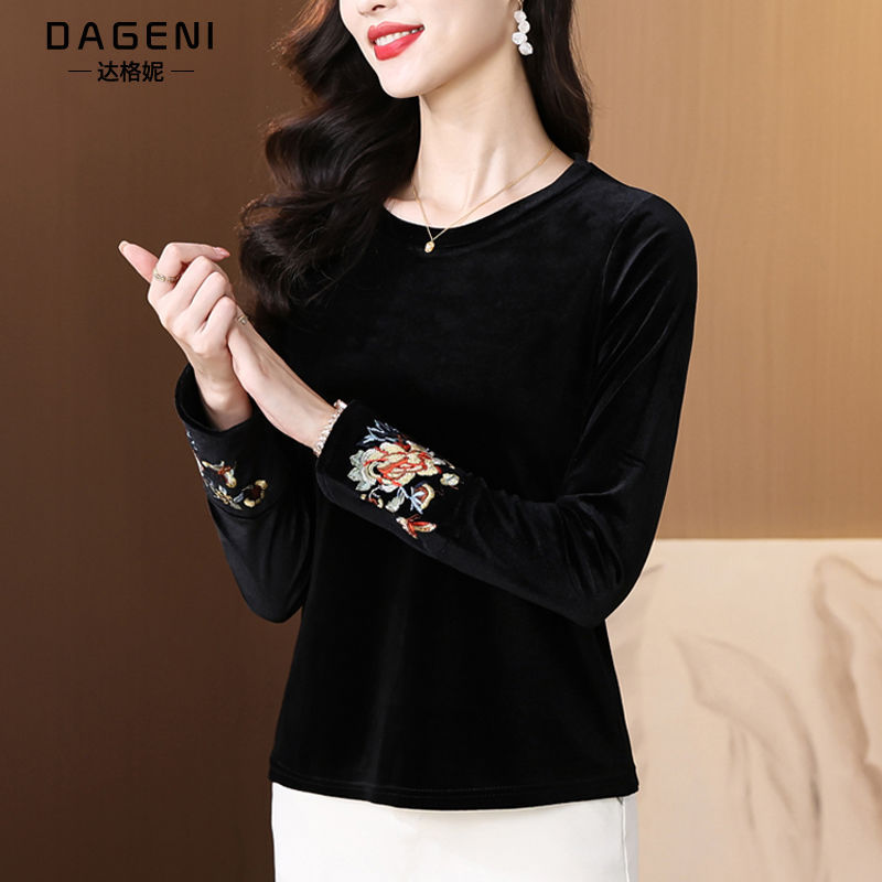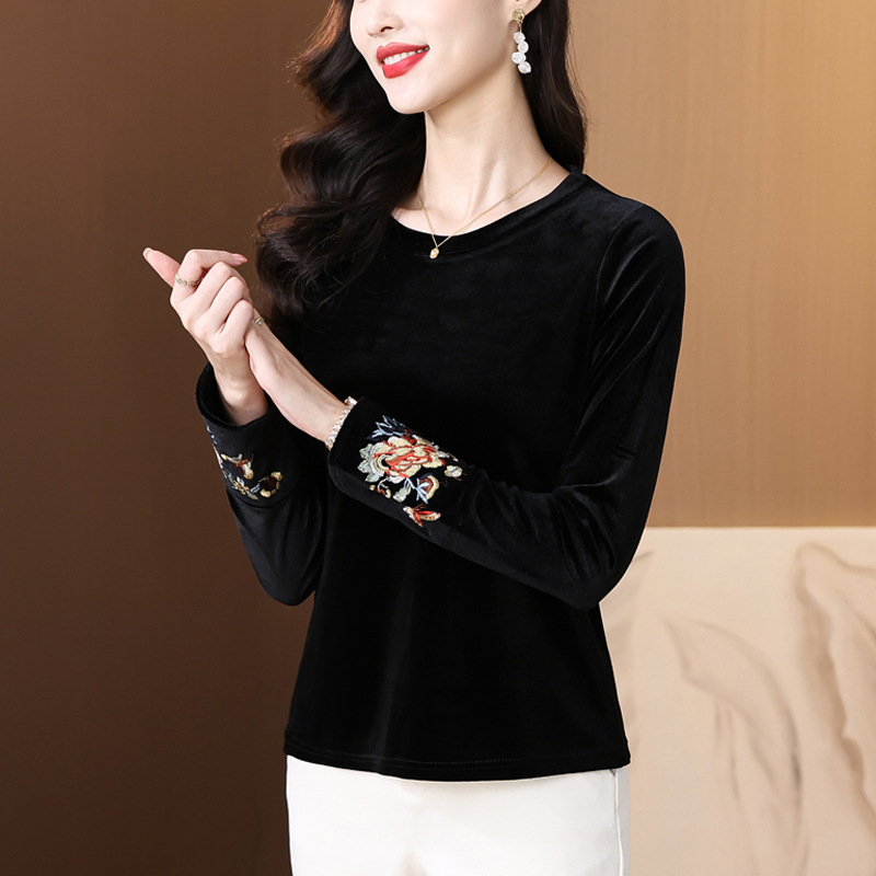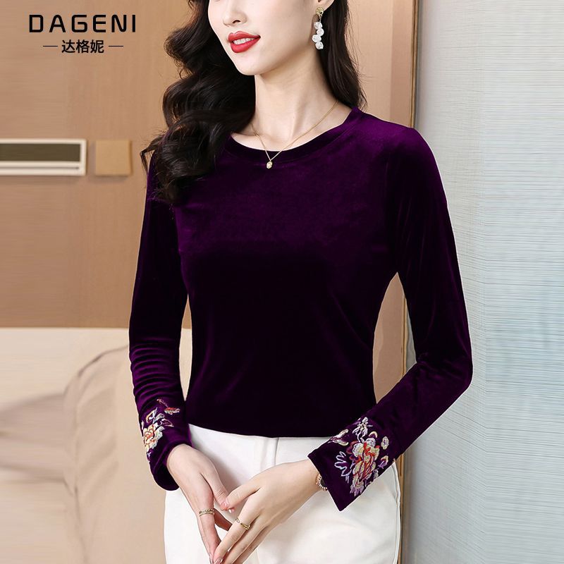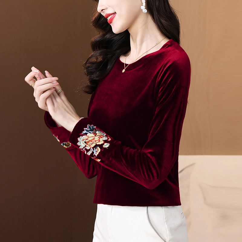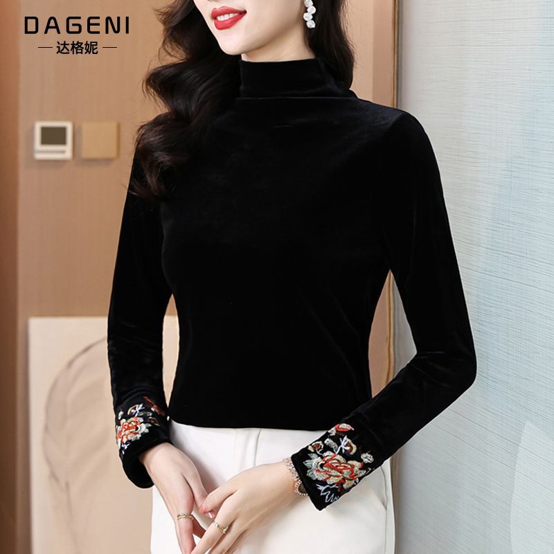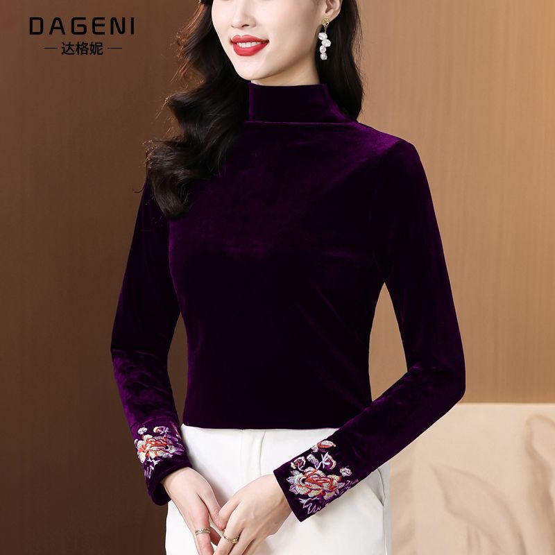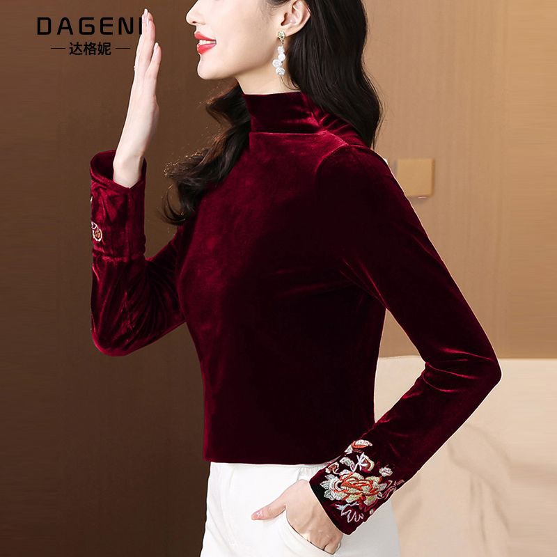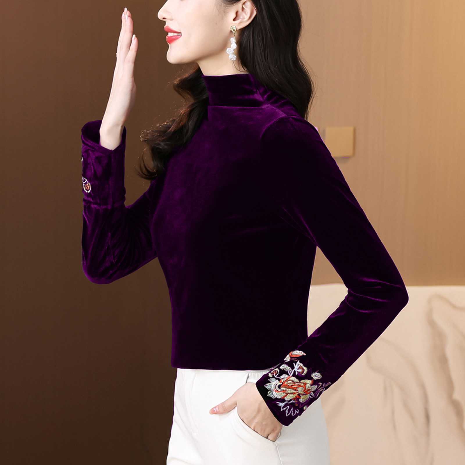 Новая рубашка с длинными рукавами в китайском стиле, простая и привлекательная, топ с длинными рукавами, новая бархатная базовая рубашка с высоким воротником осени и зимы 2024 года.