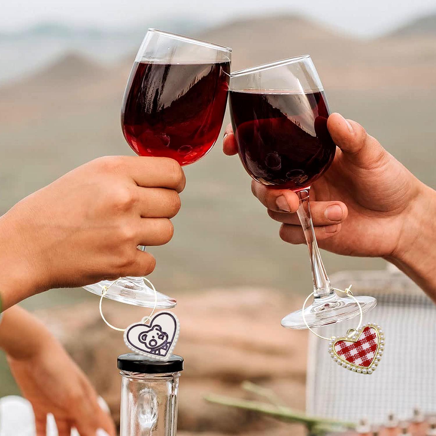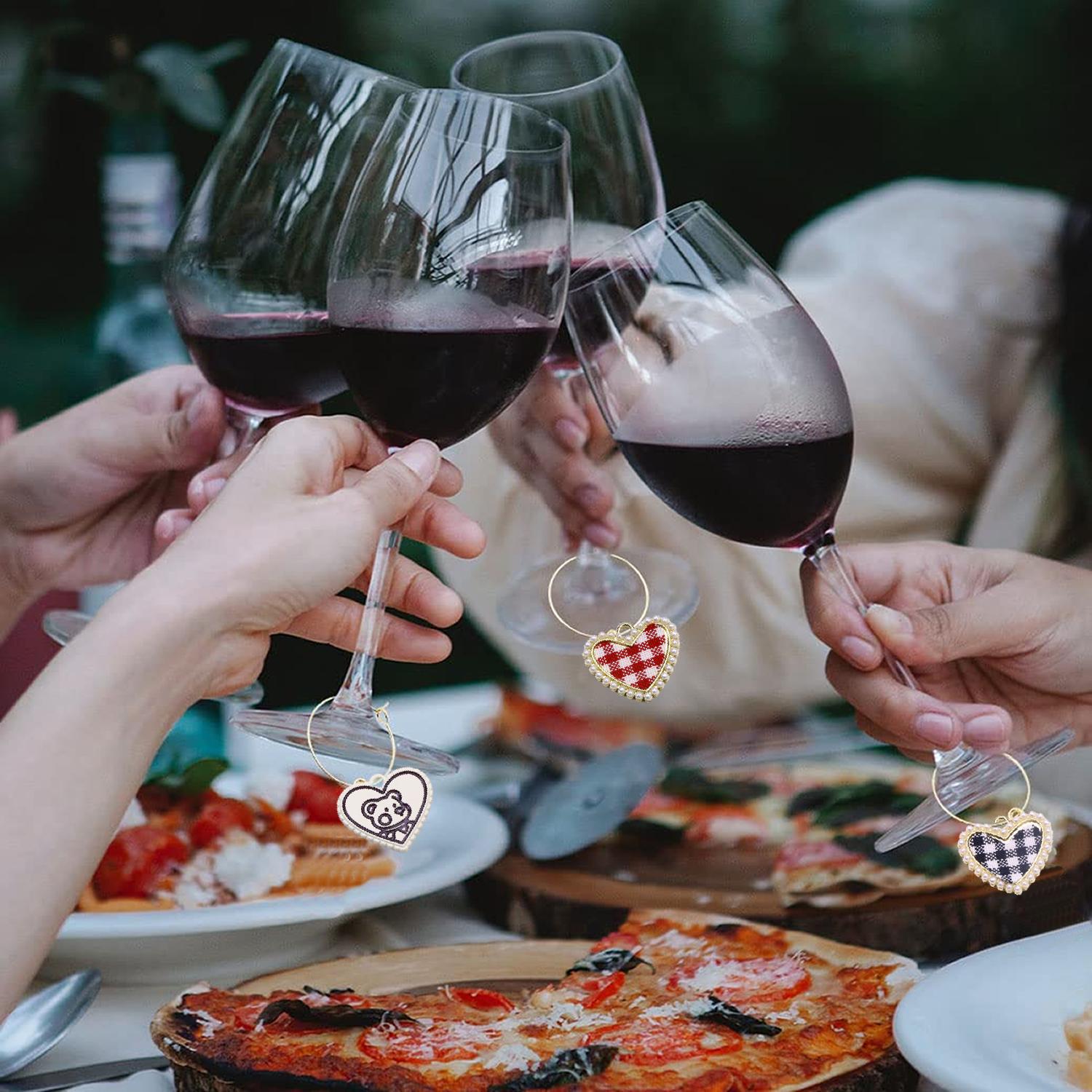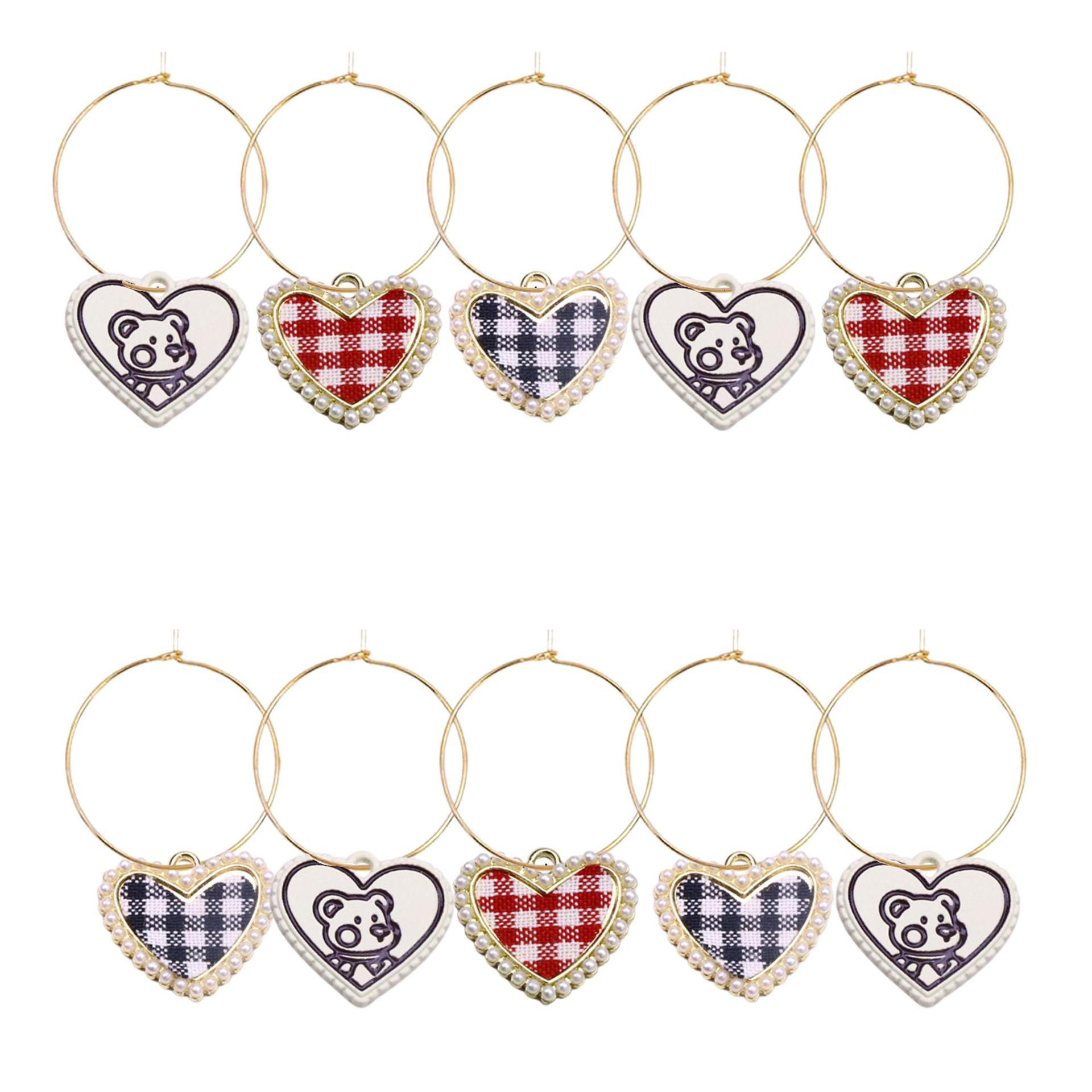 Набор подвесок для бокалов вина с мультяшным медведем, инкрустированным жемчугом, в клетчатой ткани, в стиле Etsy, для вечеринок.