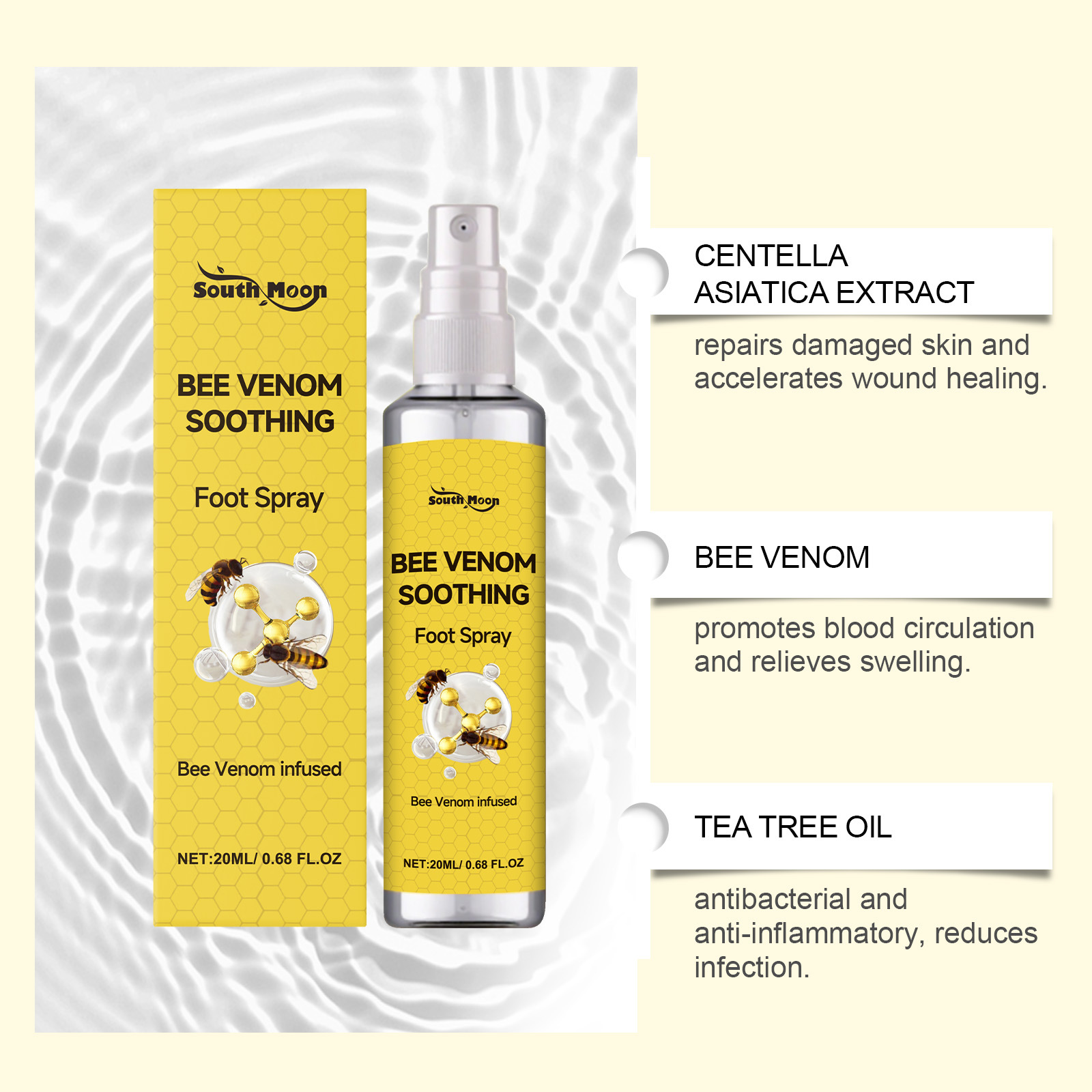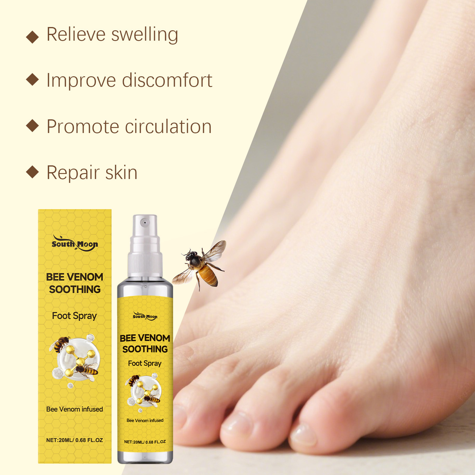 SOUTH MOON Спрей для ухода за ногами с пчелиным ядом Нежный уход за ногами Питательный увлажняющий спрей для ежедневного ухода