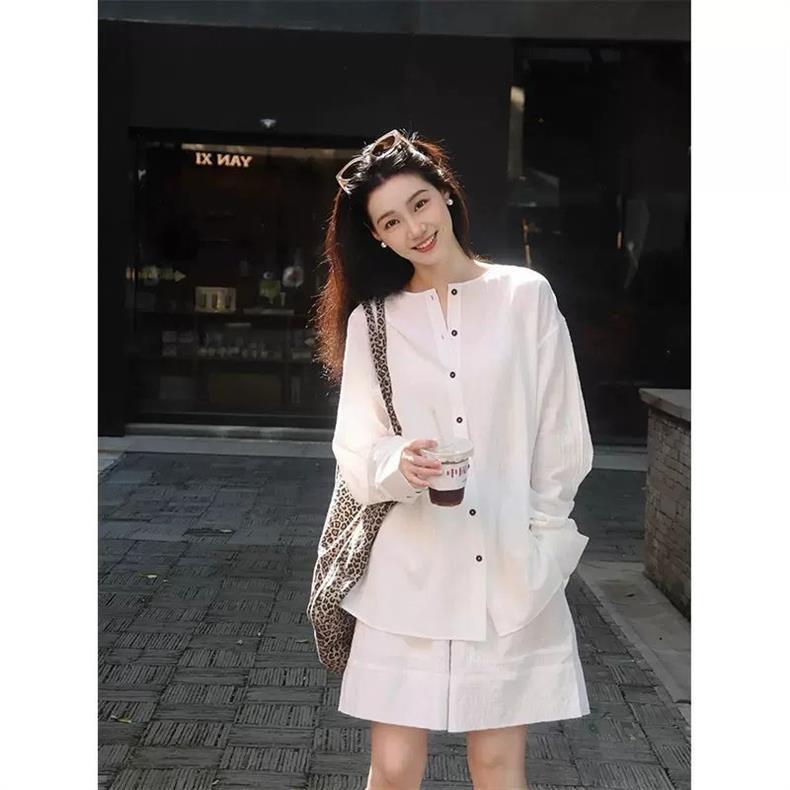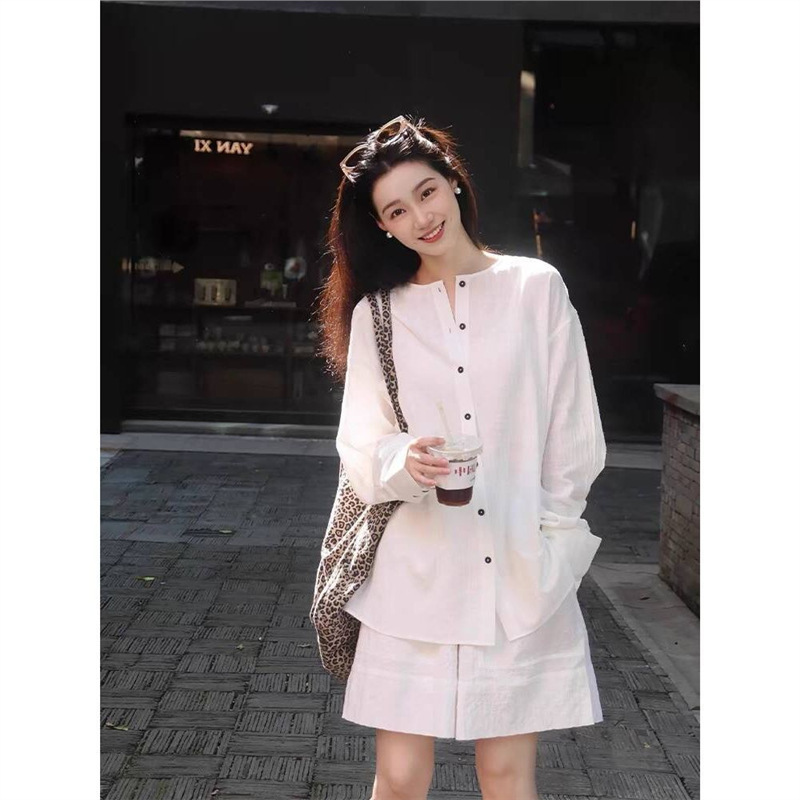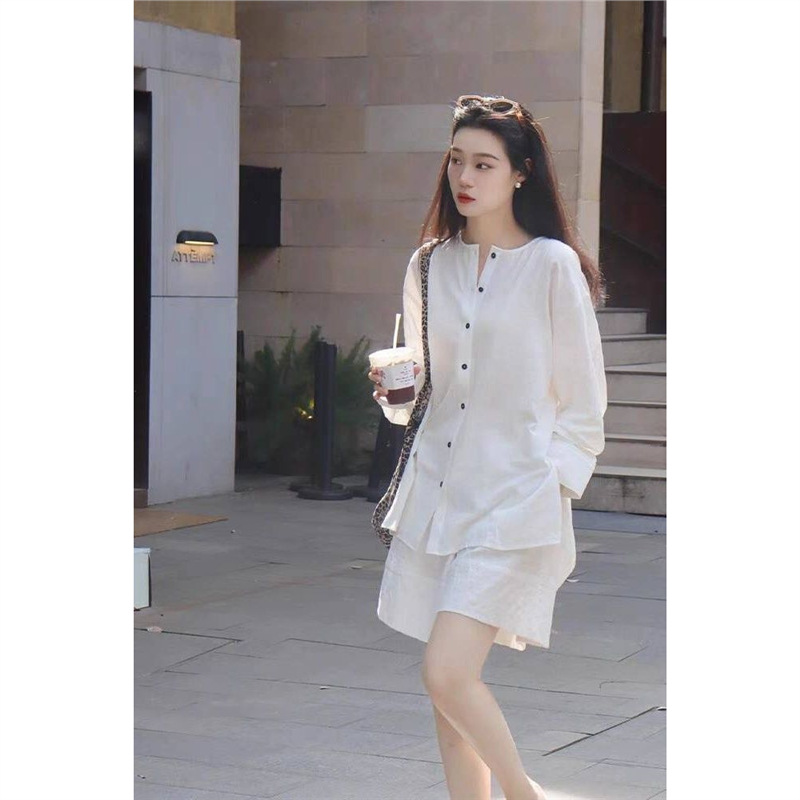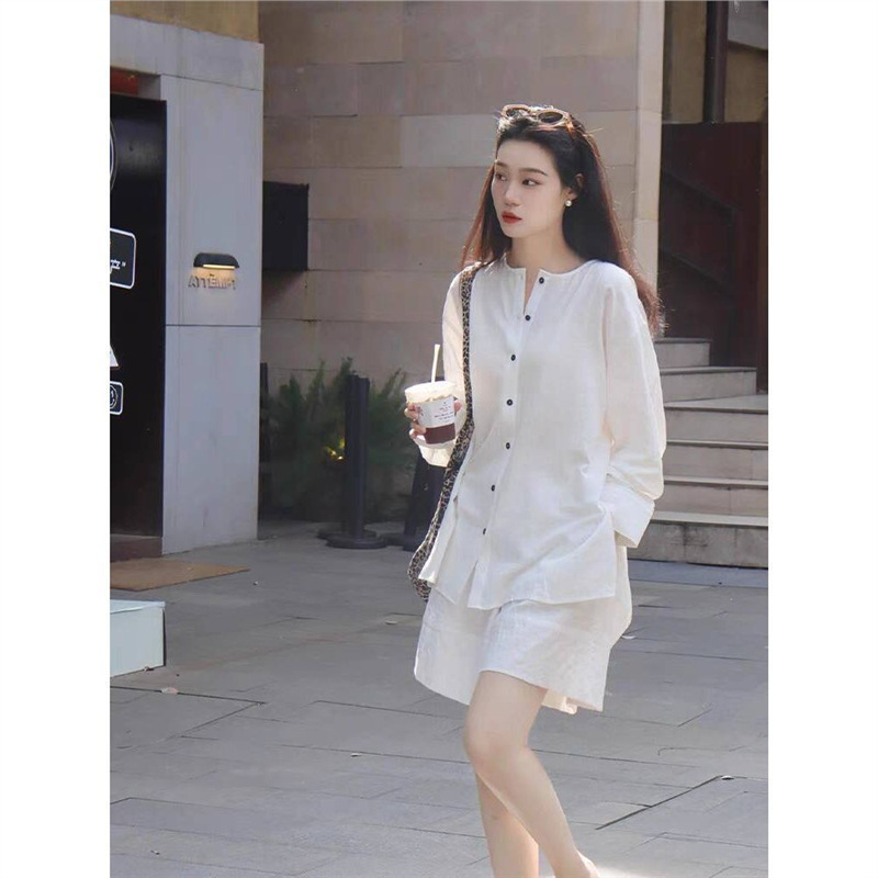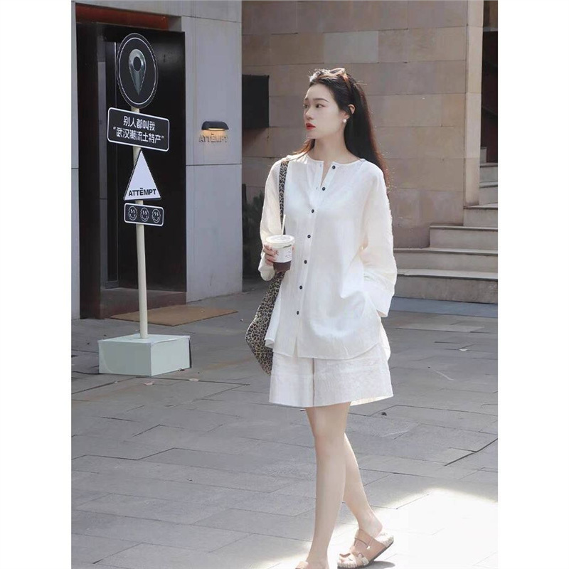 Летний костюм из хлопка и льна для женщин, модная новинка, элегантный, высококачественный, свободный крой, рубашка и шорты, комплект из двух предметов