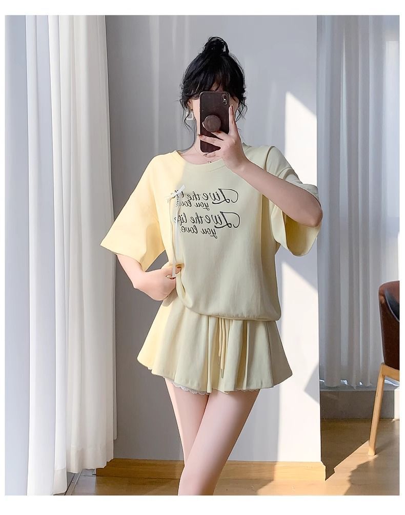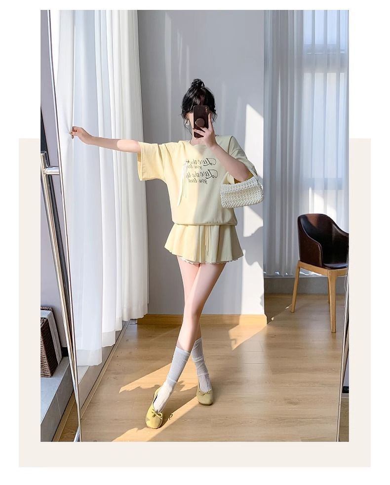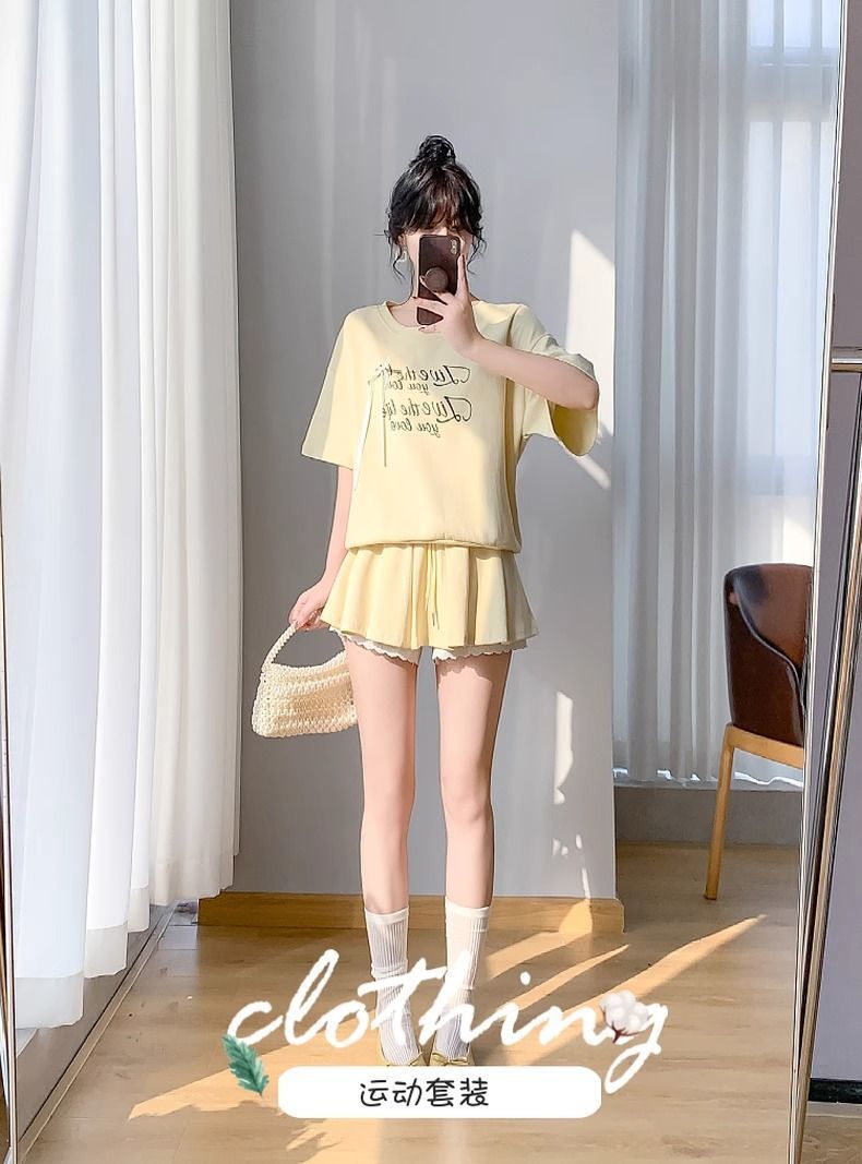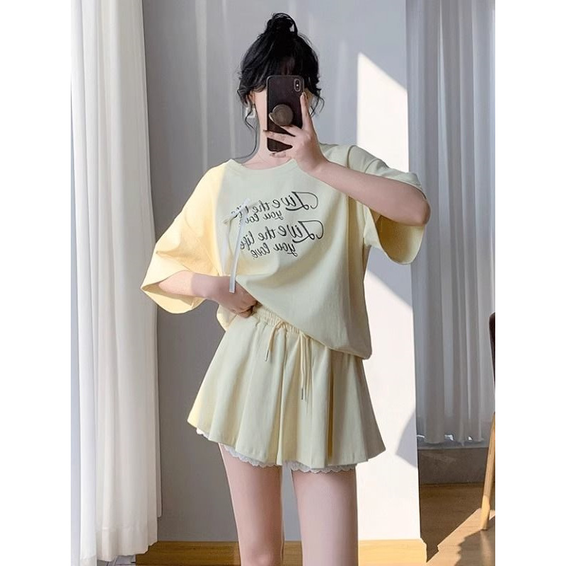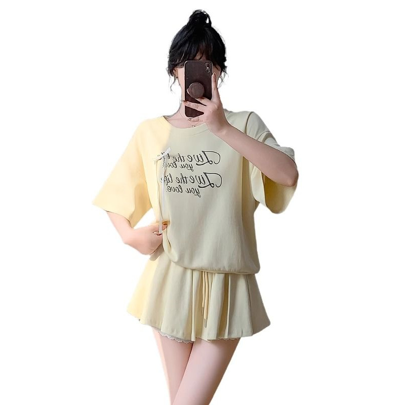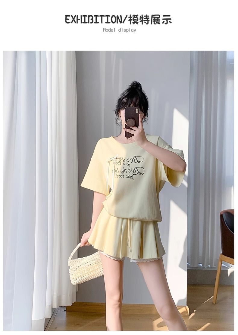 Плюс размер fat mm 150kg футболка с короткими рукавами и французским бантом, женская летняя плиссированная юбка трапециевидной формы с высокой талией, комплект из двух предметов