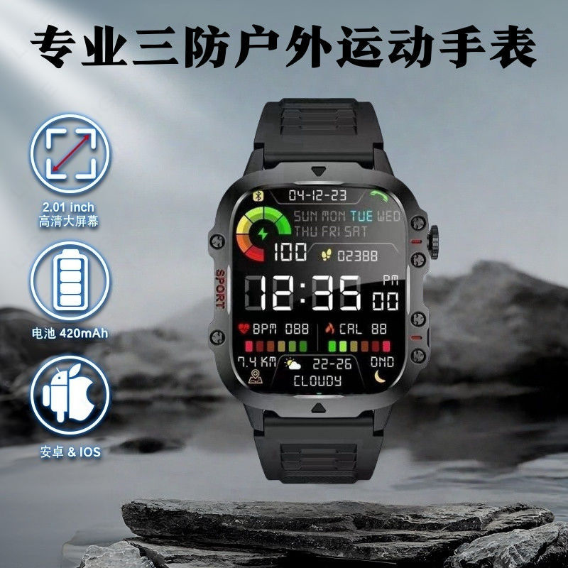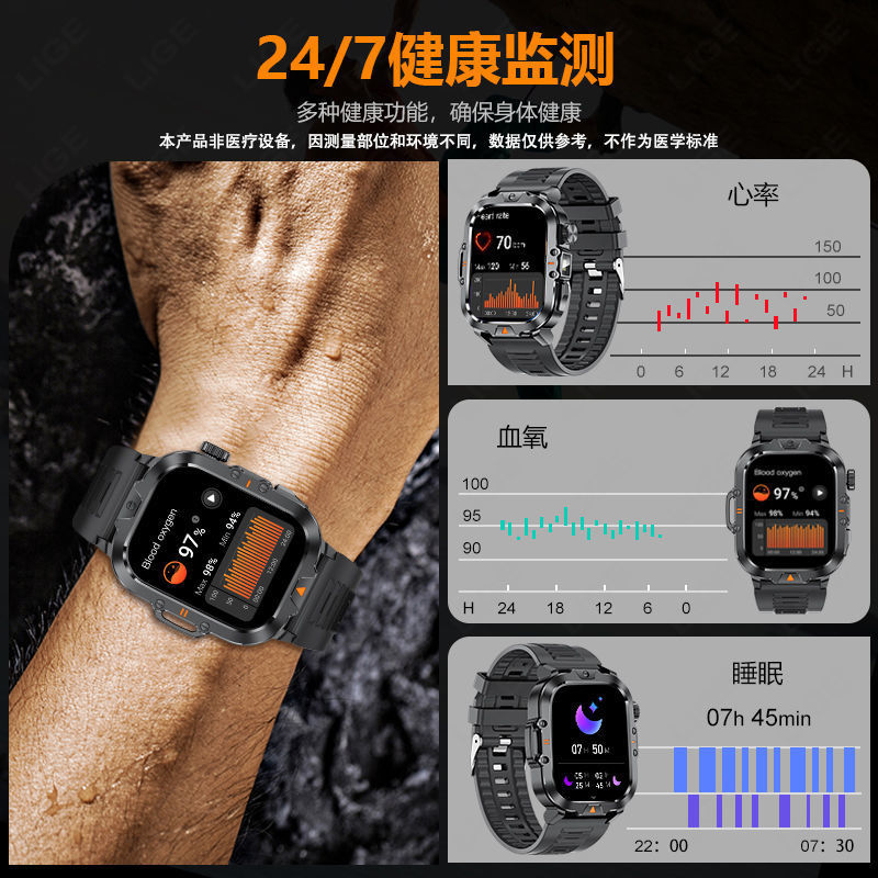 Профессиональные уличные трехзащитные умные спортивные часы круглосуточно контролируют частоту сердечных сокращений и уровень кислорода в крови, водонепроницаемый большой экран для альпинизма и бега.