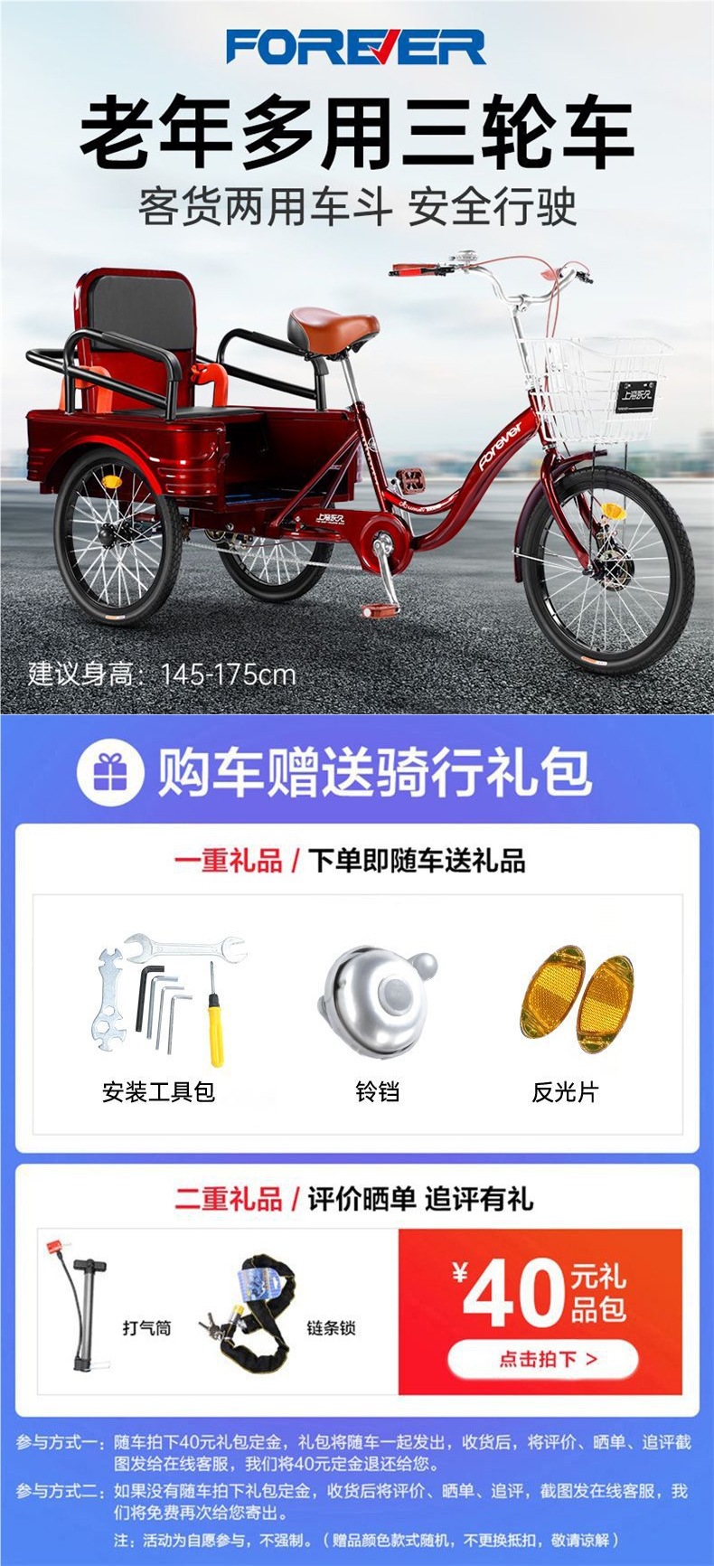 Постоянный трехколесный велосипед для пожилых людей, педальный трехколесный велосипед, велосипед для взрослых