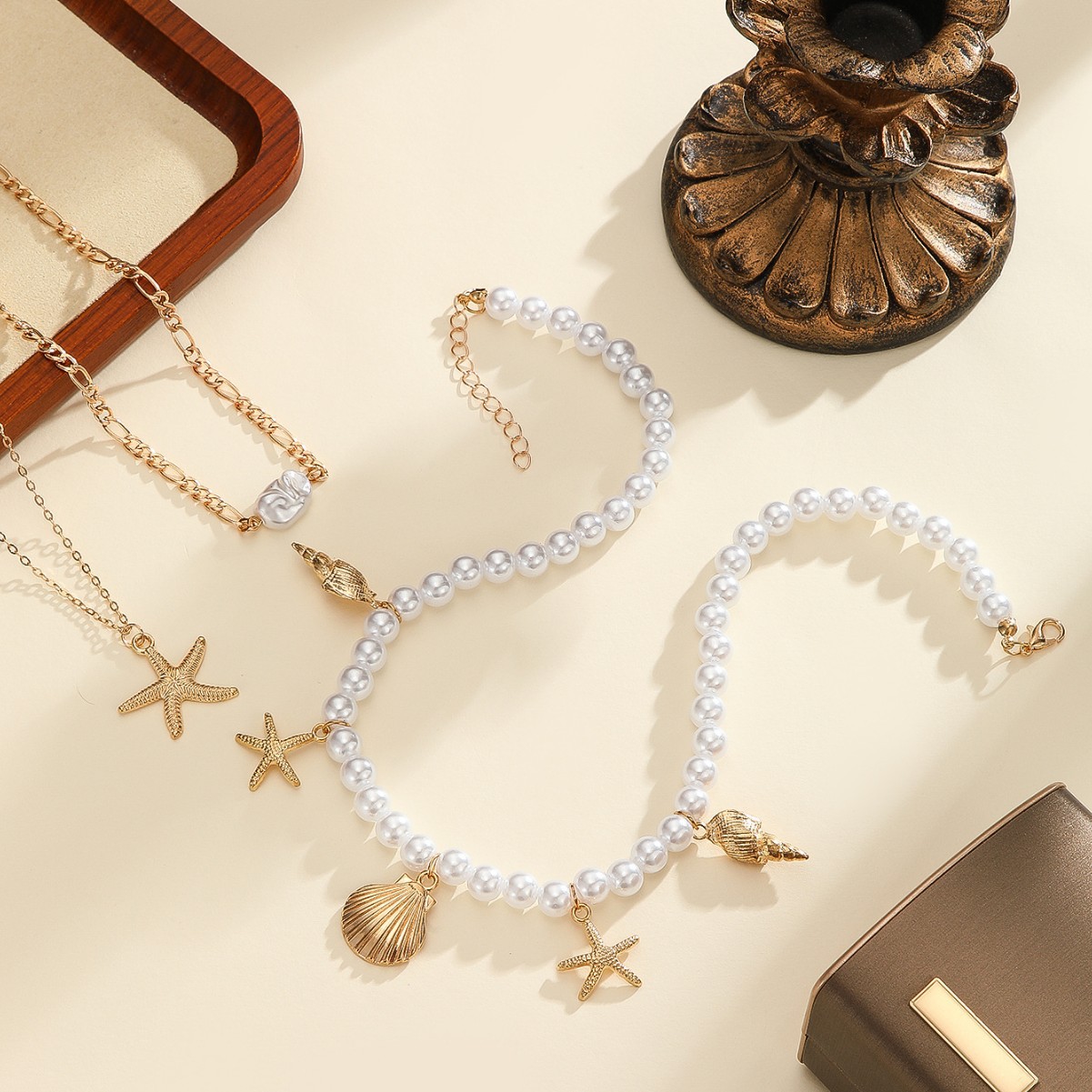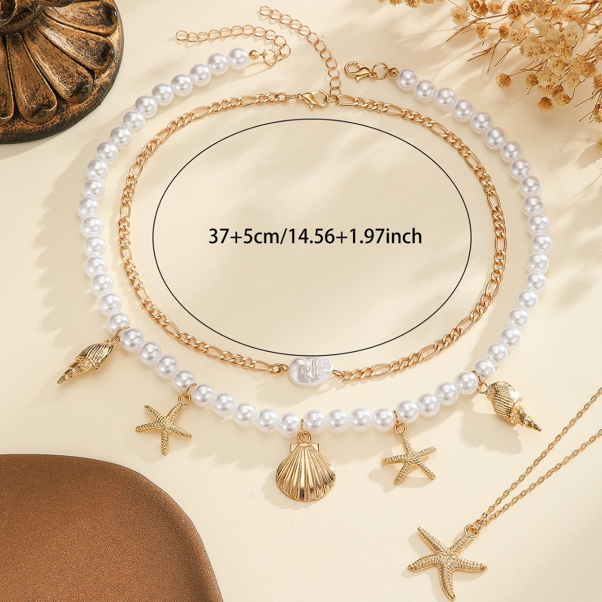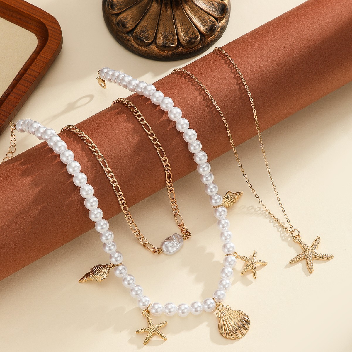 Европейский и американский трансграничный набор ожерелий с жемчугом, морскими звездами, ракушками и раковинами, многослойное ожерелье в стиле пляжного отдыха для женщин