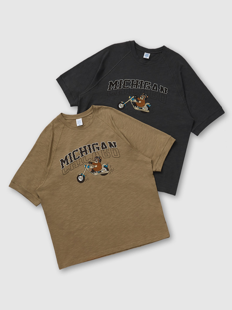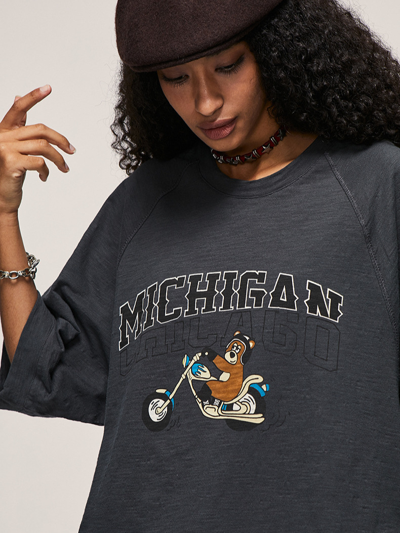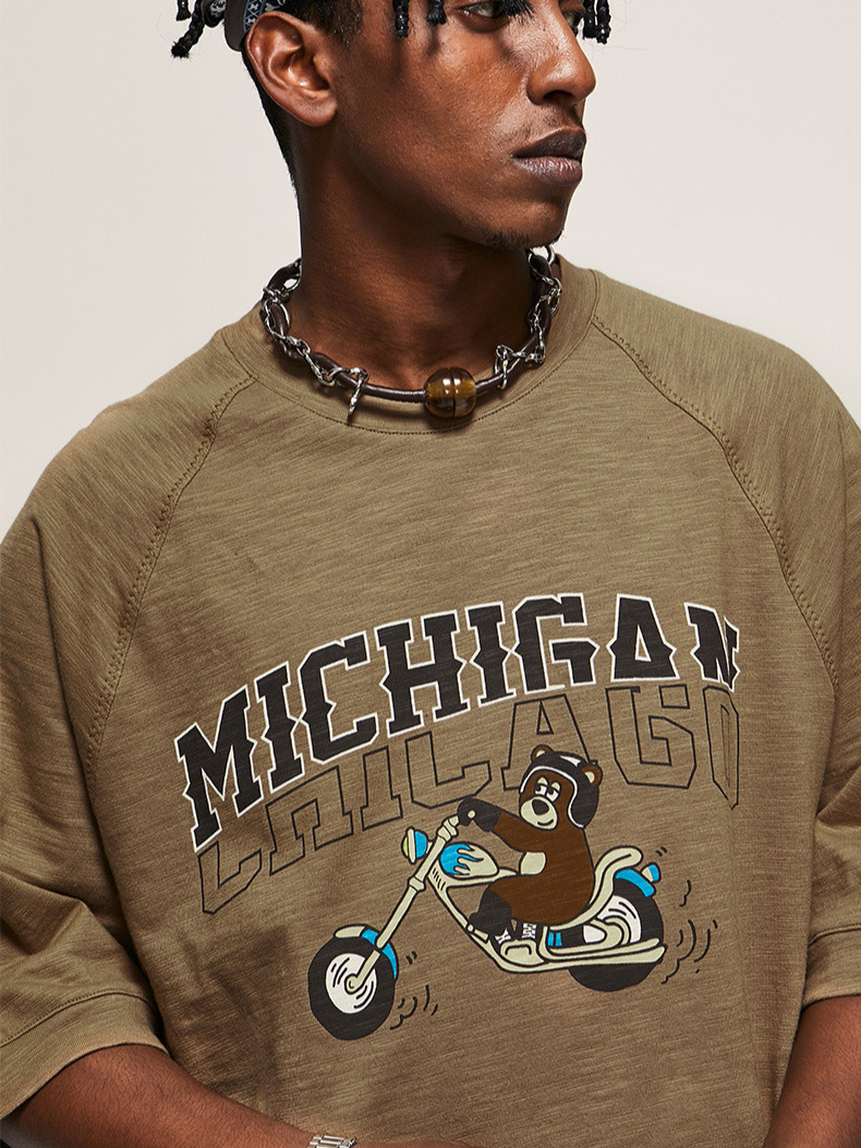 Кастомизация Цзие Чжан | Мужская футболка с винтажным принтом медведя на мотоцикле из бамбукового хлопка, доступны различные дизайны для персонализации.