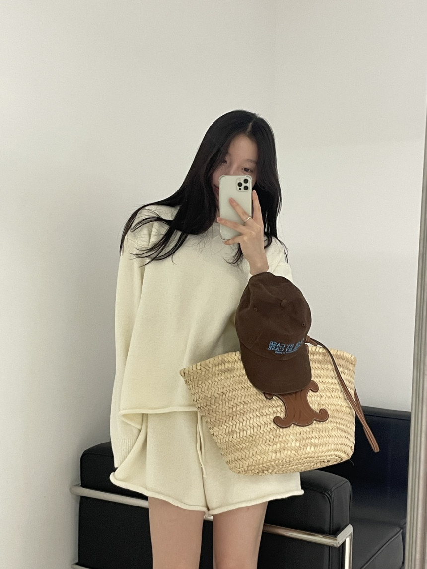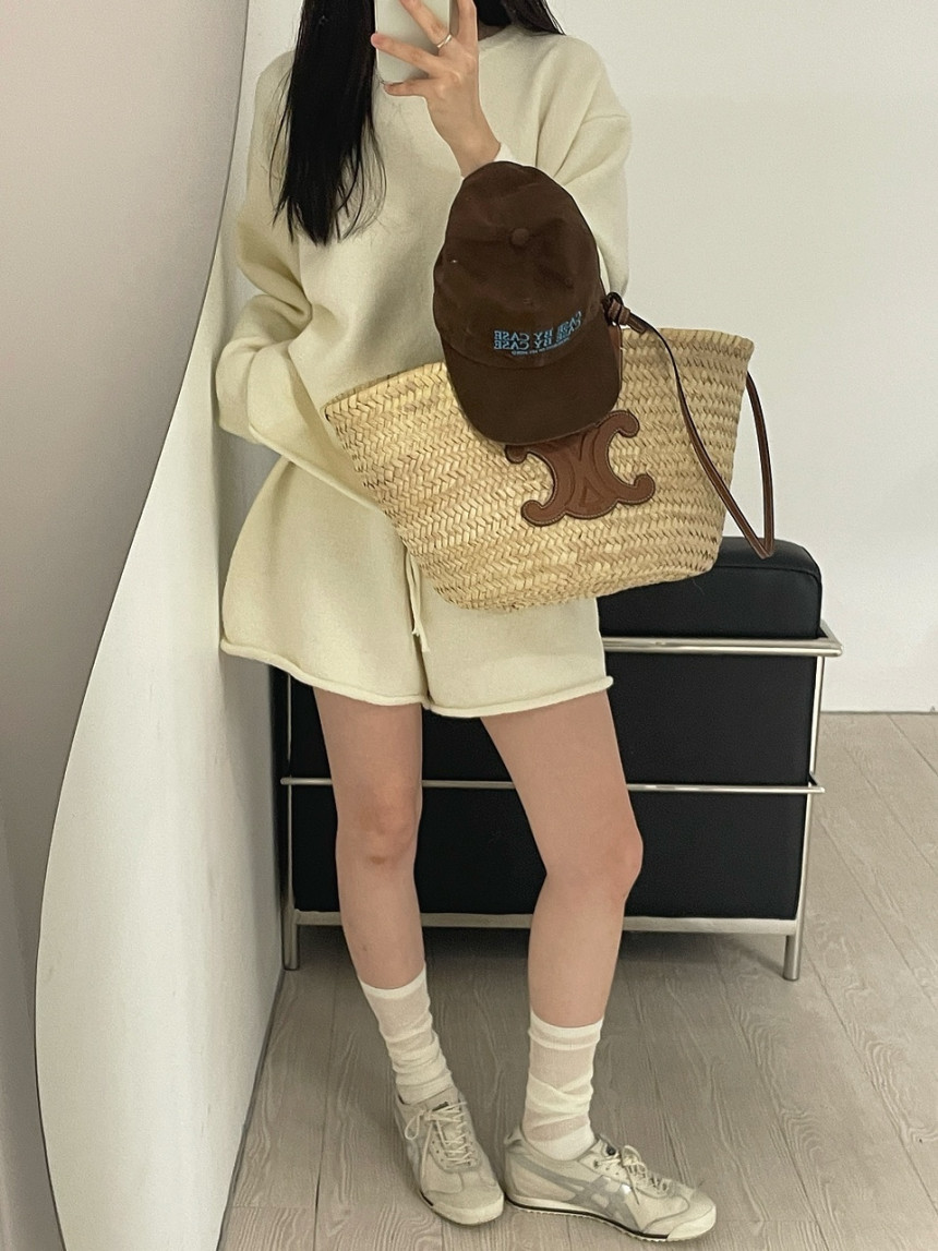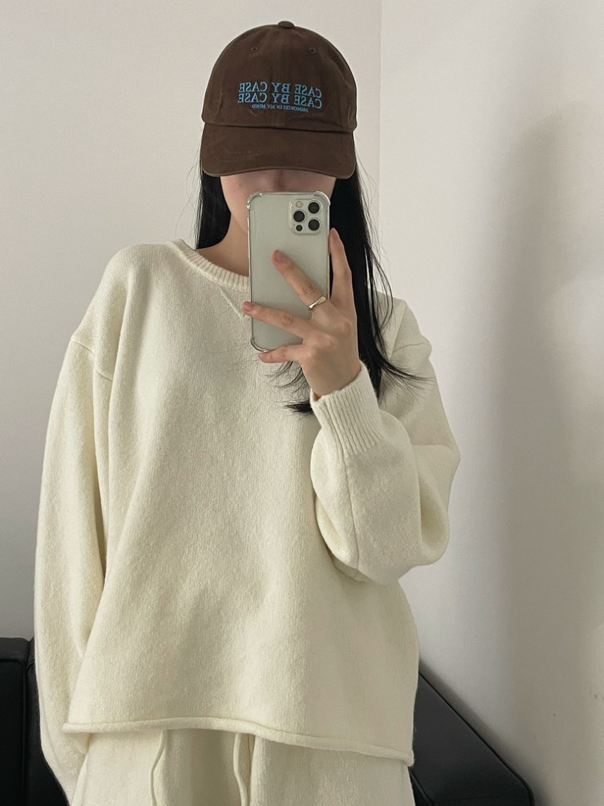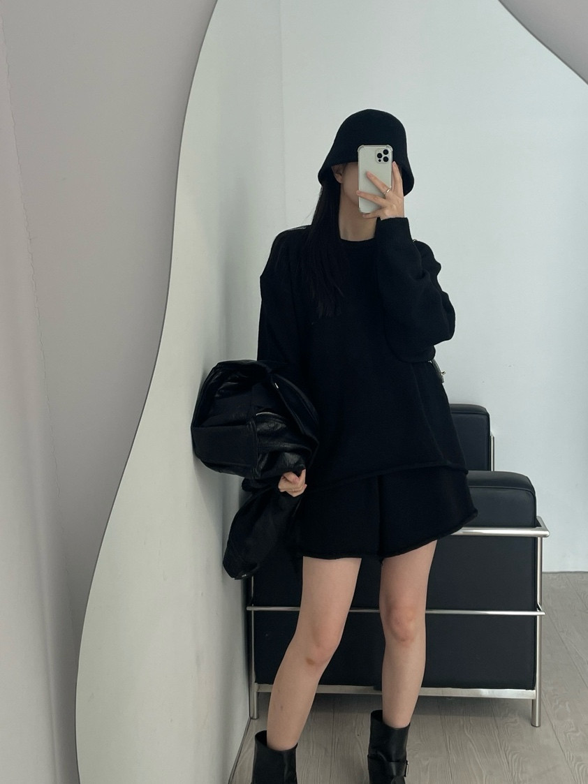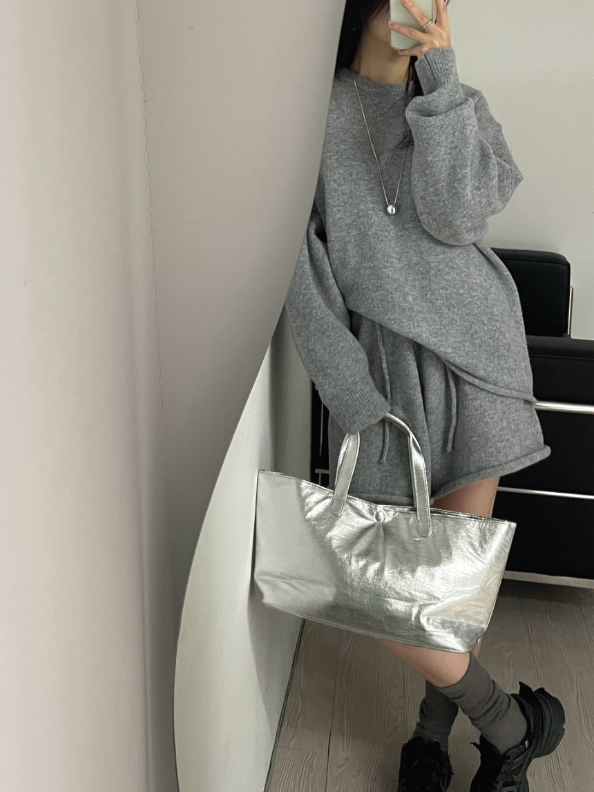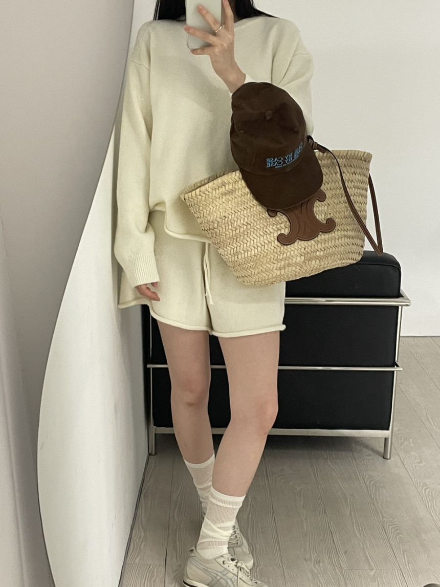 Корейский стиль: полный комплект женского свободного свитера с круглым вырезом + повседневные шорты, вязаный комплект из двух предметов