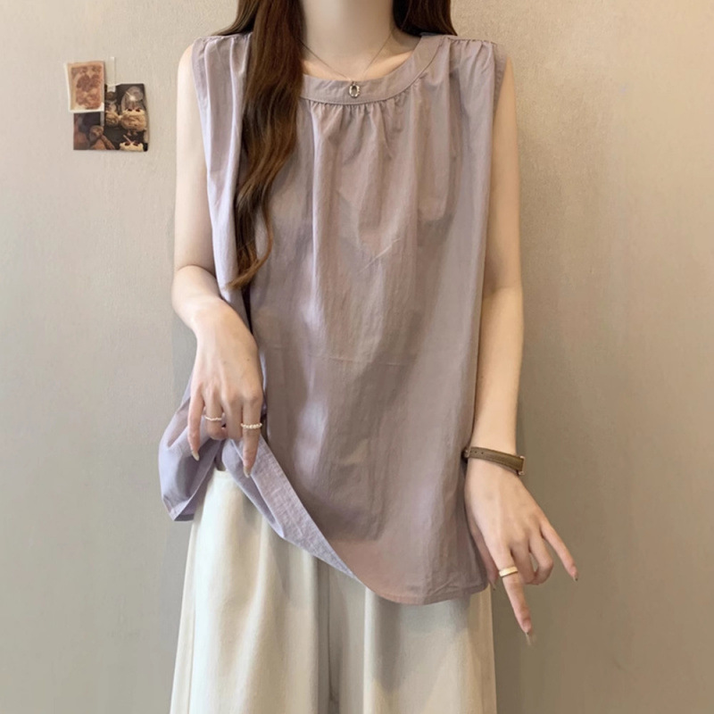 Французский нишевый фиолетовый жилет без рукавов для женщин, летняя рубашка большого размера, утягивающий живот, супер красивый шикарный топ