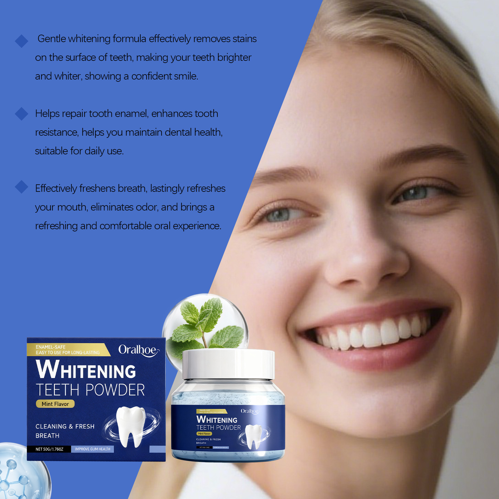 Зубной порошок Oralhoe нежно защищает десны, очищает и украшает зубы, ежедневный уход за полостью рта, осветляет зубы, освежает и очищает.
