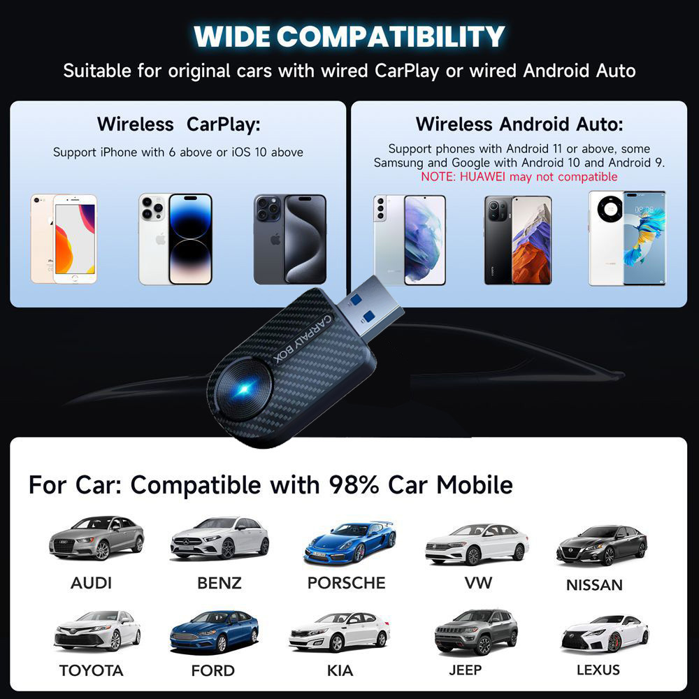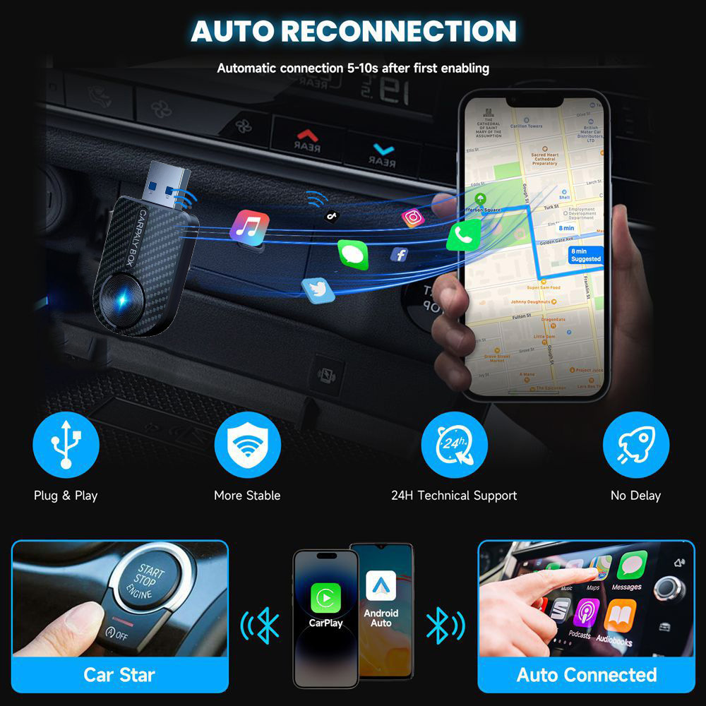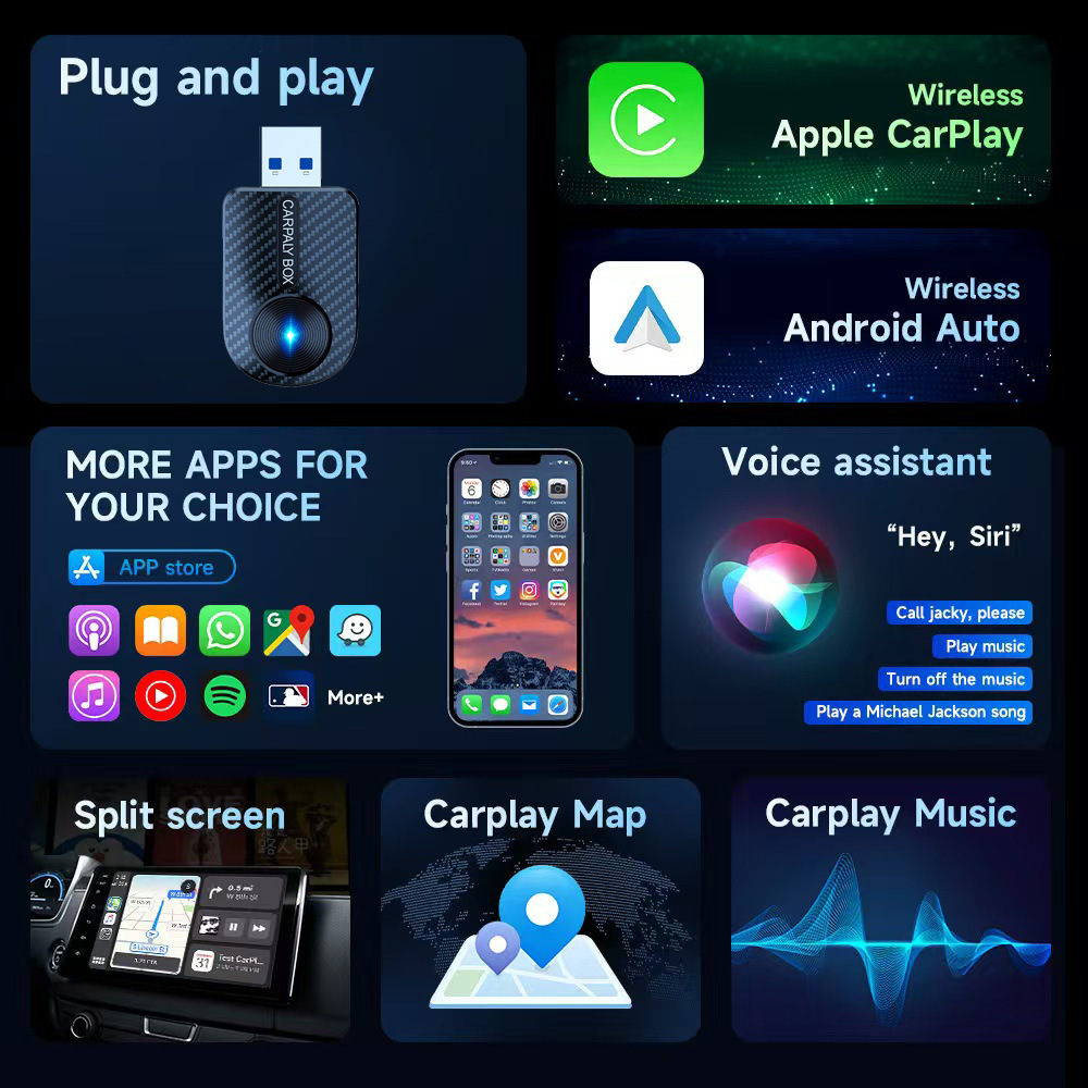 Кросс-граничный новый адаптер CarPlay и Android Auto 2-в-1: проводное и беспроводное подключение для автомобиля