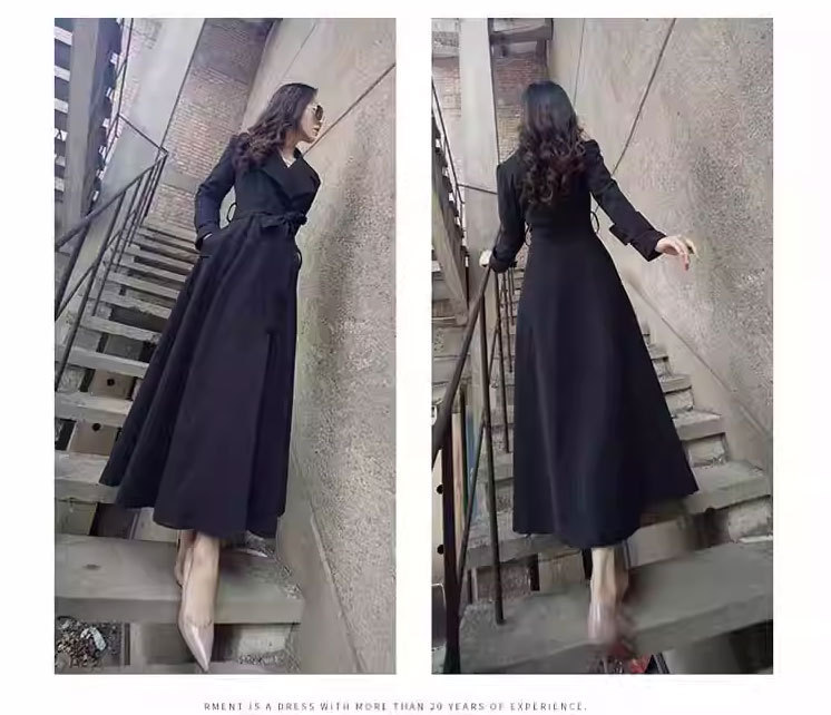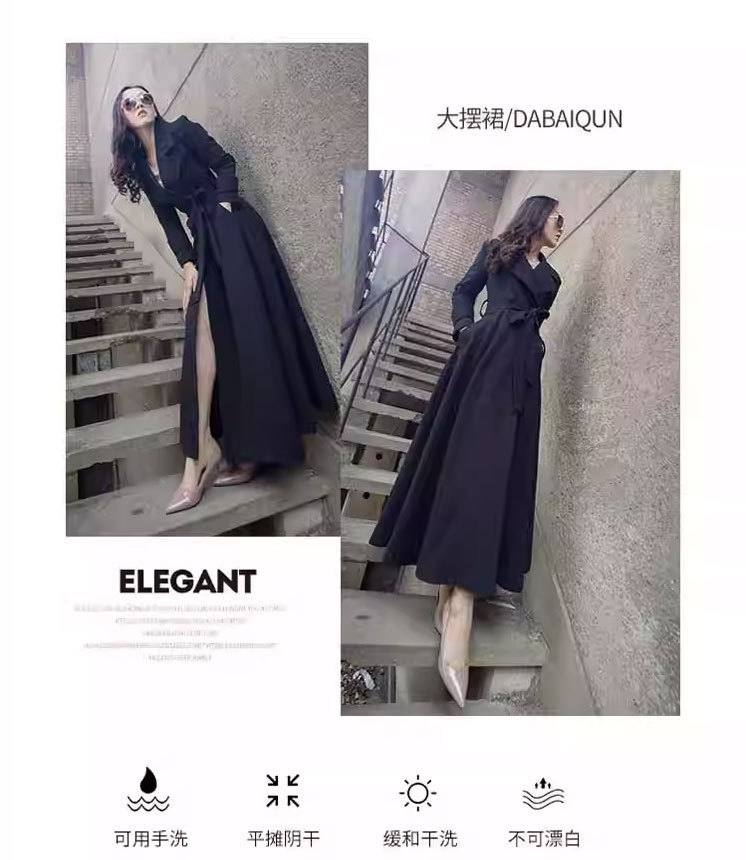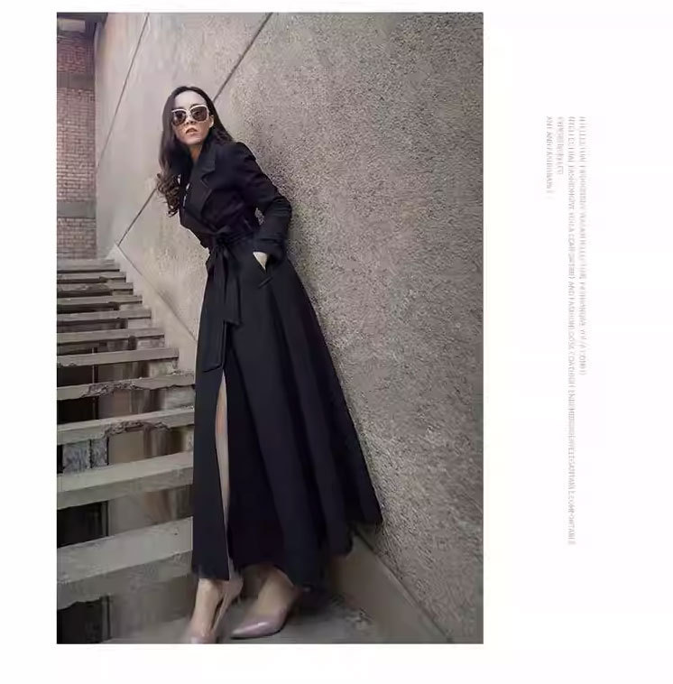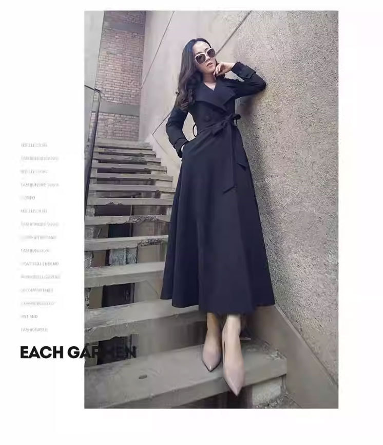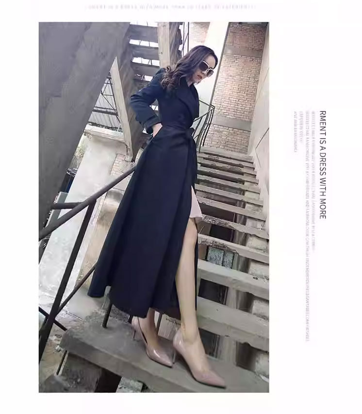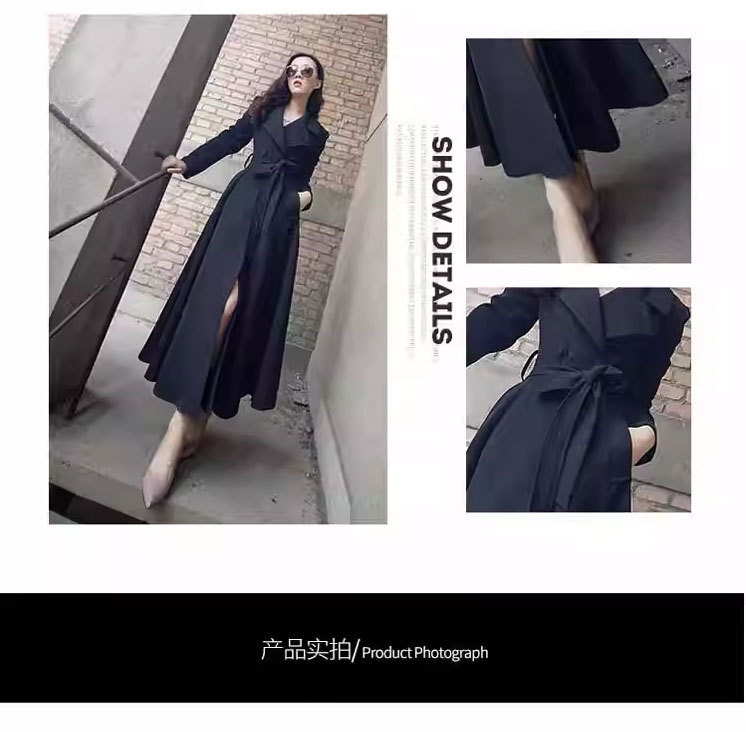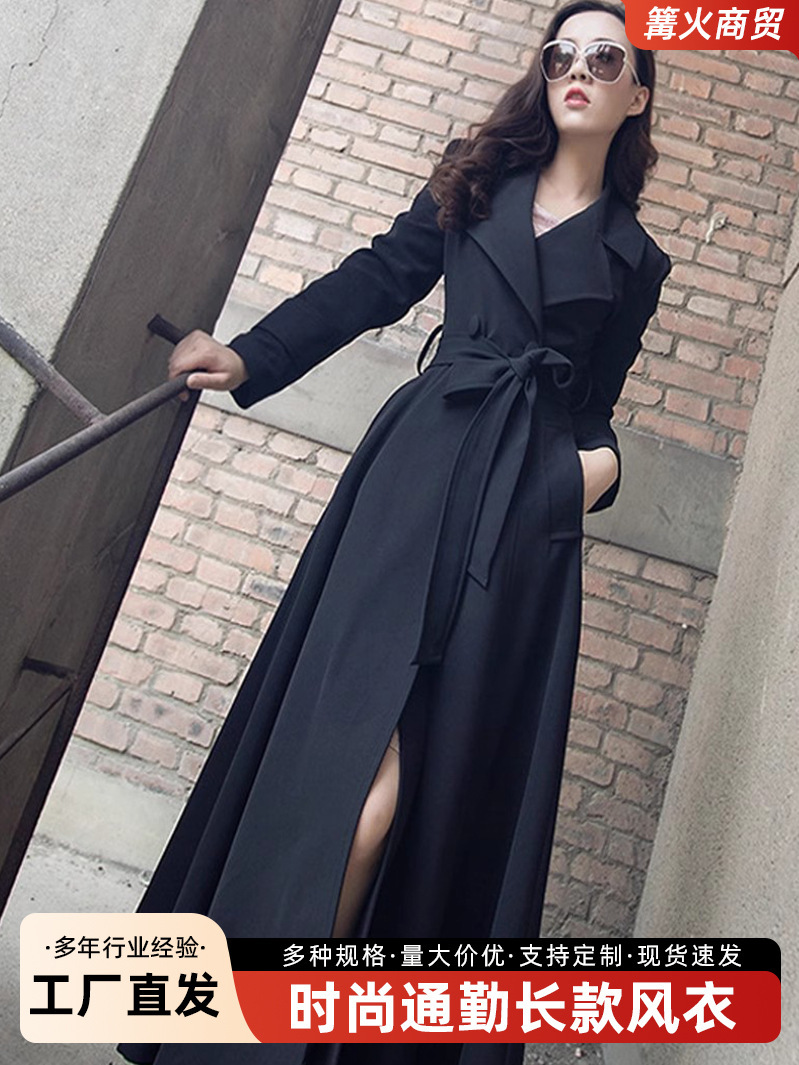 Весенне-осенний плащ выше колена, облегающий крой, элегантный, удлиненный плащ с лацканами на шнуровке, большой размер, утягивающий талию