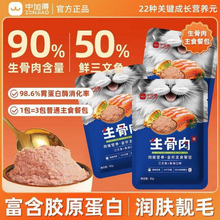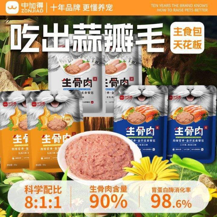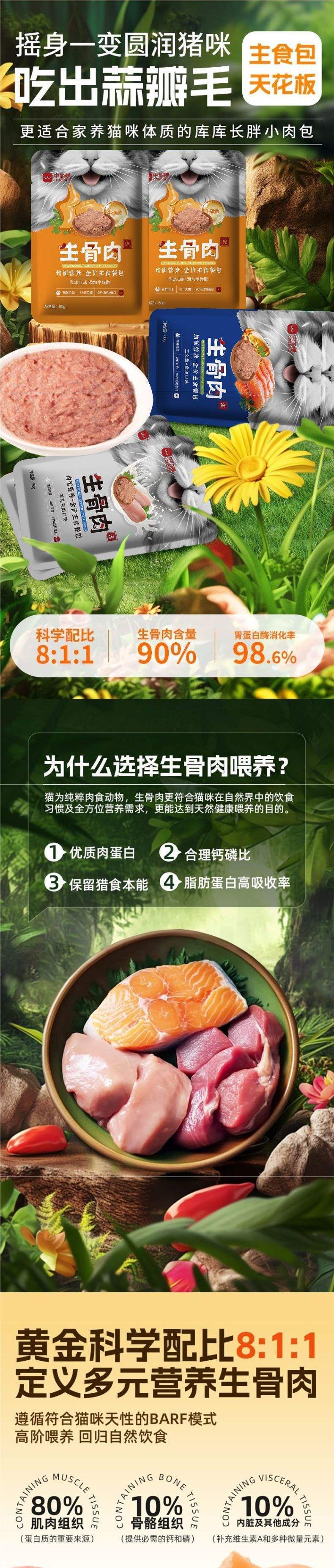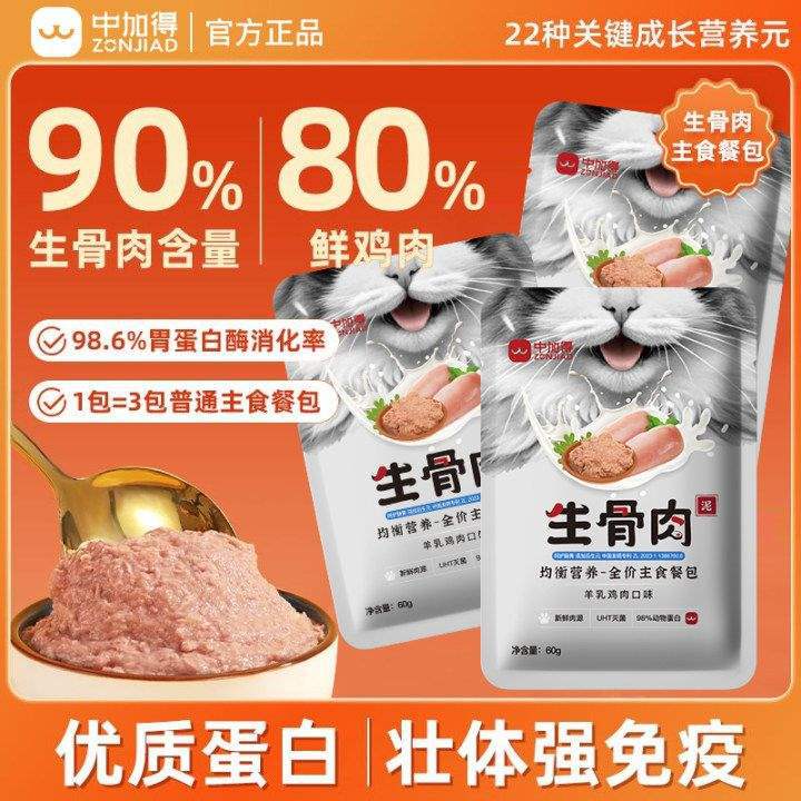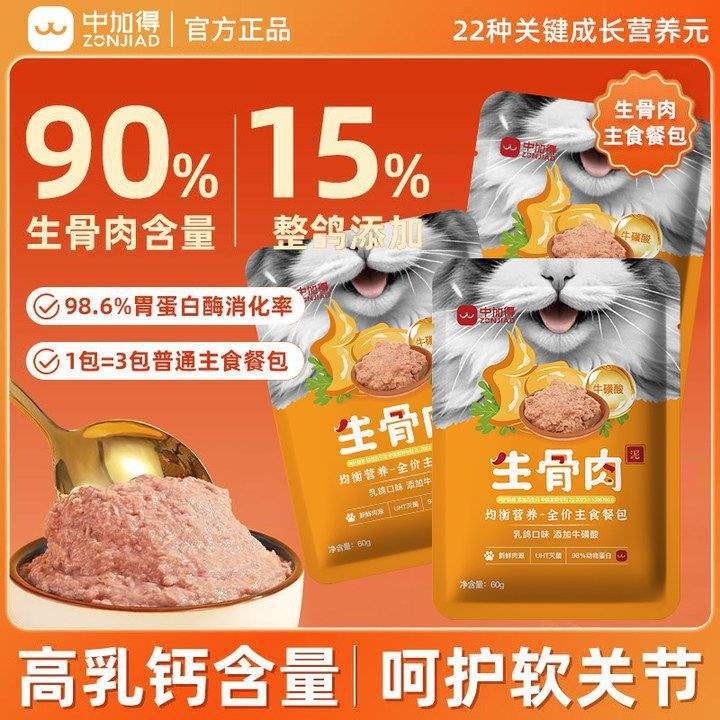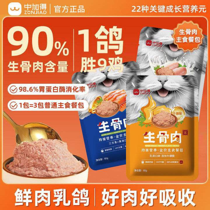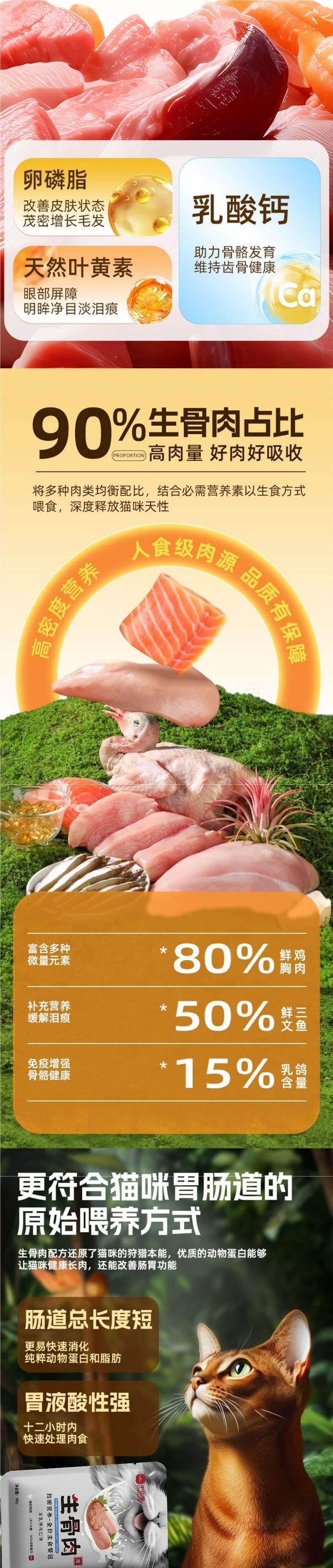 Рекомендуется смешанный вкус [90% сырых мясных и костных продуктов] [усиленный]; [Добавлено 15% цельного голубя] Высокое содержание молочного кальция [Защищает хрящевые суставы]; [Добавлено 50% лосося] Богато коллагеном [Увлажняет и красивые волосы]; [добавлено 80% курицы] мясной белок [сильное тело]