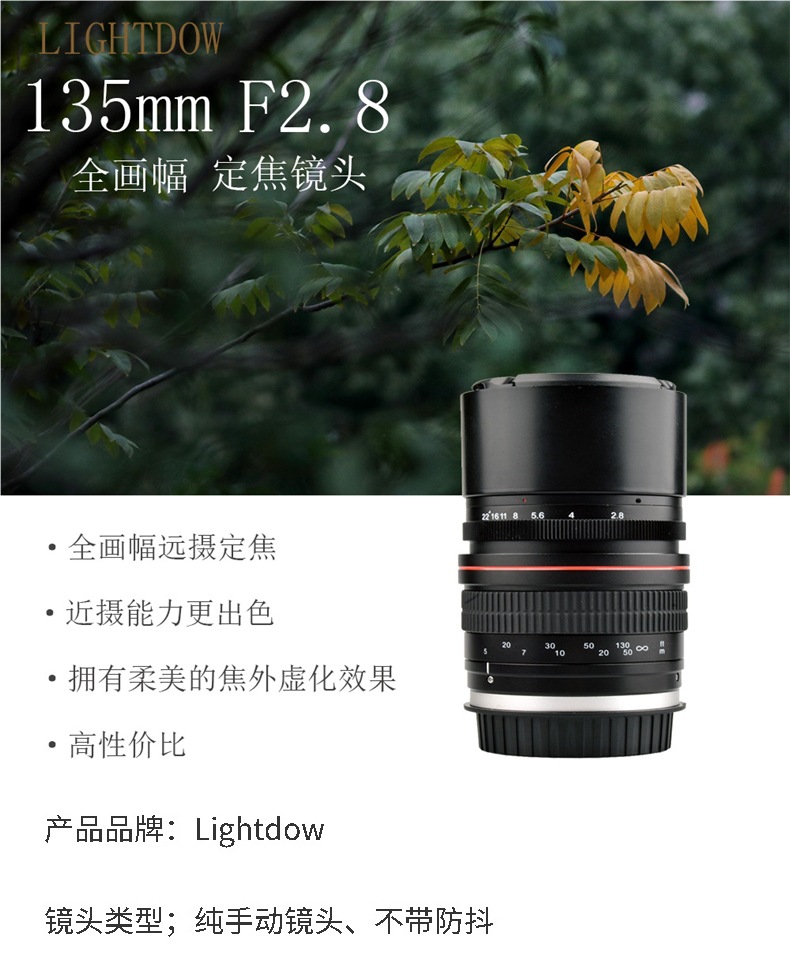 135mmF2.8全画幅长焦远摄定焦风景镜头人像 国产手动镜头