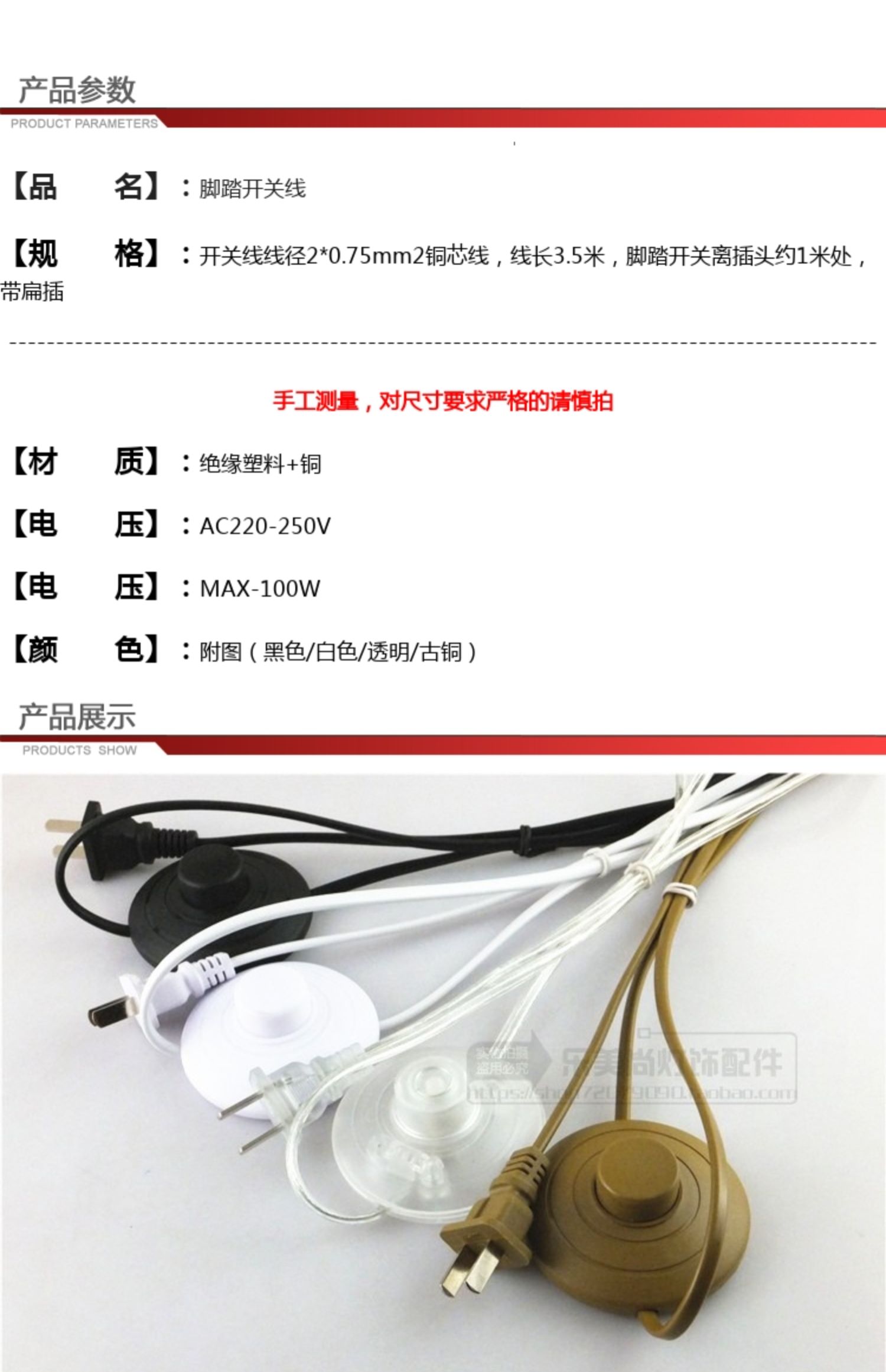 Настольная лампа, торшер, шнур с ножным переключателем, 3.5m штепсельный шнур для подключения питания с плоской вилкой, аксессуары для производства ламп своими руками
