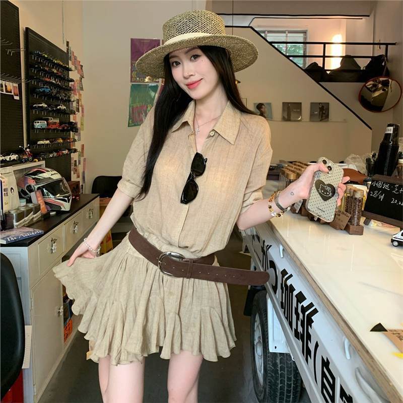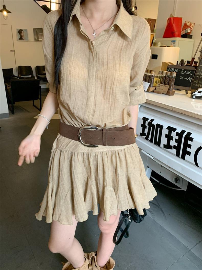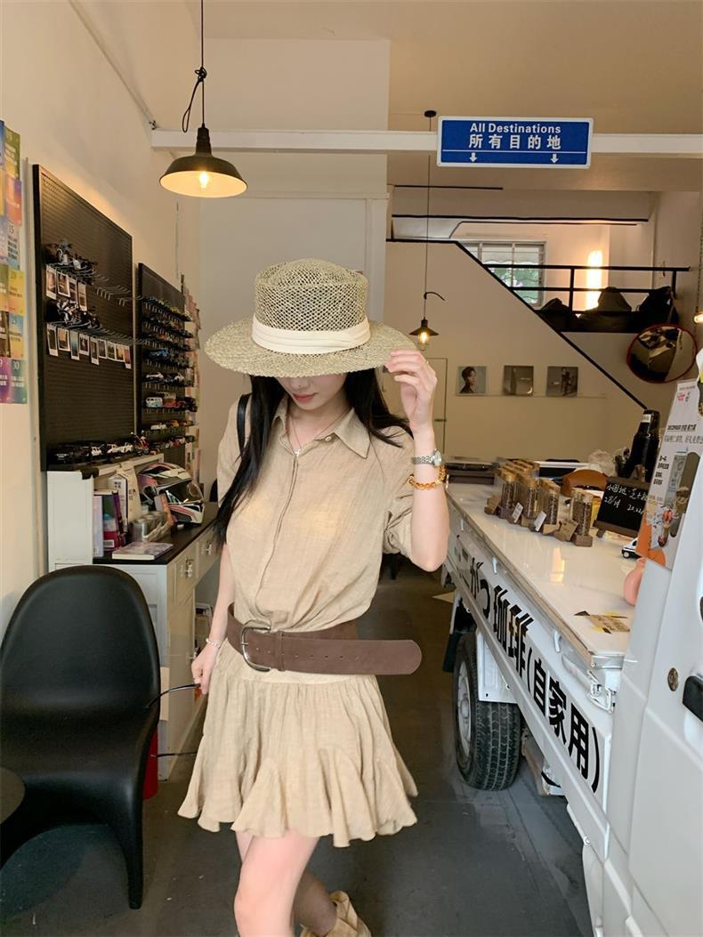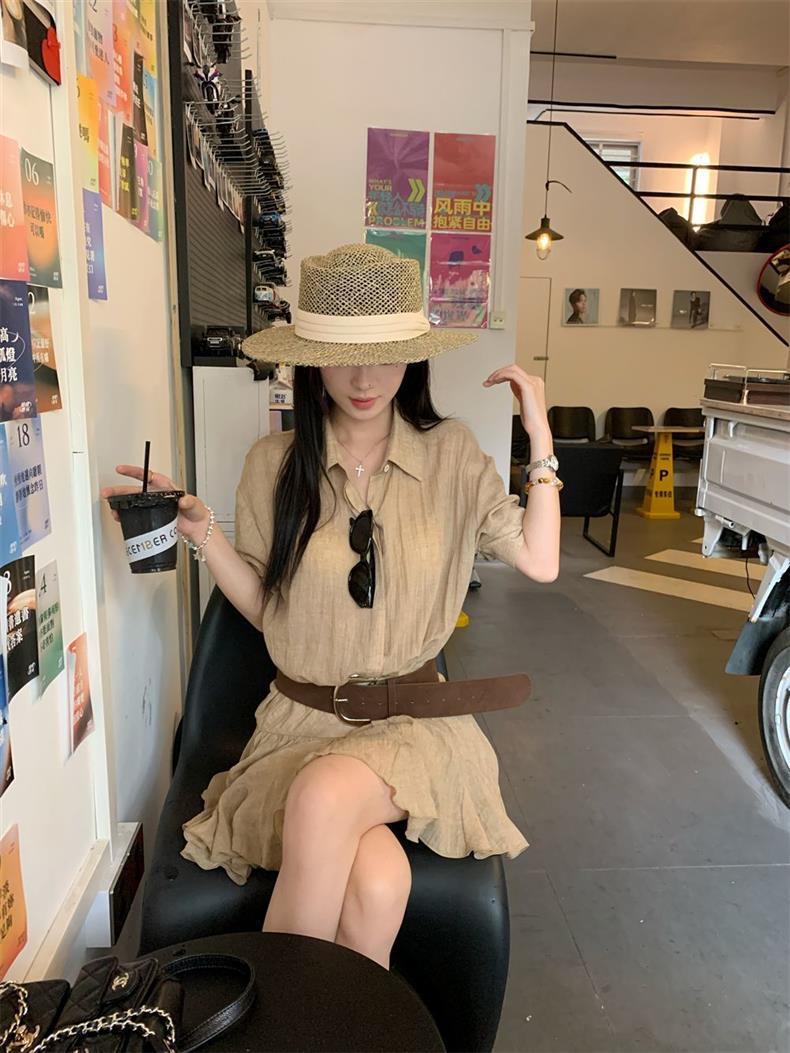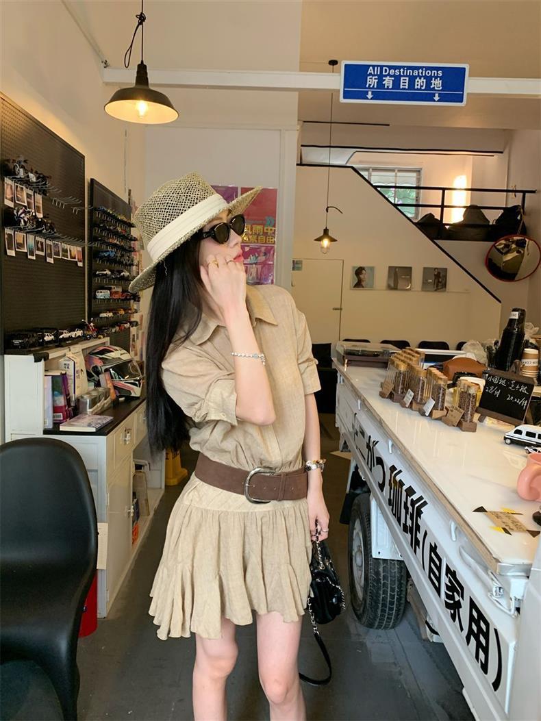 Женское летнее платье в стиле «старые деньги», однобортное, с воротником POIO, элегантное, стройнящее, короткое, А-силуэта, высокого качества.