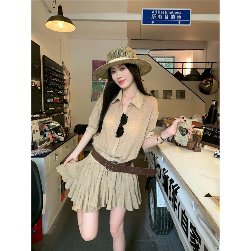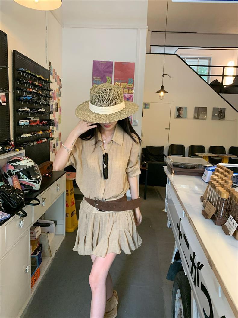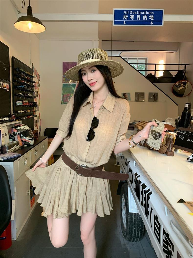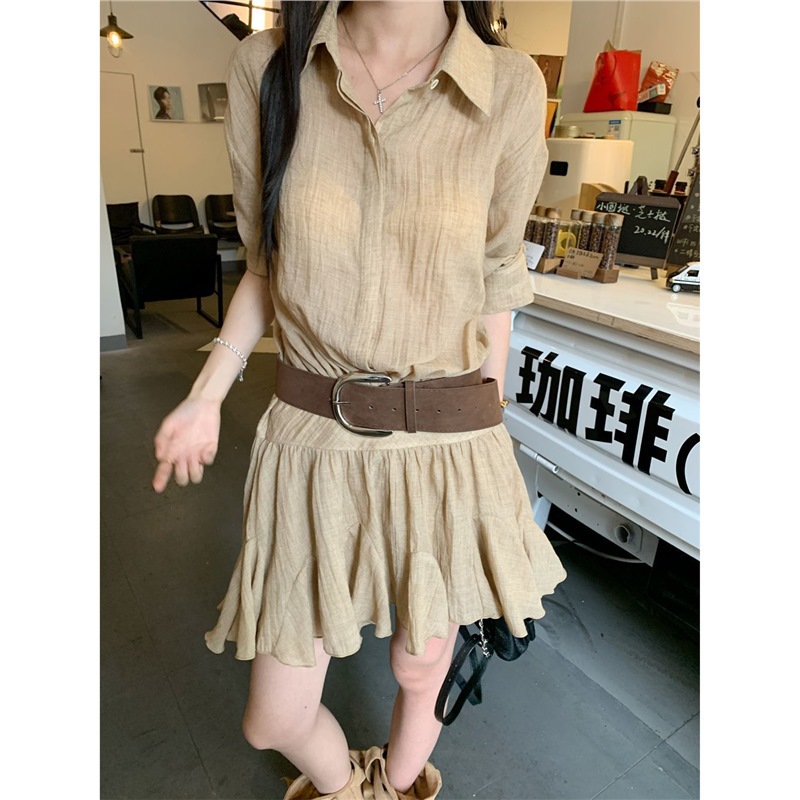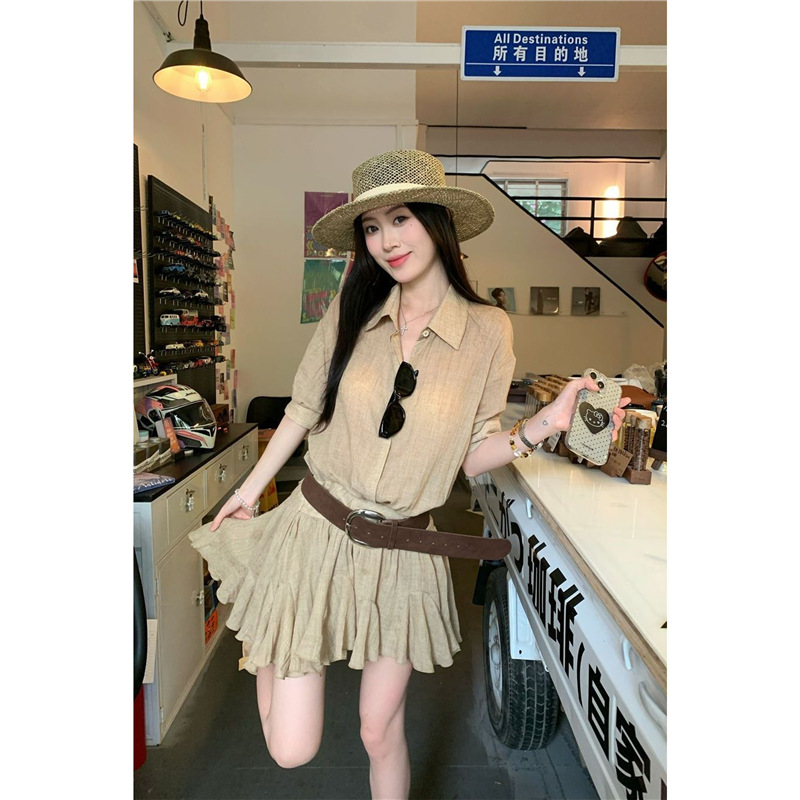Женское летнее платье в стиле «старые деньги», однобортное, с воротником POIO, элегантное, стройнящее, короткое, А-силуэта, высокого качества.