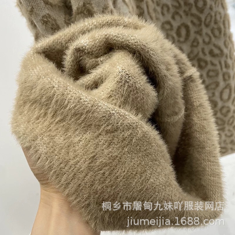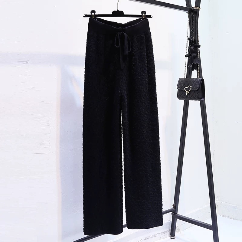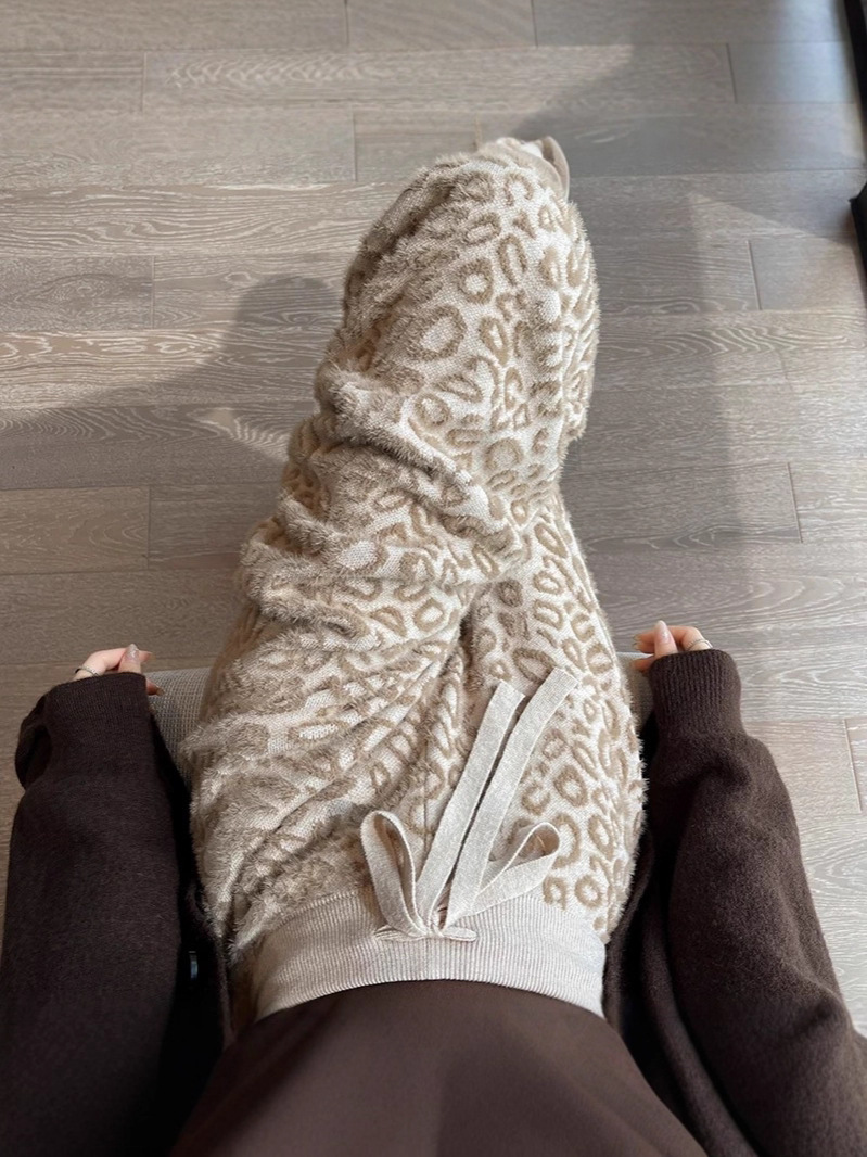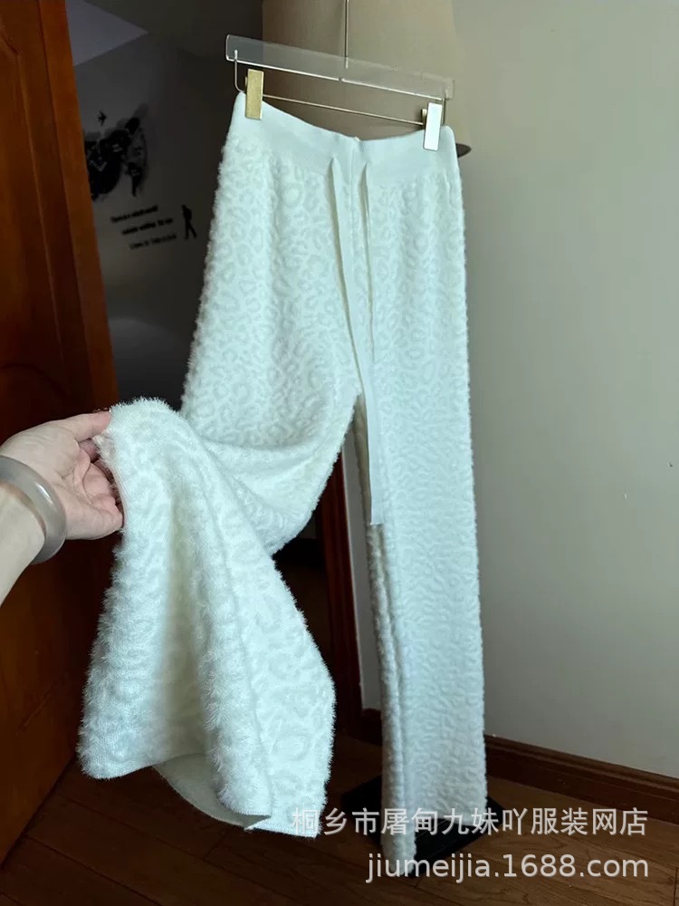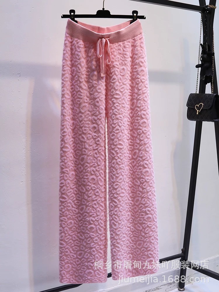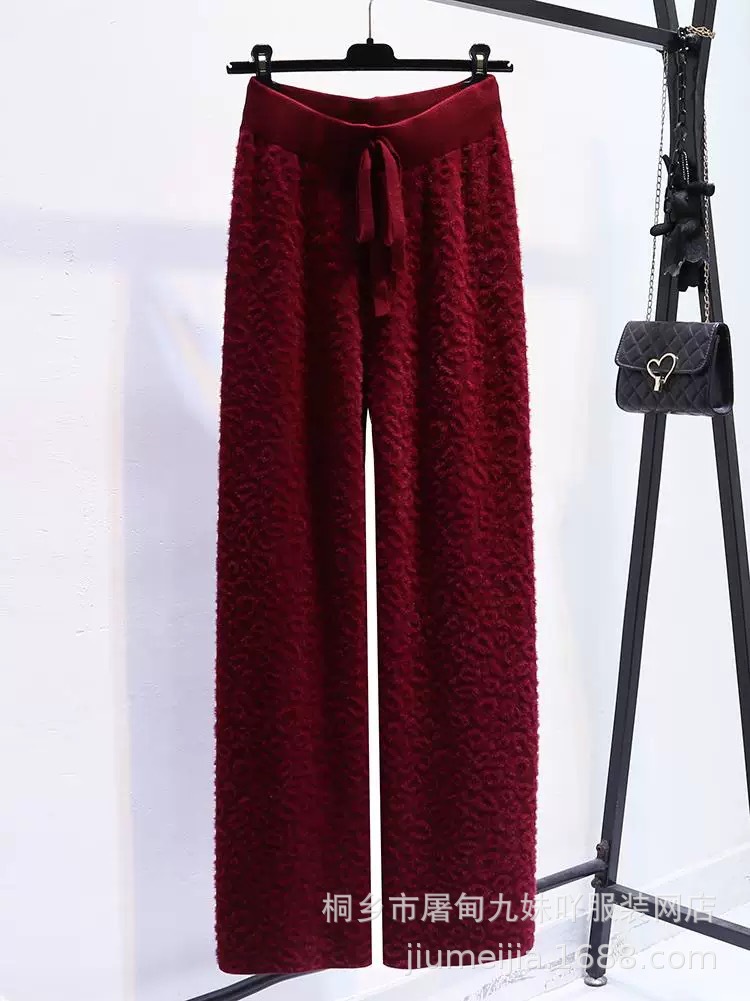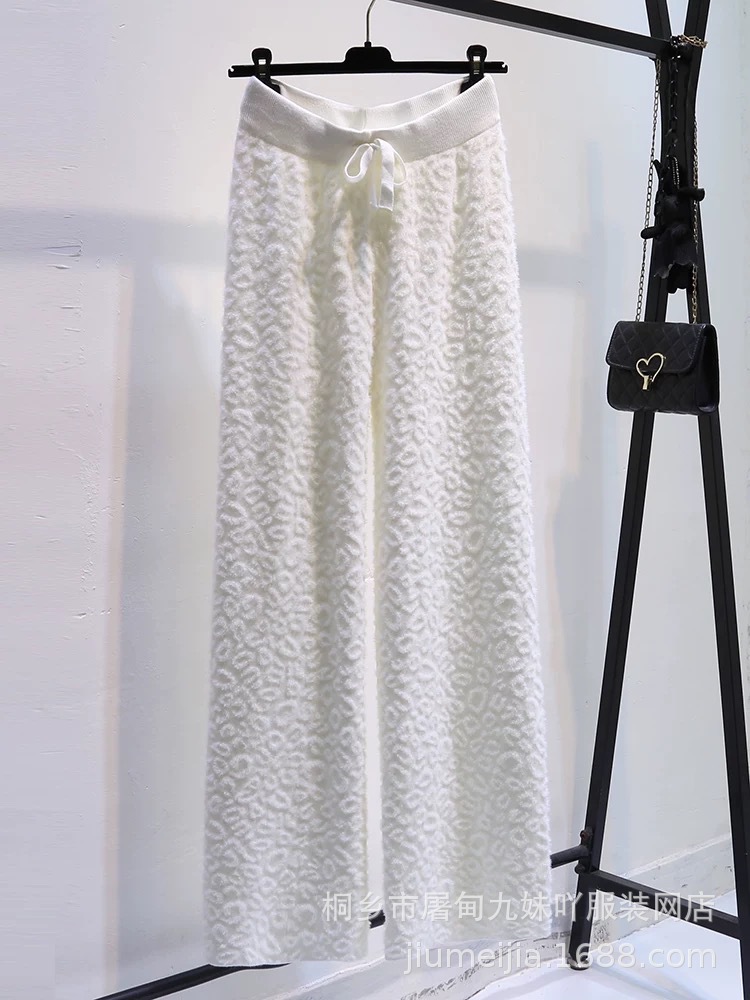Вязаные широкие брюки с леопардовым принтом из искусственного норкового бархата для женщин, осень и зима 2025, новые утолщенные драпированные брюки длиной до пола с высокой талией, повседневные брюки