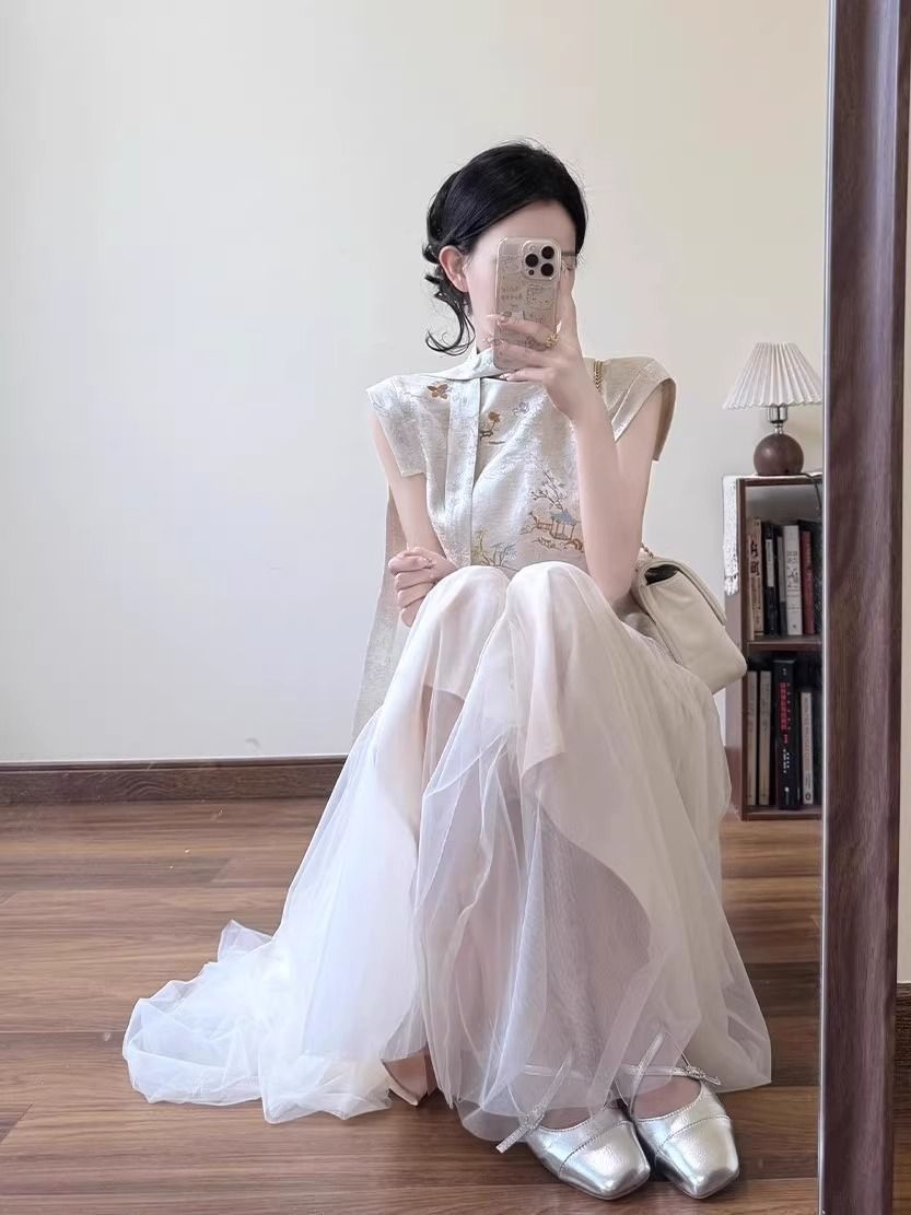 Новые женские топы в китайском стиле в стиле ретро, сетчатая юбка, костюм, юбка, женская летняя юбка большого размера в китайском стиле, юбка в стиле Cheongsam