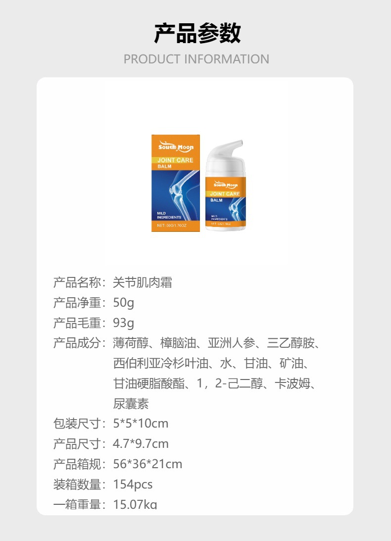 Крем для мышц суставов SOUTH MOON Охлаждающий и расслабляющий крем для плеч, шеи, талии и спины Подходит для поддержания растительной эссенции после тренировки